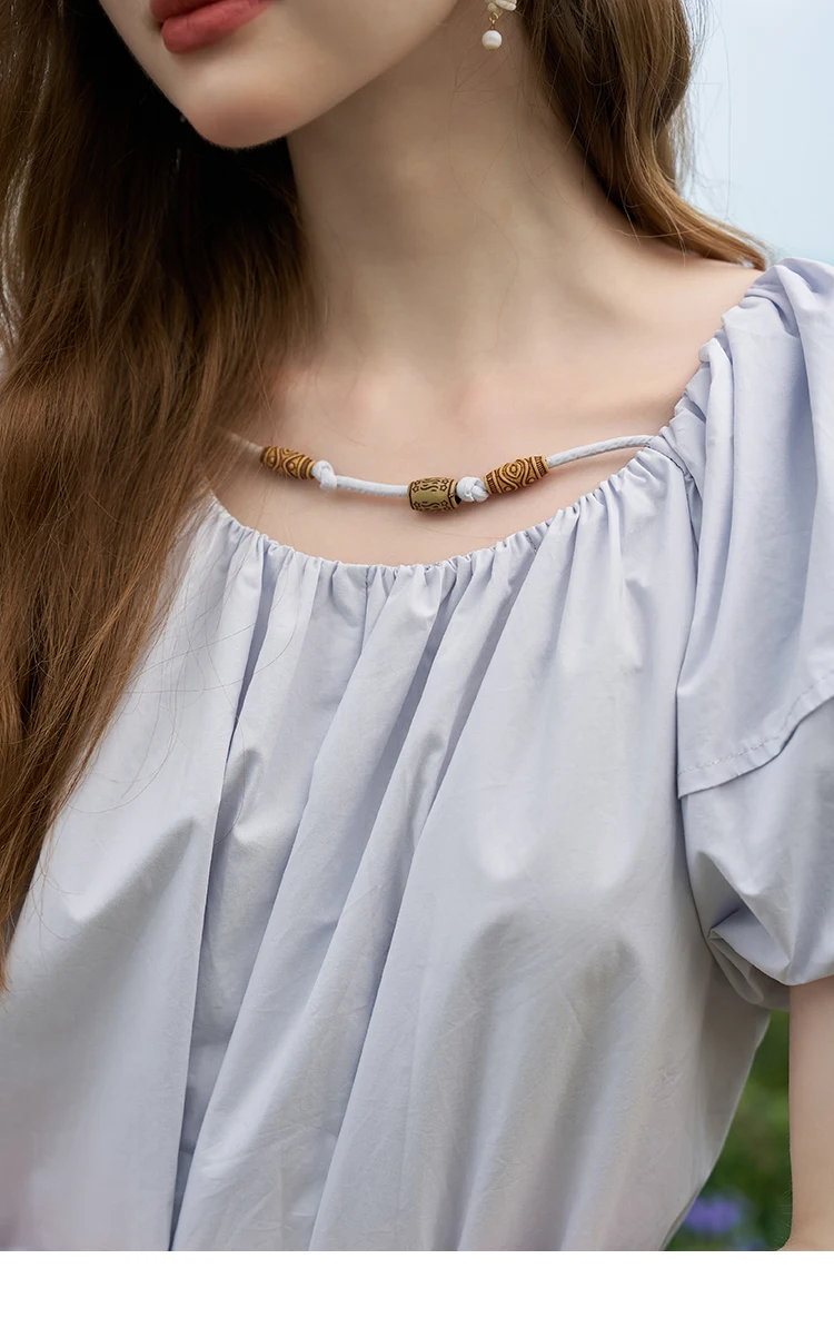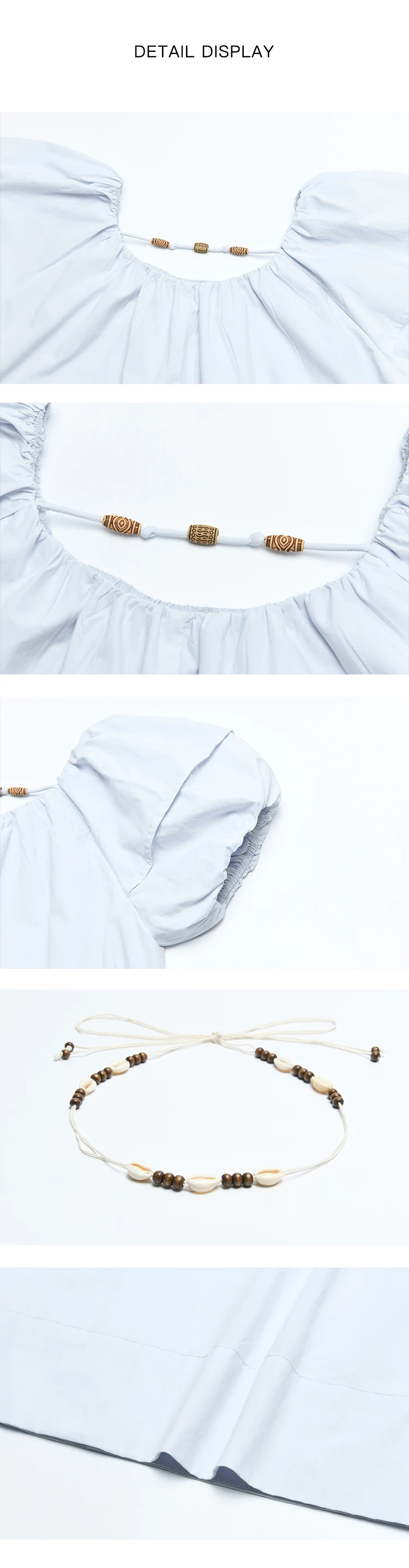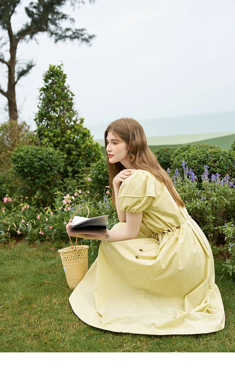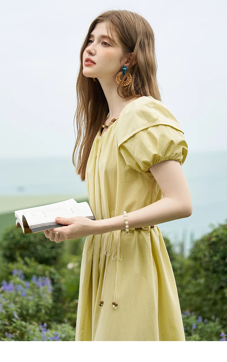MISHOW 100 Cotton Bohemian Dress 2024 Summer French Elegant Elastic Round Neck Bubble Sleeve Long Dresses with Belt MXD26L1940