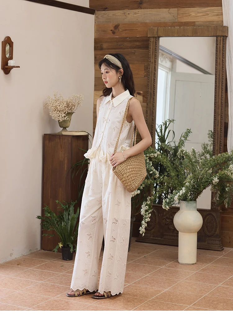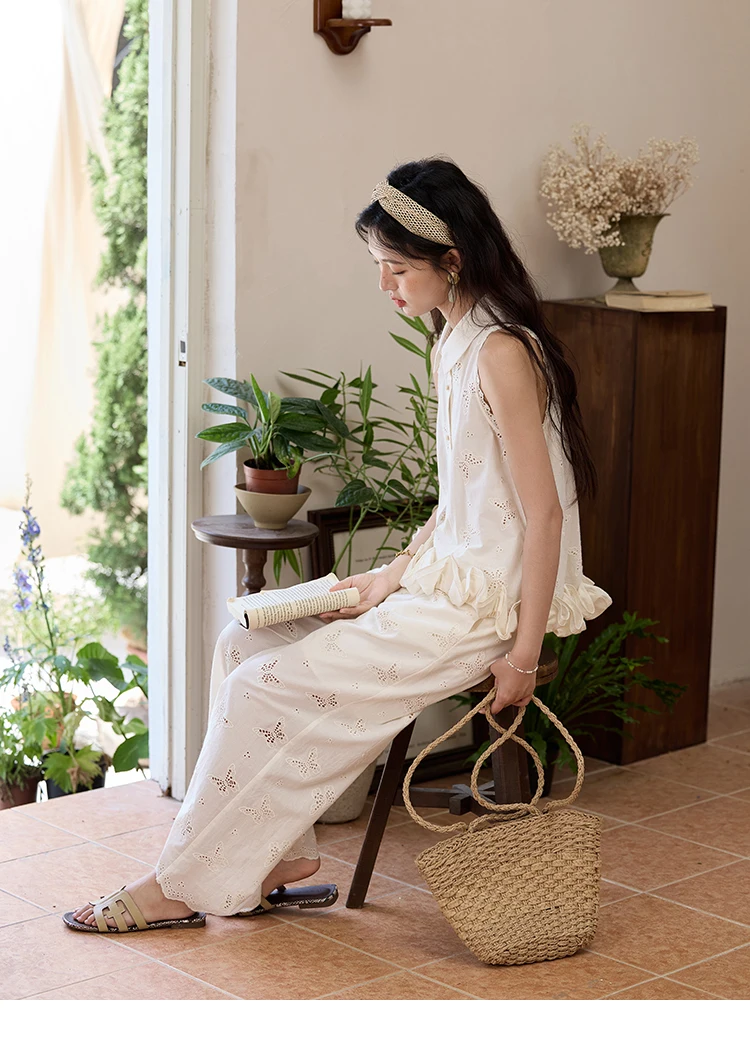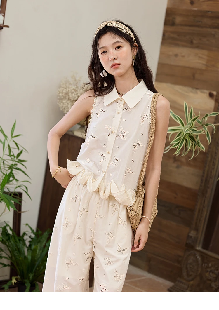 MISHOW 100 Cotton Butterfly Hollow Lace Lapel Shirt for Women Single Breasted Elegant Breathable Shirts with Tube Top MXE34X1808