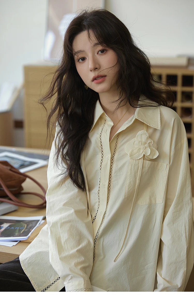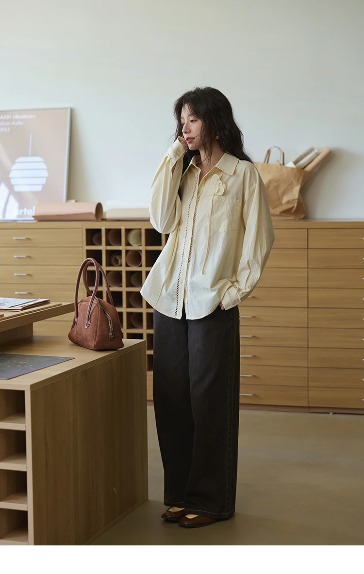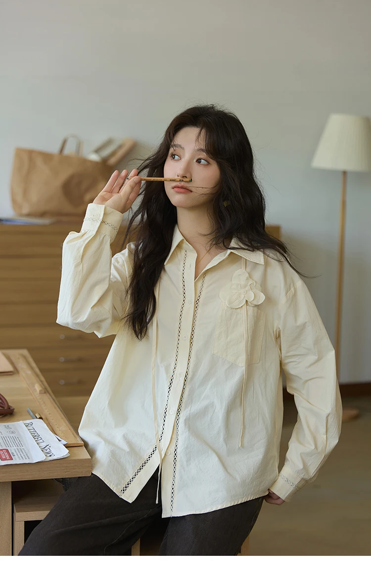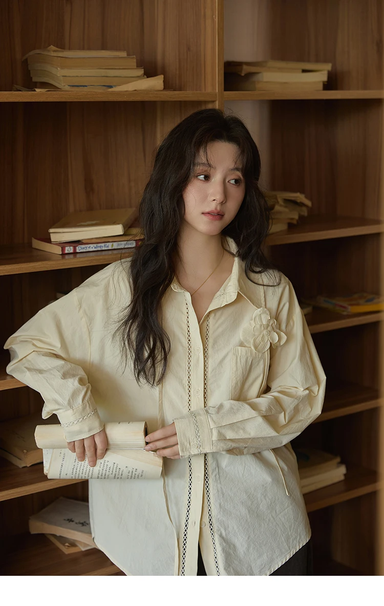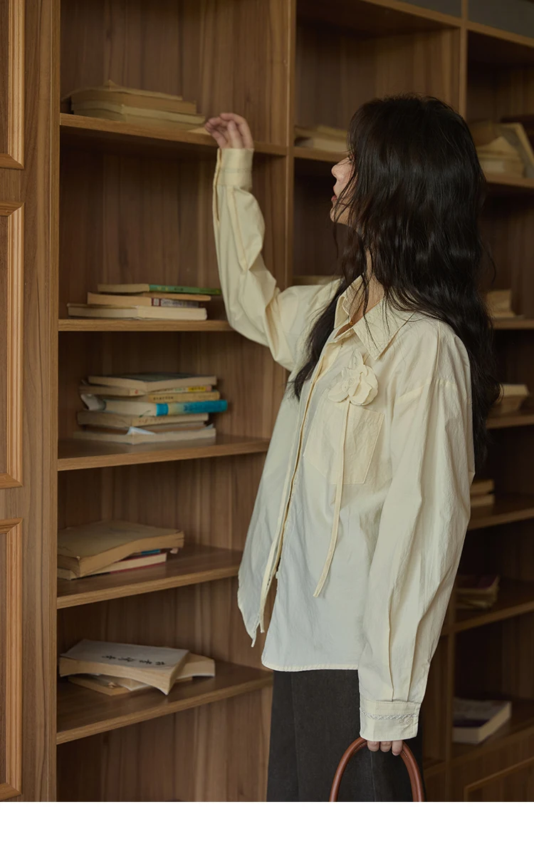 MISHOW 100% Cotton Shirt For Women Autumn 2025 New Fashion Petal Ribbon Button Long Sleeves Shirt Women's Clothing MXE41C2349