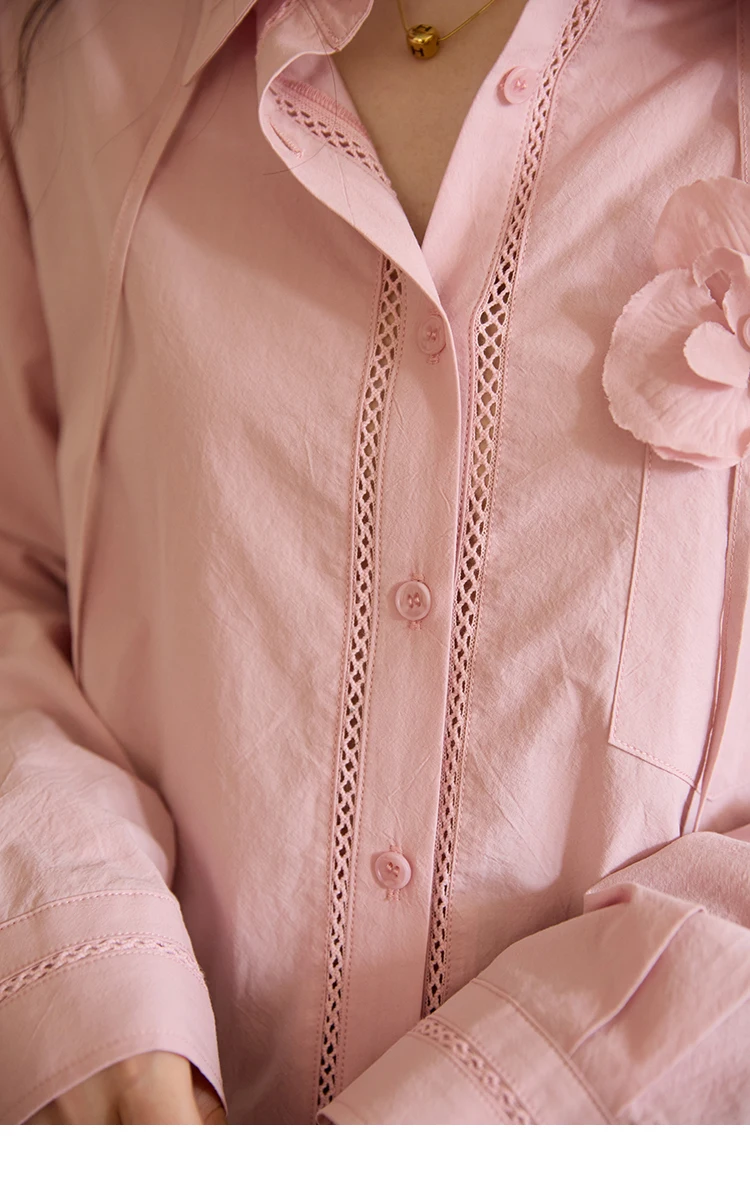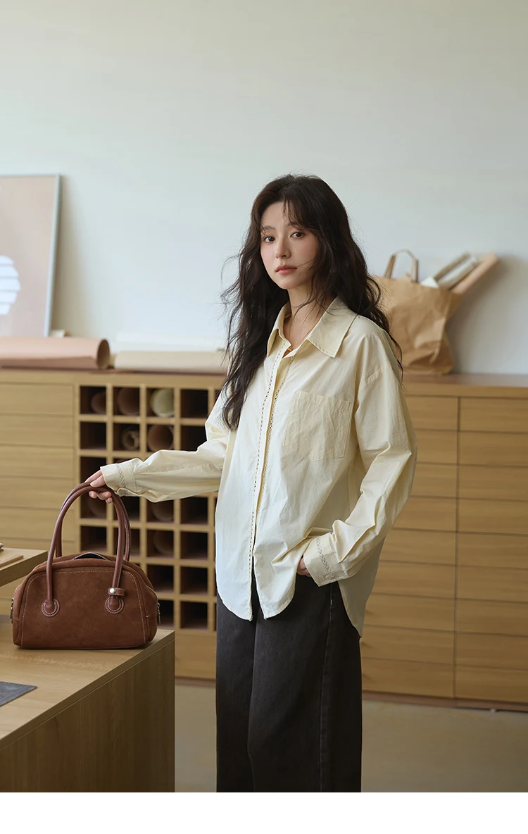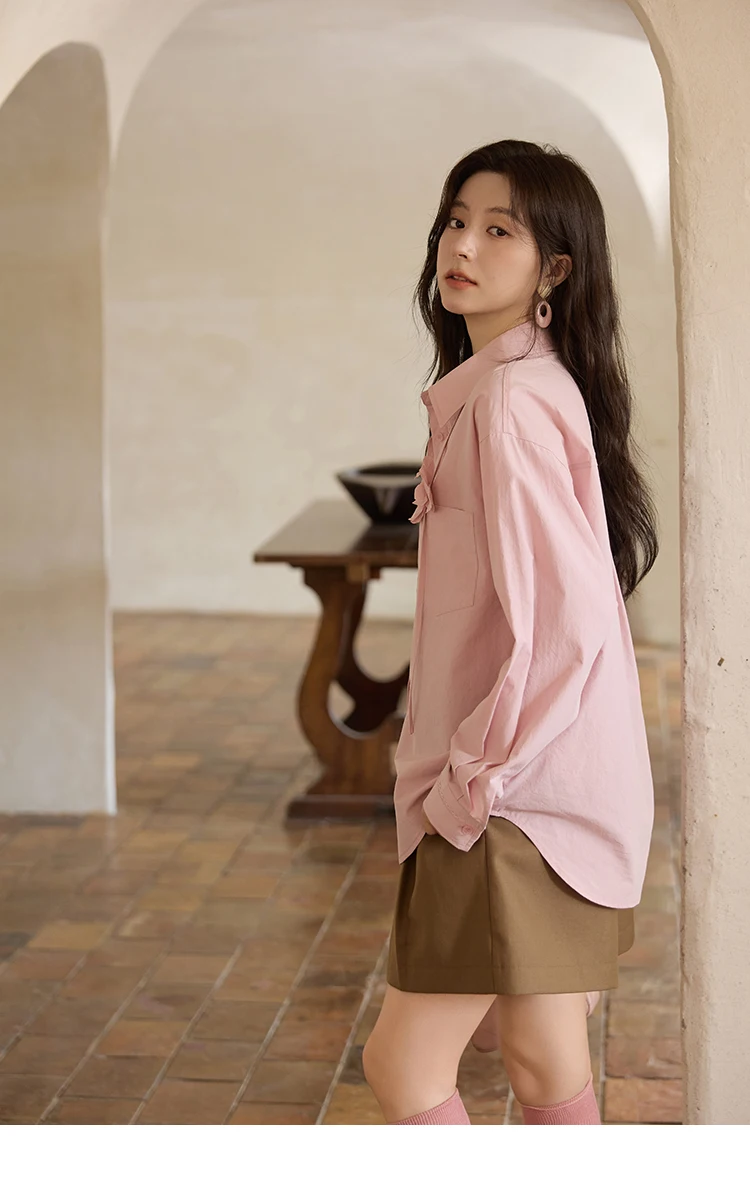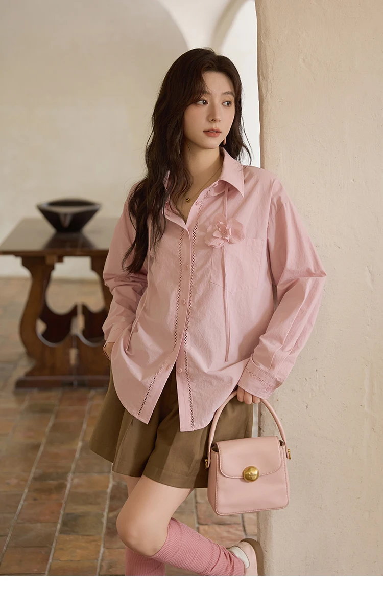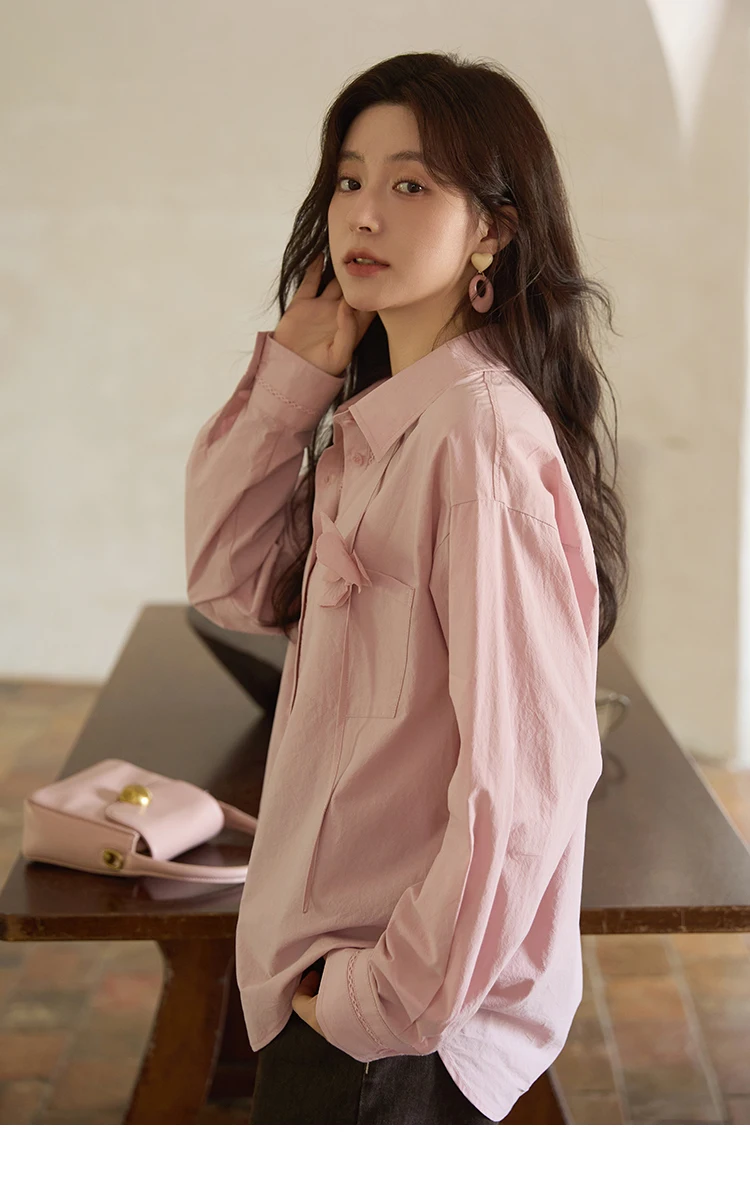 MISHOW 100% Cotton Shirt For Women Autumn 2025 New Fashion Petal Ribbon Button Long Sleeves Shirt Women's Clothing MXE41C2349
