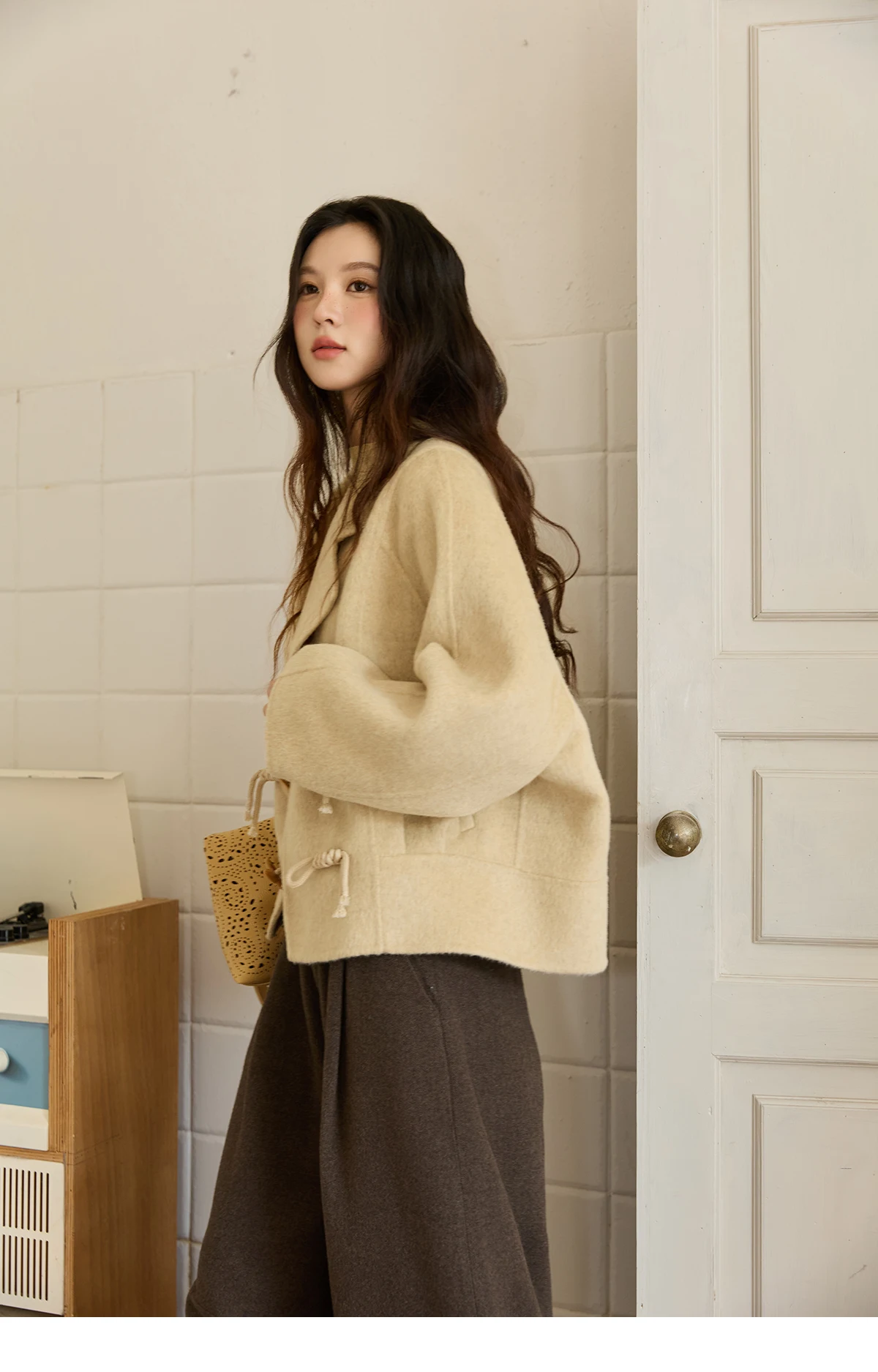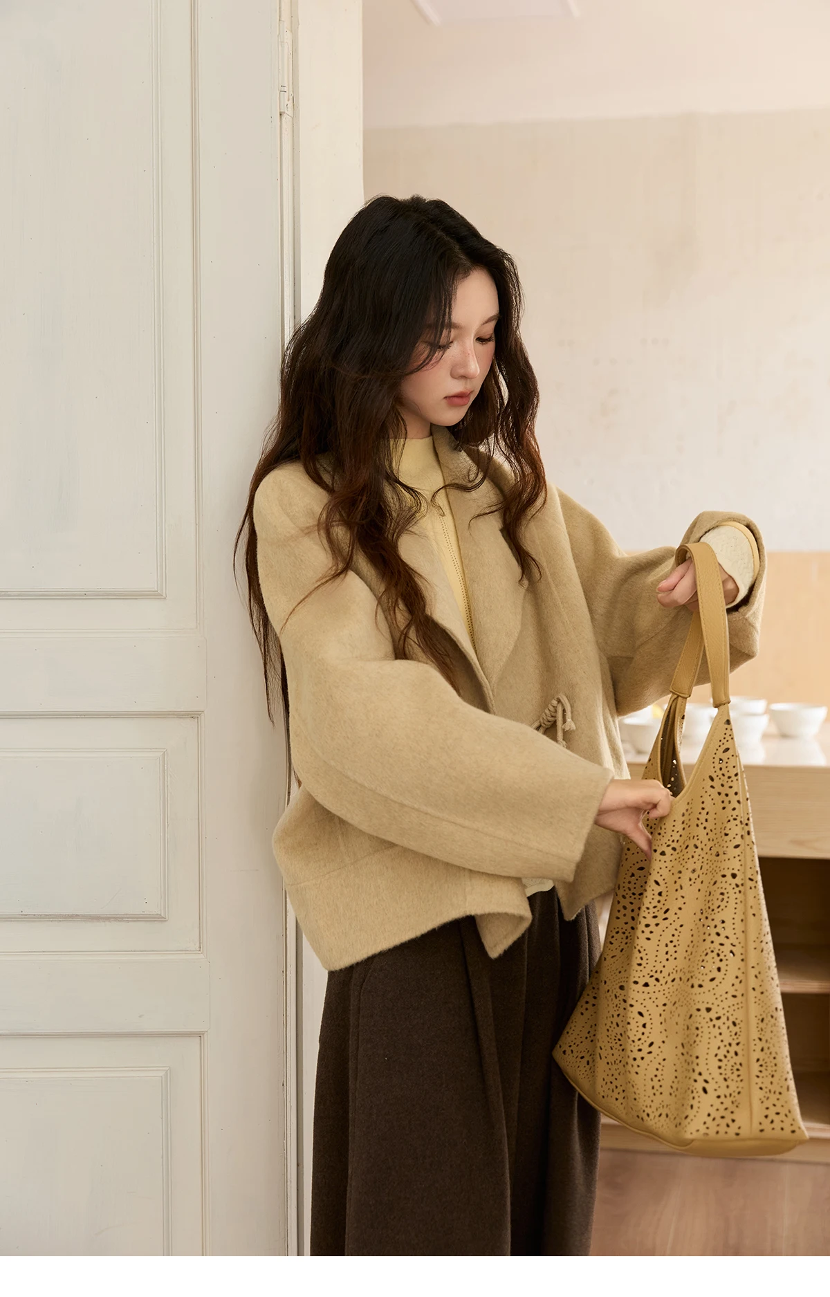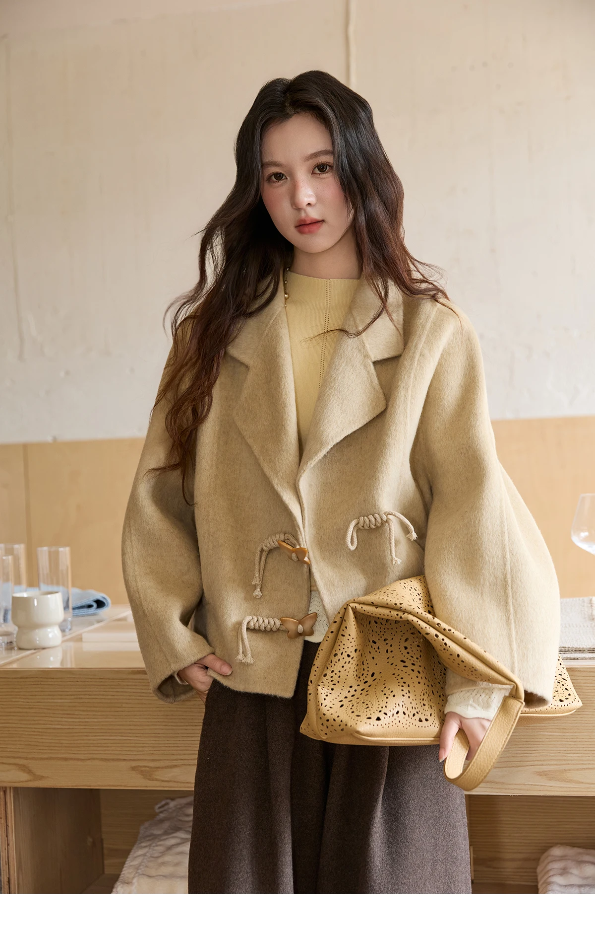MISHOW 100%Wool Coat for Woman 2025 Winter Retro Apricot Double-faced Butterfly Button Coat Warm Long-sleeved Jacket MXE51W0887