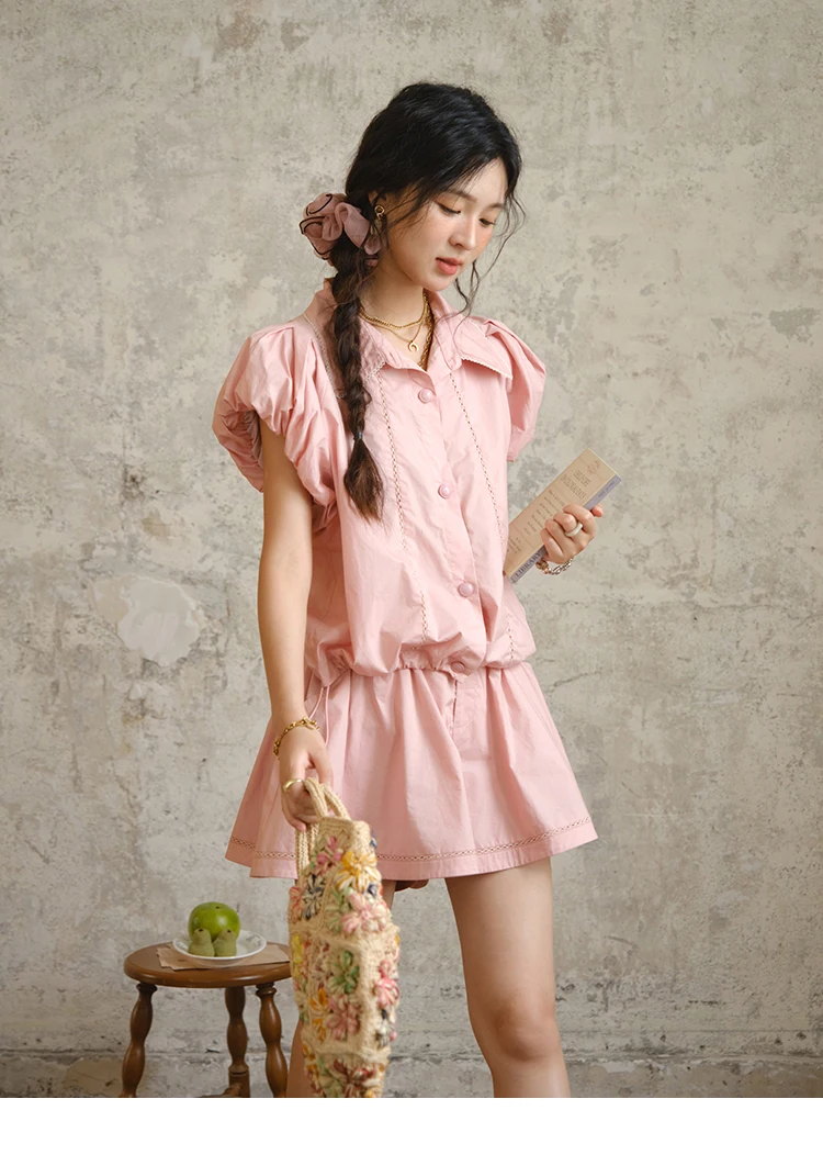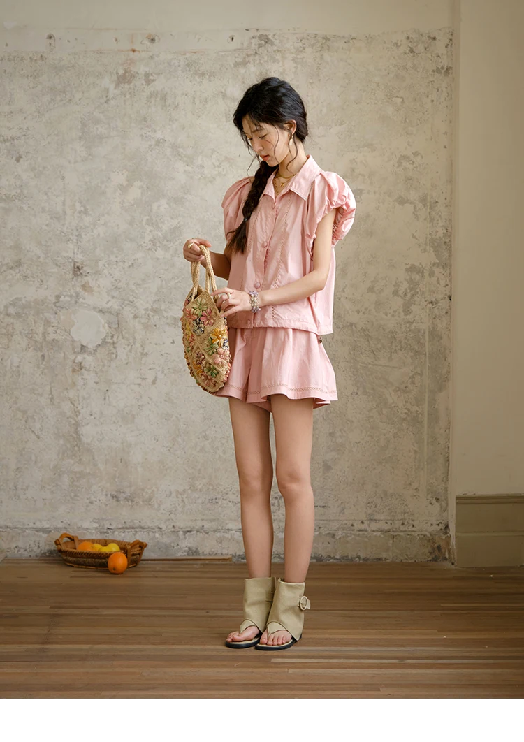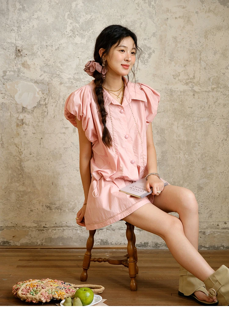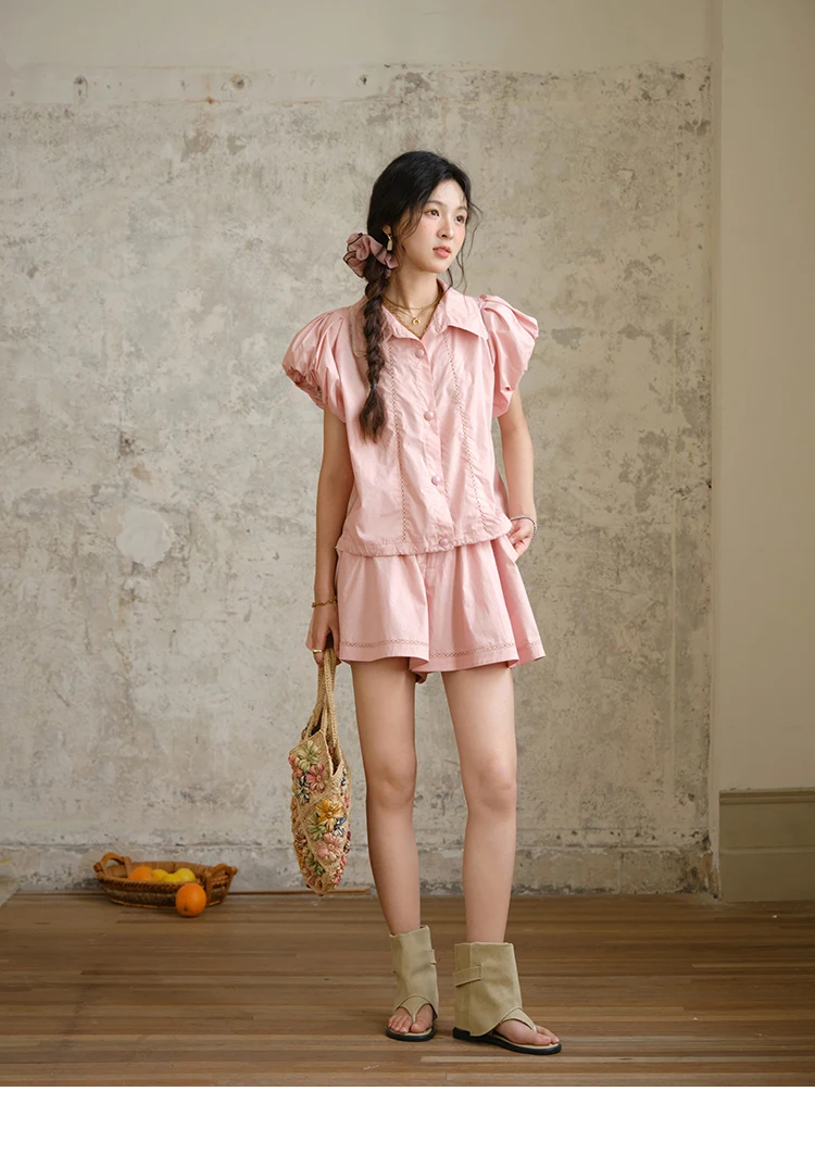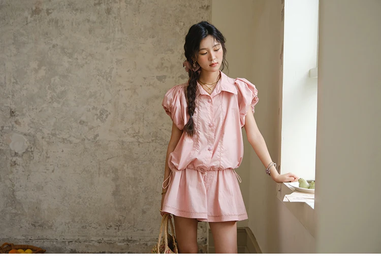 MISHOW 2 Pieces Set for Woman 2025 Summer New Loose Sweet Short Sleeve Button Shirt Casual Shorts Set Ladies Clothing MXE34T0591