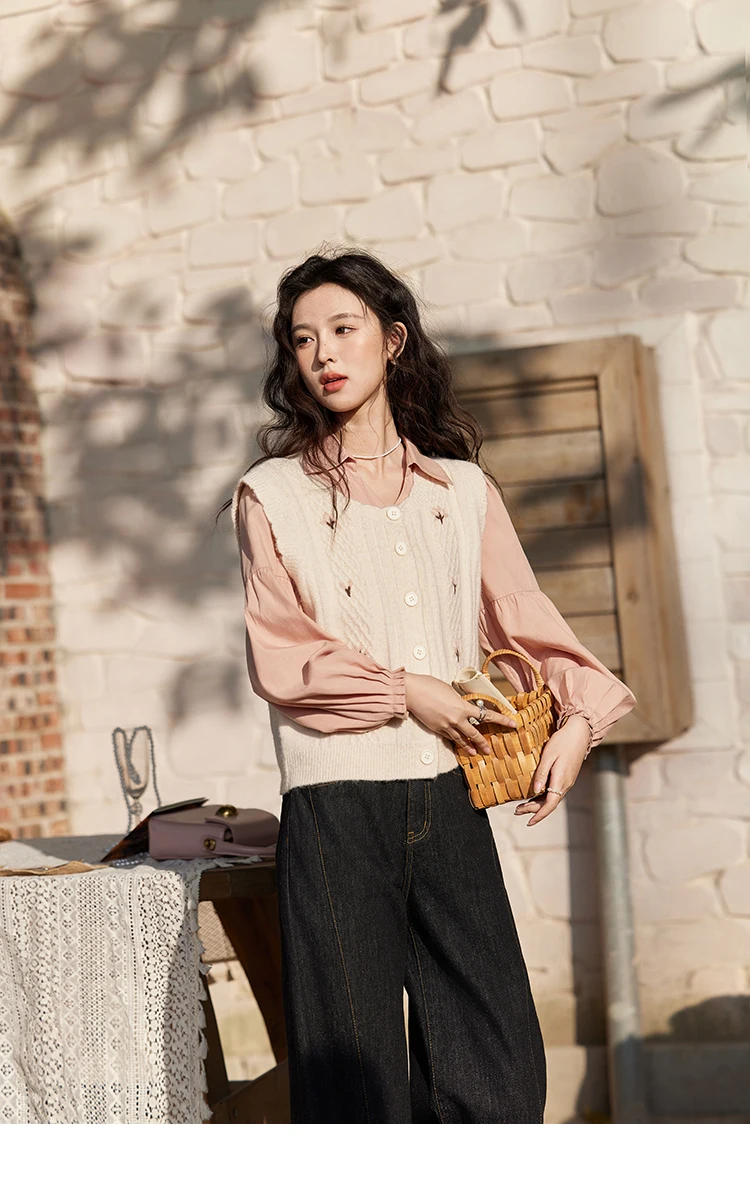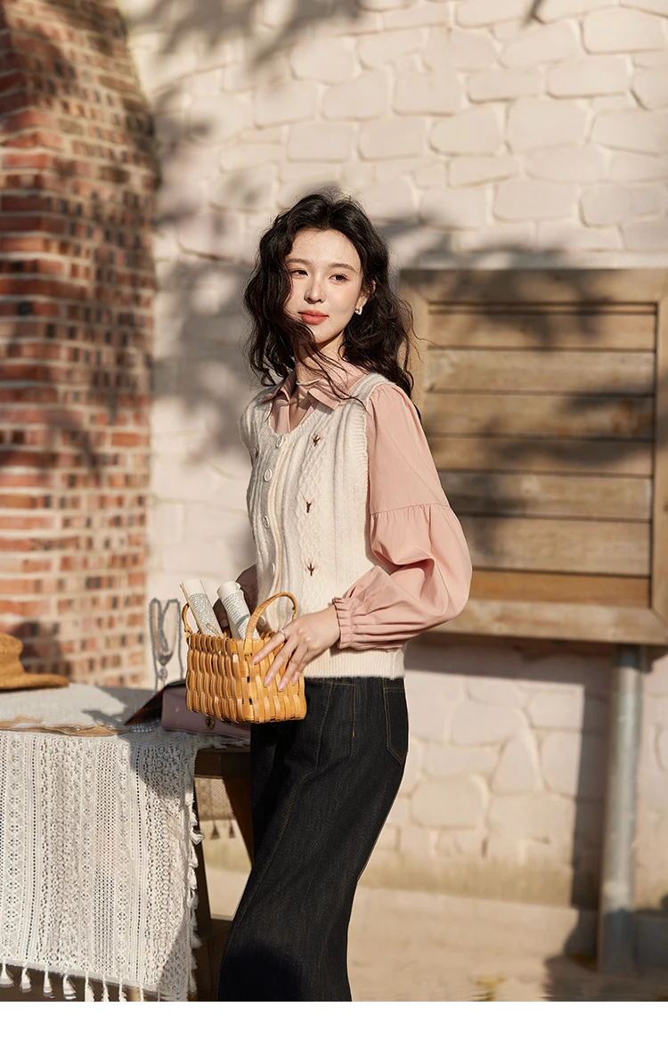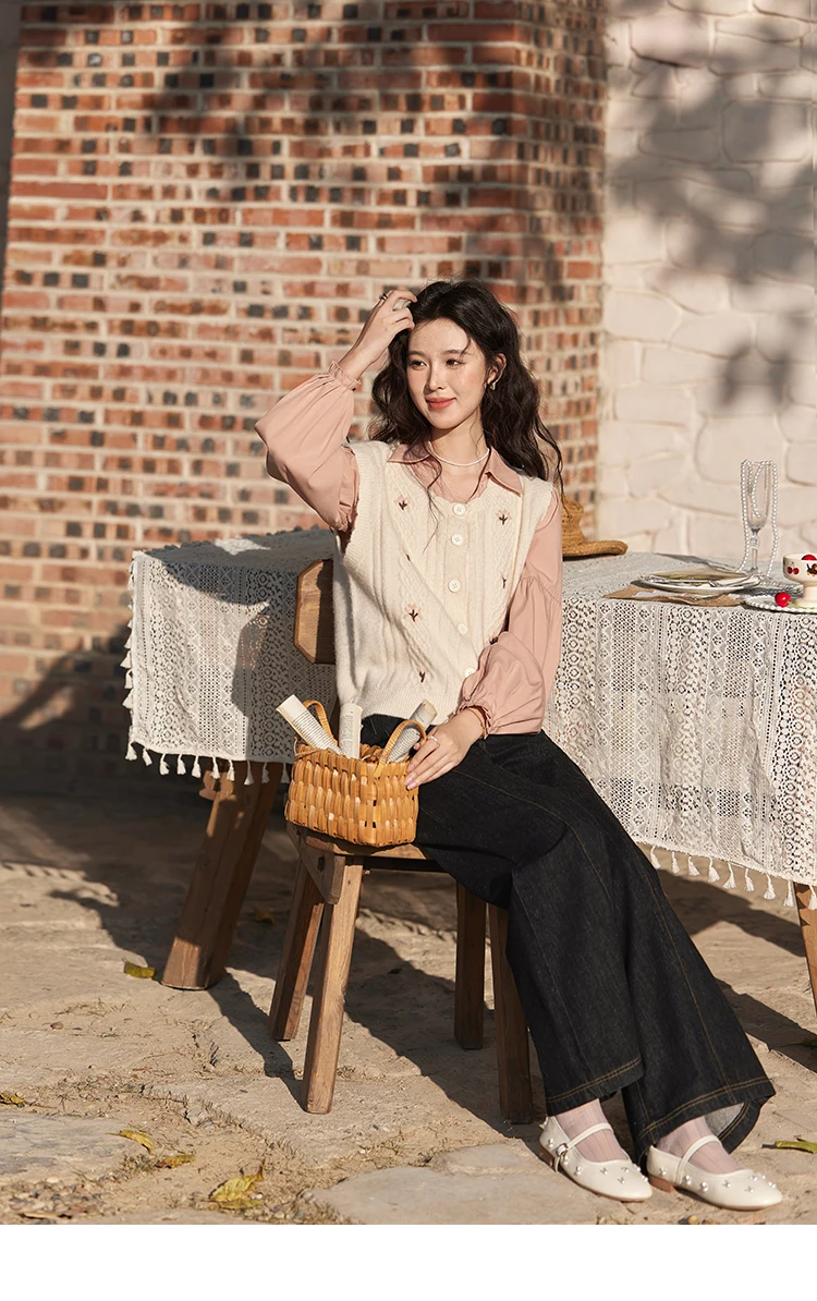MISHOW 3D Flower Sweet Knitted Vest Women's Spring 2025 New Vintage Loose Casual Sweater Vest Cute Female Tops Korean MXE11Z1077