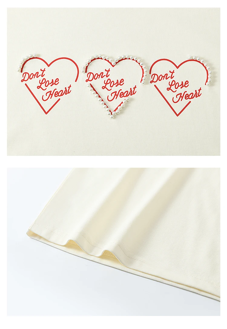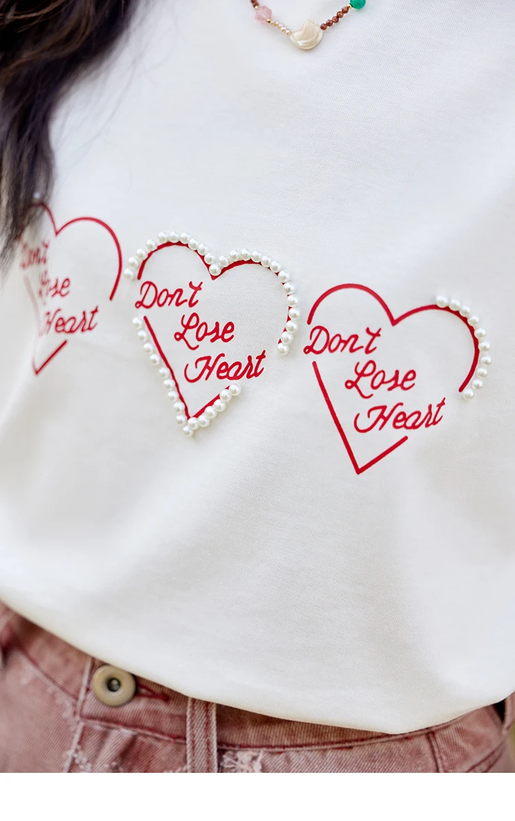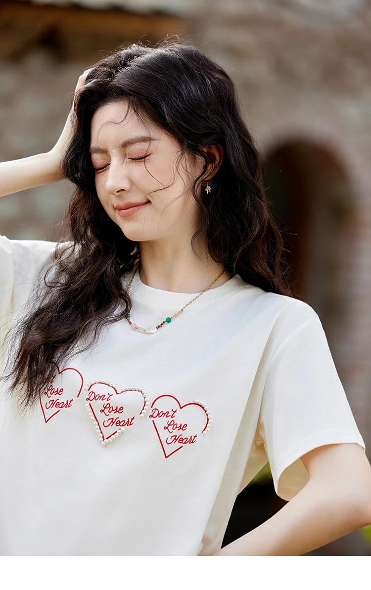 MISHOW Apricot Short Sleeved T-shirt Women 2025 Spring New Casual Versatile Heart Print Positive Shoulder Tops Outer MXE11T0491