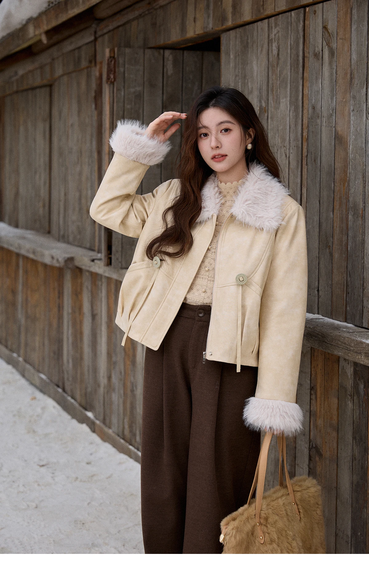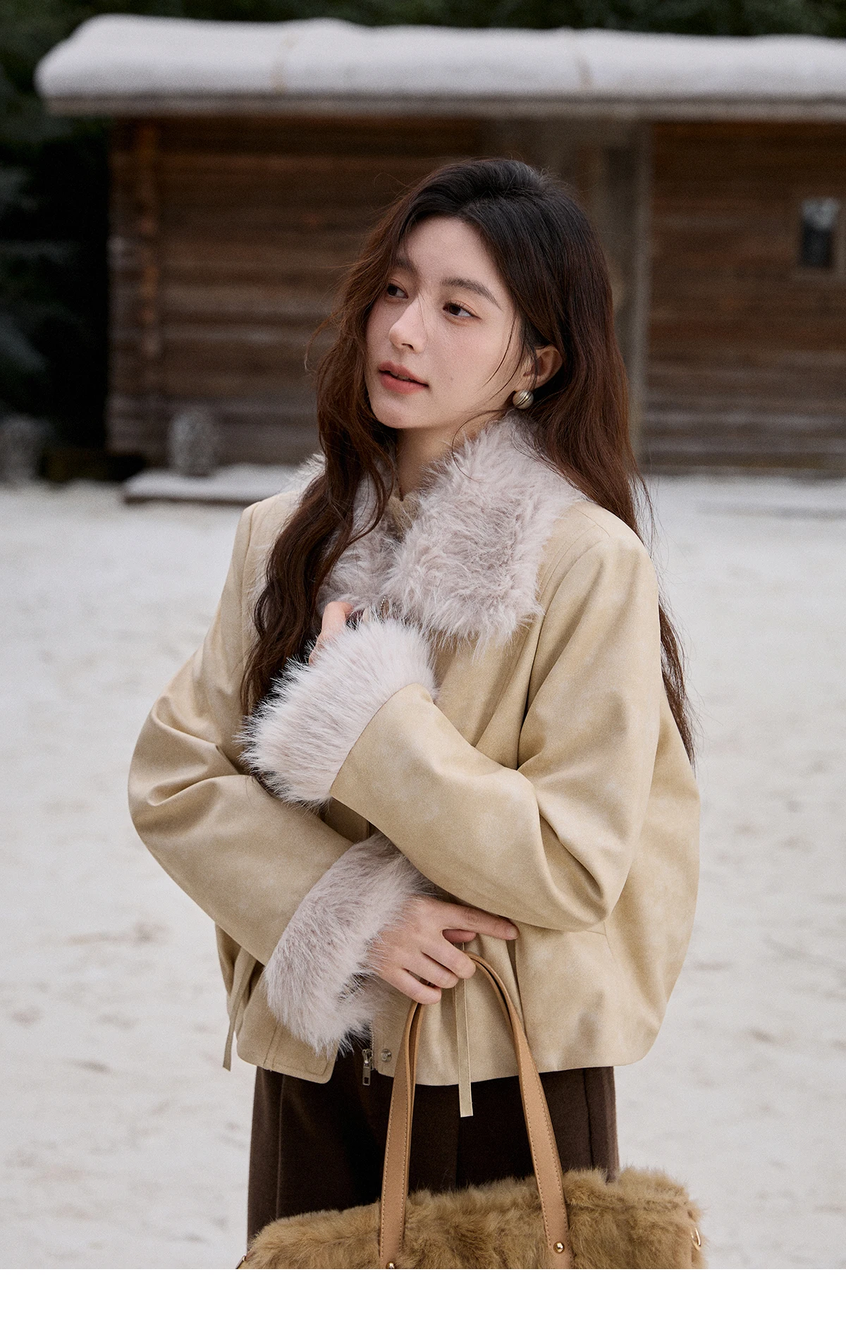 MISHOW Apricot Suede Jacket with Plush Collar Lapel for Women 2025 Winter Warm Overcoat Ladies Retro Thickening Coats MXE91W0987
