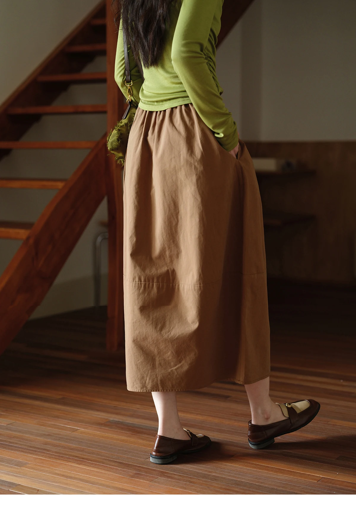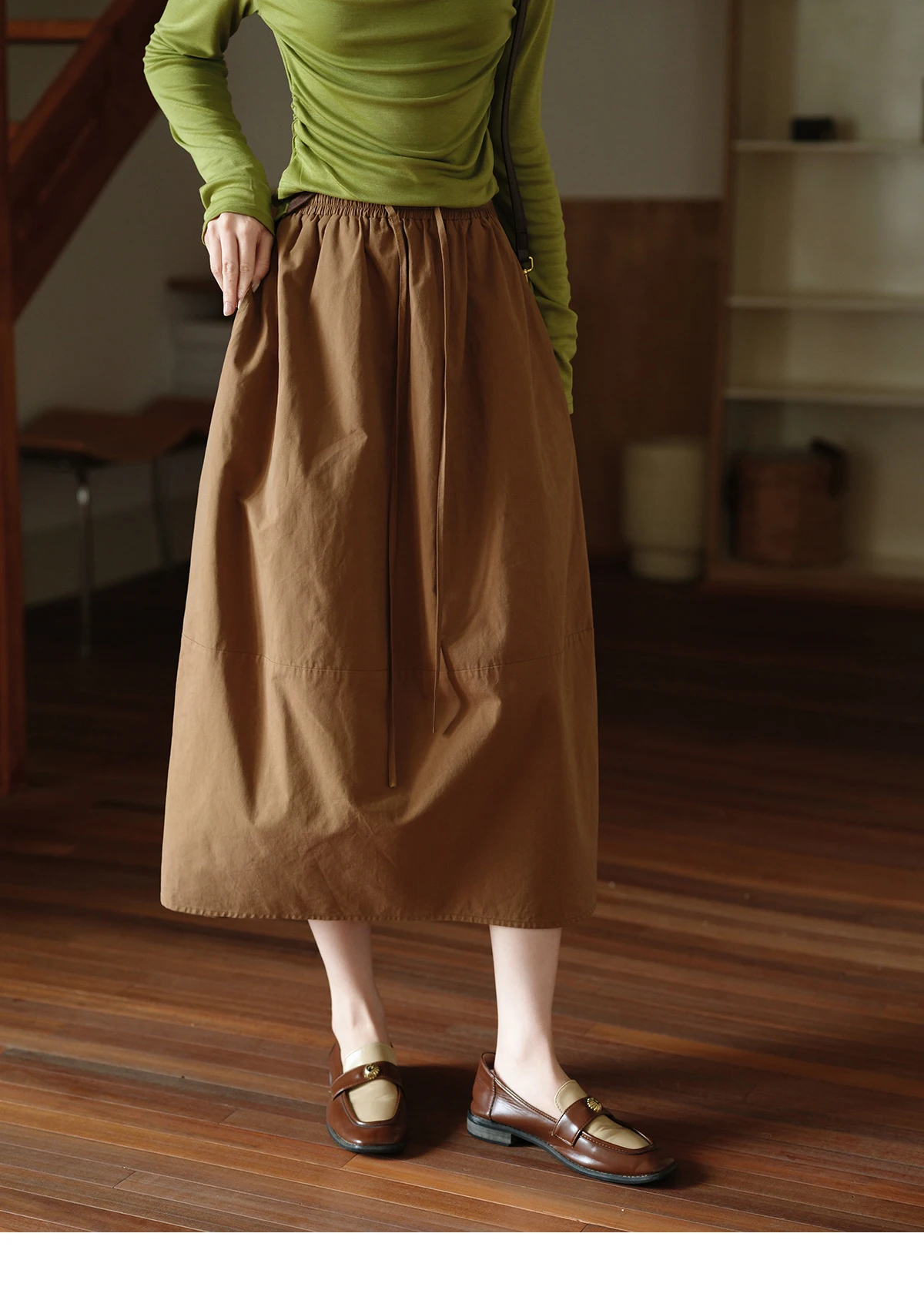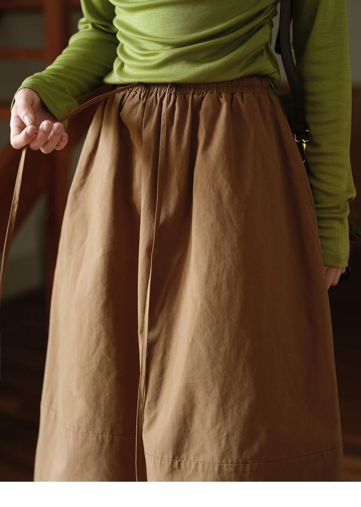 MISHOW Autumn Brown Cotton Bud Skirt 2025 Autumn Elastic Drawstring High Waist Slim A-line Casual Skirt with Pocket MXE41B2367