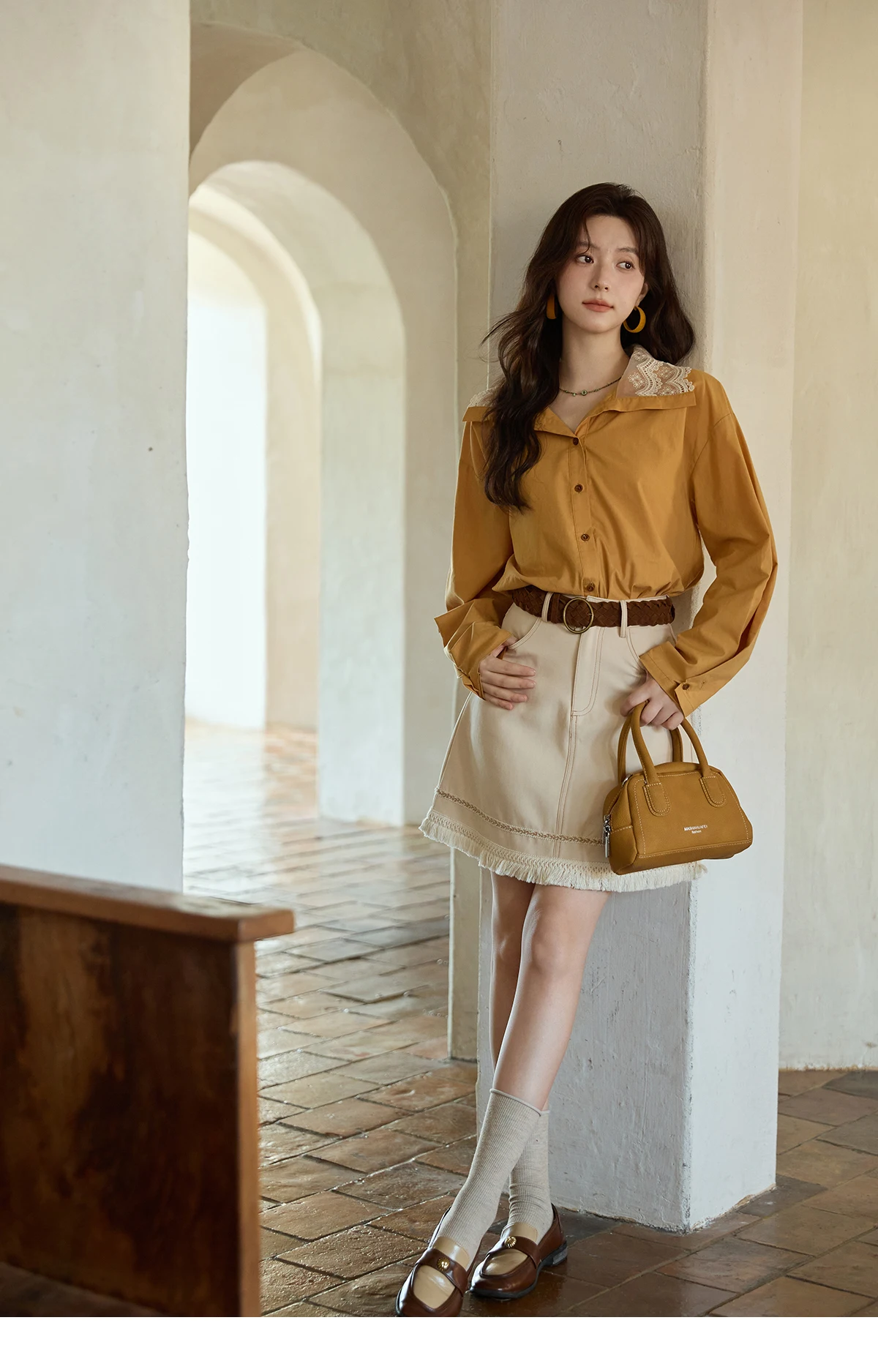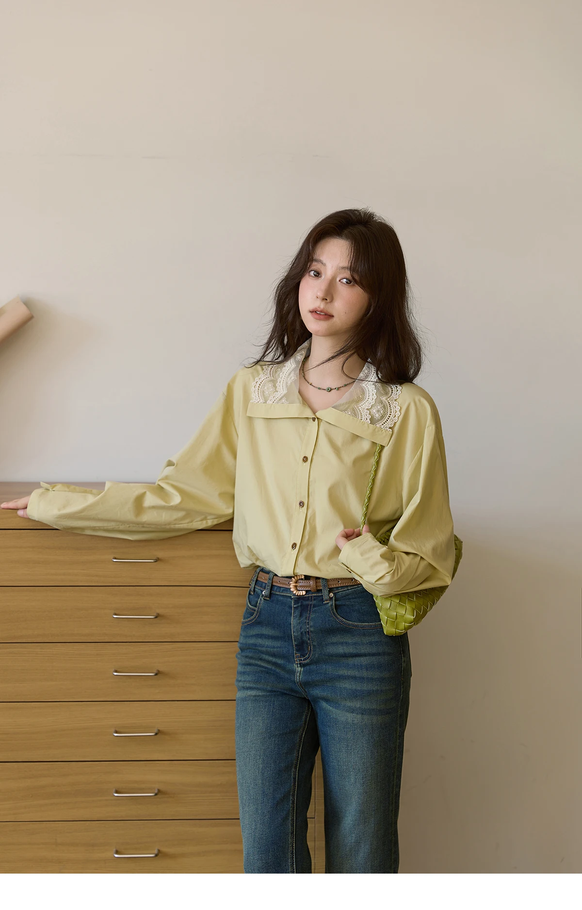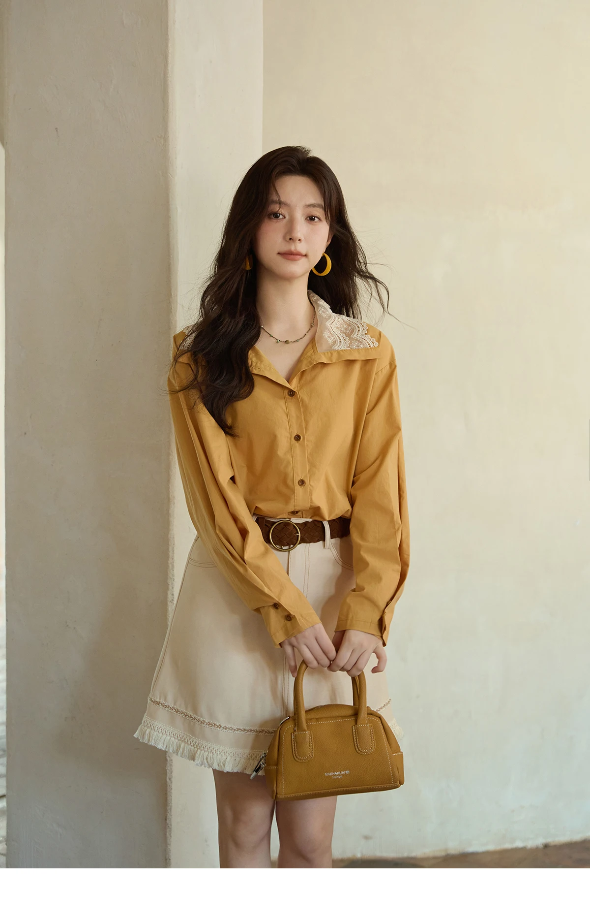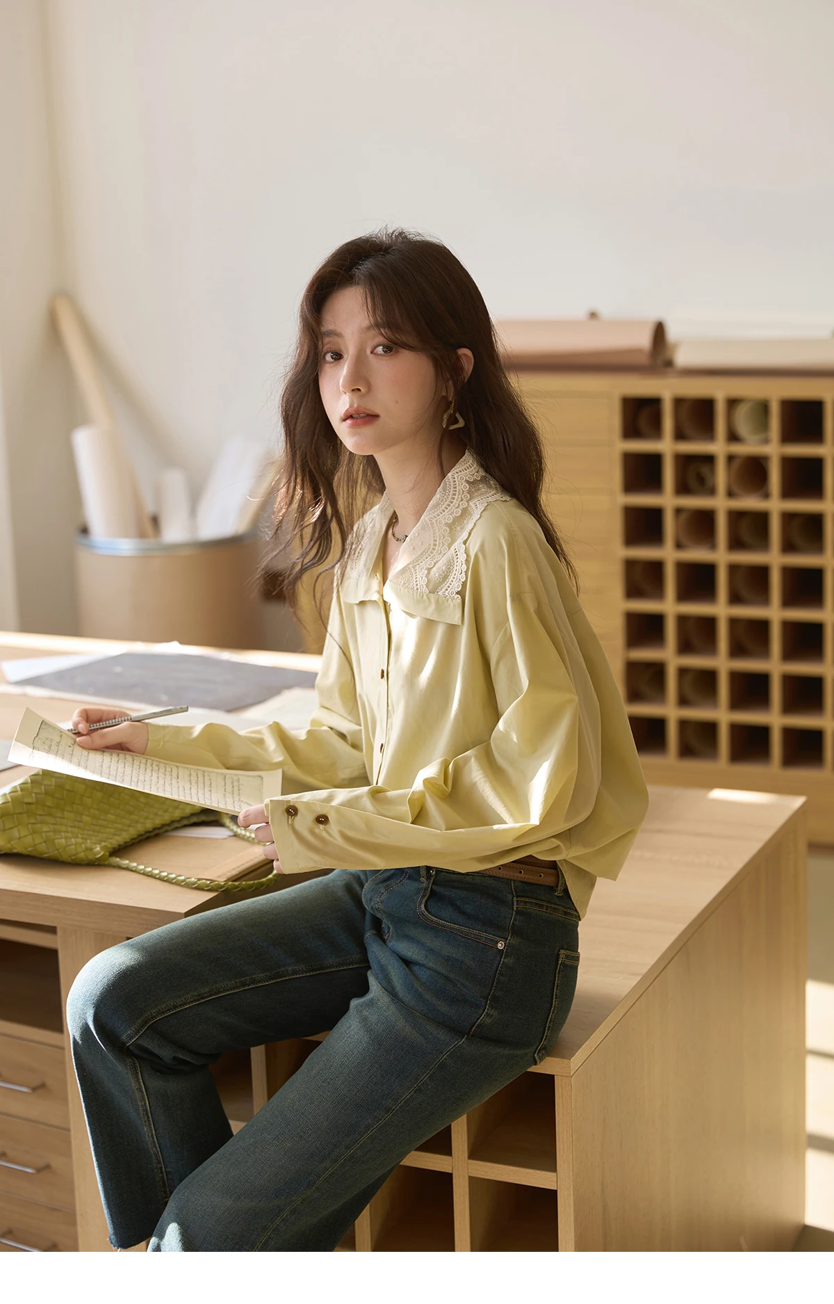 MISHOW Autumn Solid Cotton Shirt Autumn V-neck Double-layer Lace Retro Design Shirts Single Breasted Tops Office Lady MXE41C2366
