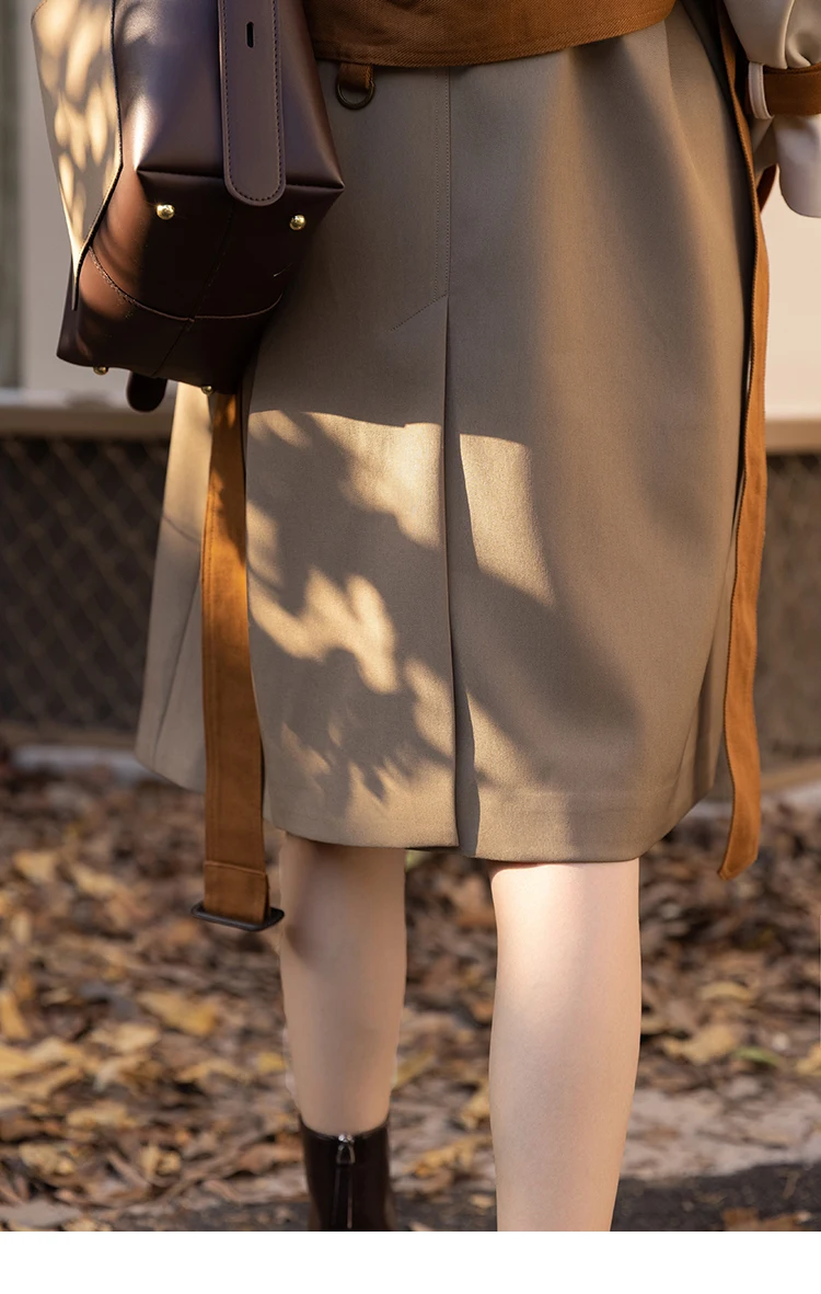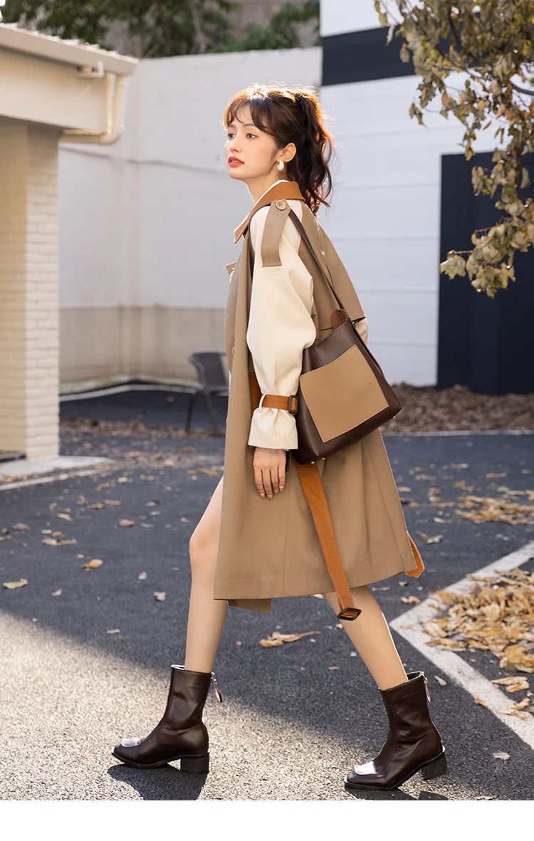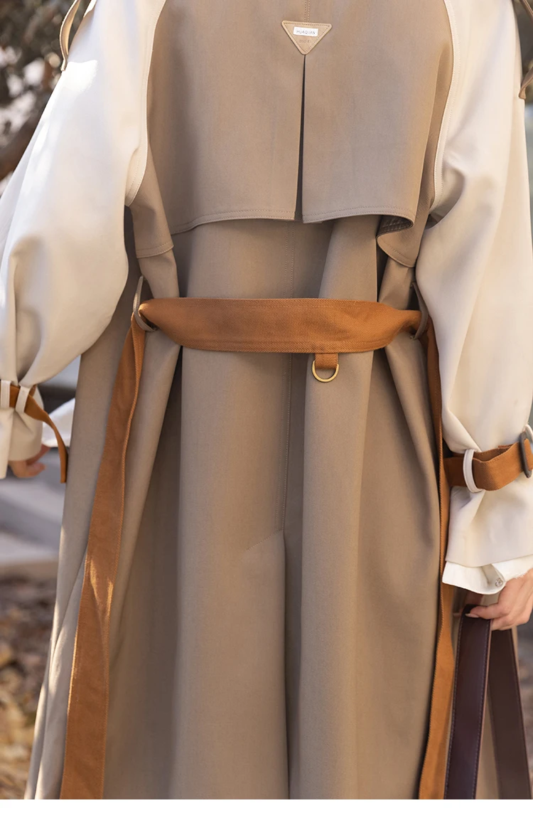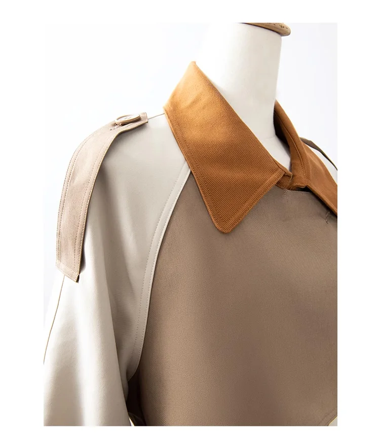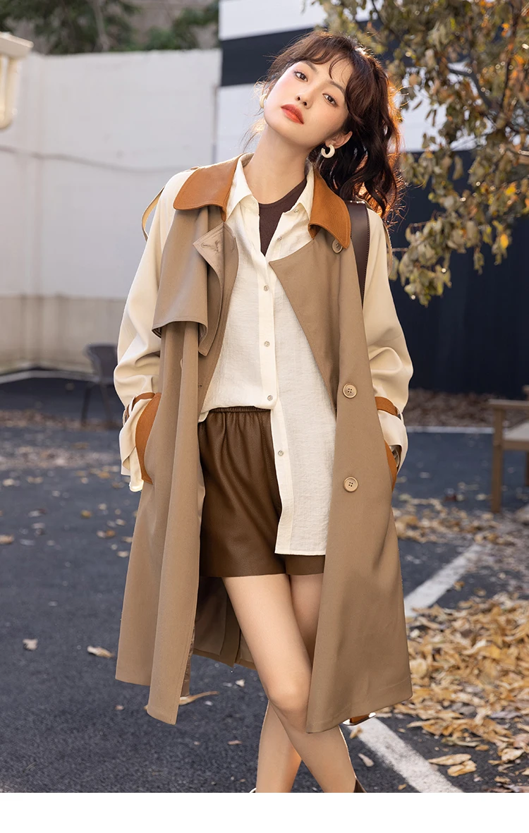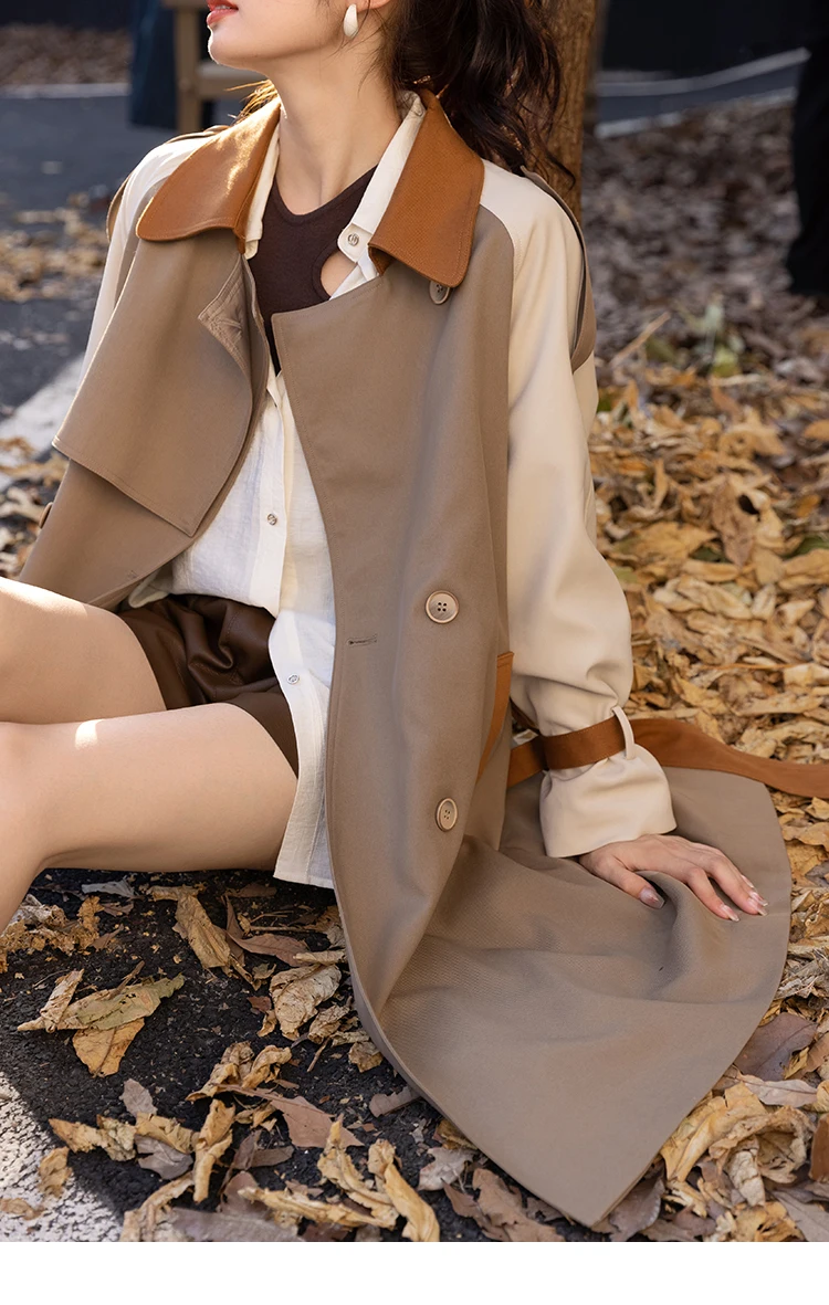MISHOW Autumn Women's Khaki Trench Contrast Color Woman Clothes Spliced Turn-down Collar All-match Casual Jacket MXB31W0367