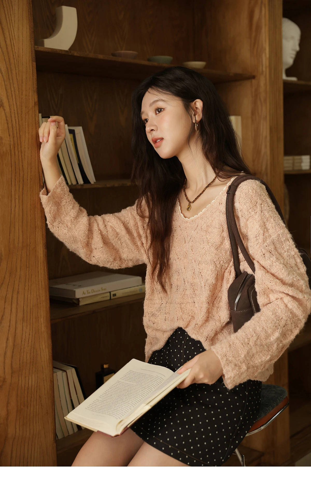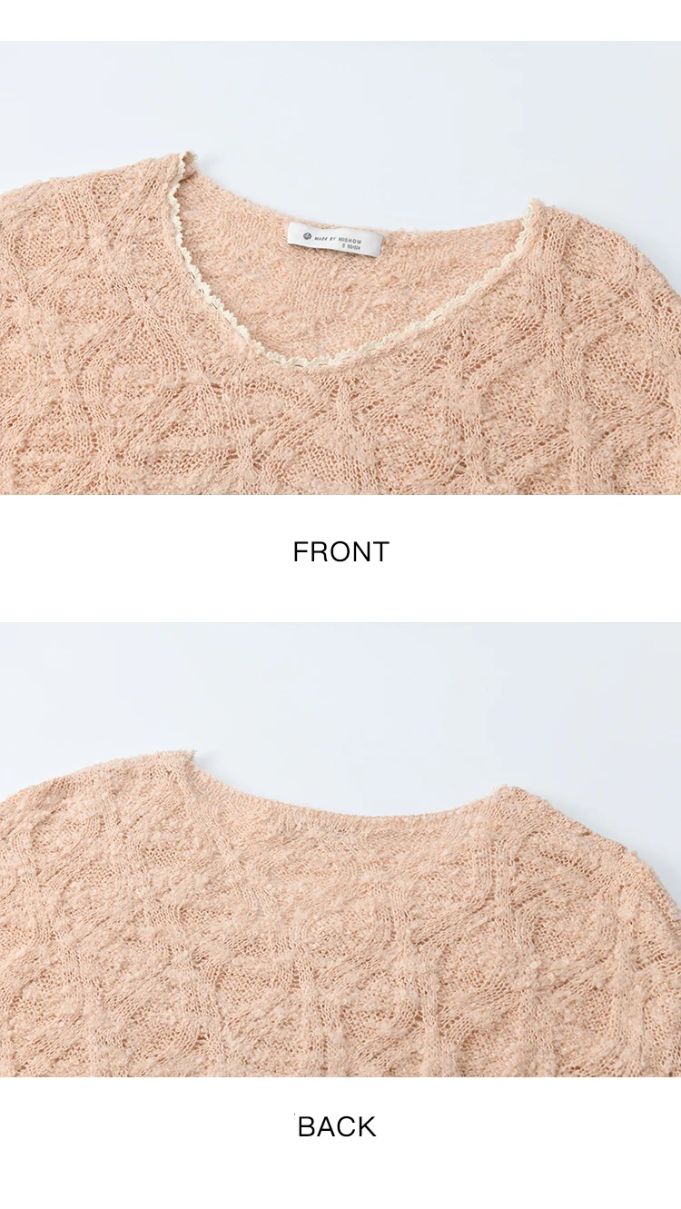 MISHOW Bamboo Loop Yarn Knitted Sweater for Women Autumn 2025 Hollow V-neck Lace Sweater Casual Solid Pullovers Tops MXE43Z1349