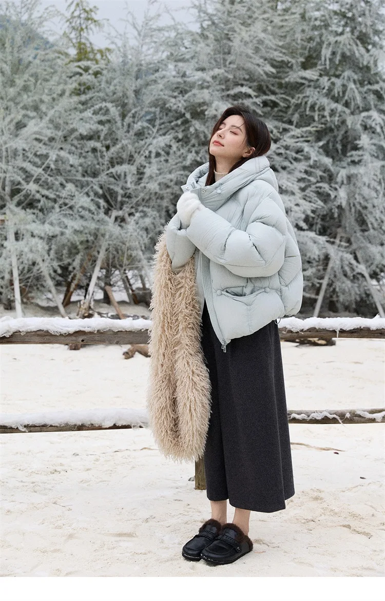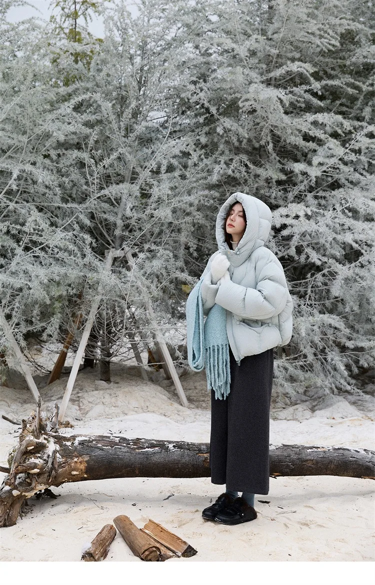 MISHOW Blue Down Coat Women 2025 Winter Fashion Elegant 90% White Duck Down Short Lightweight Puffer Jacket Warm MXE51Y0081