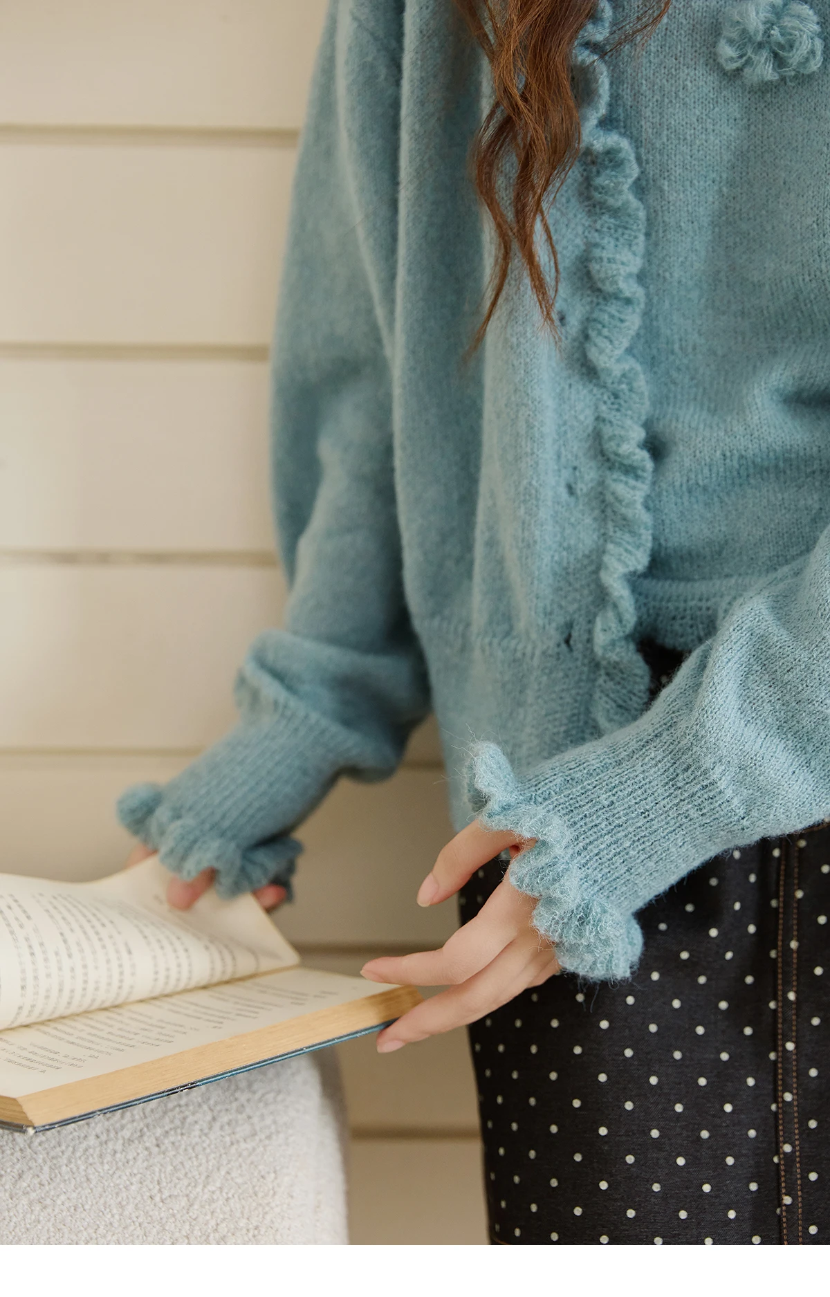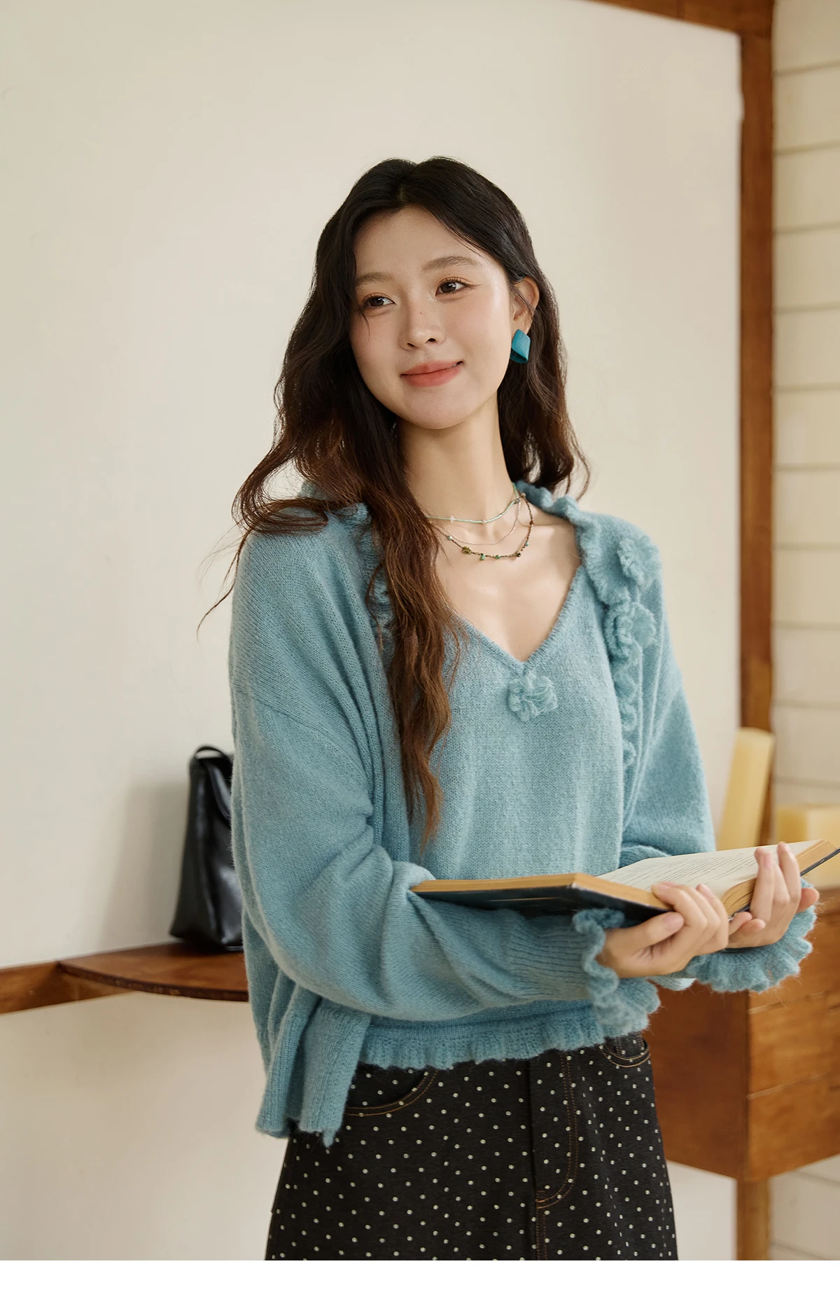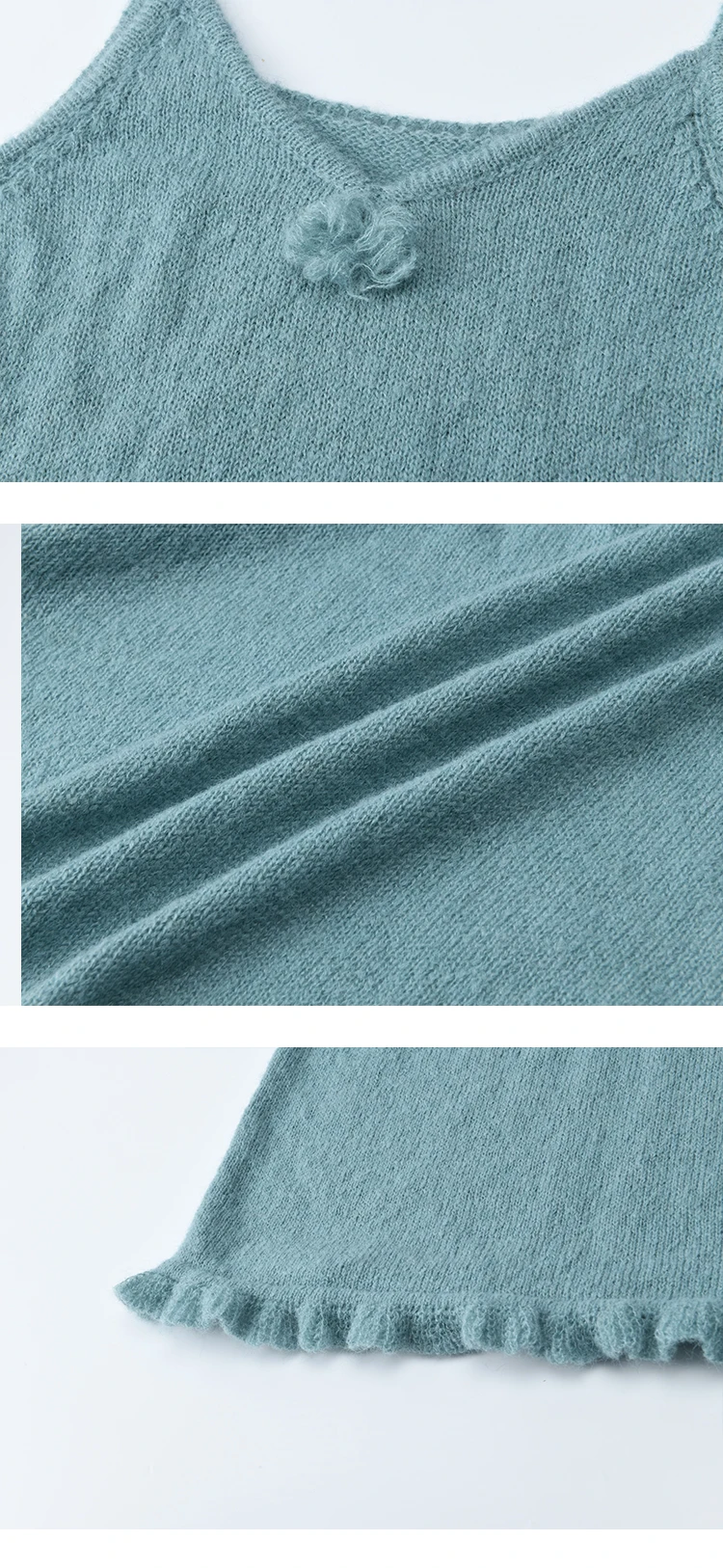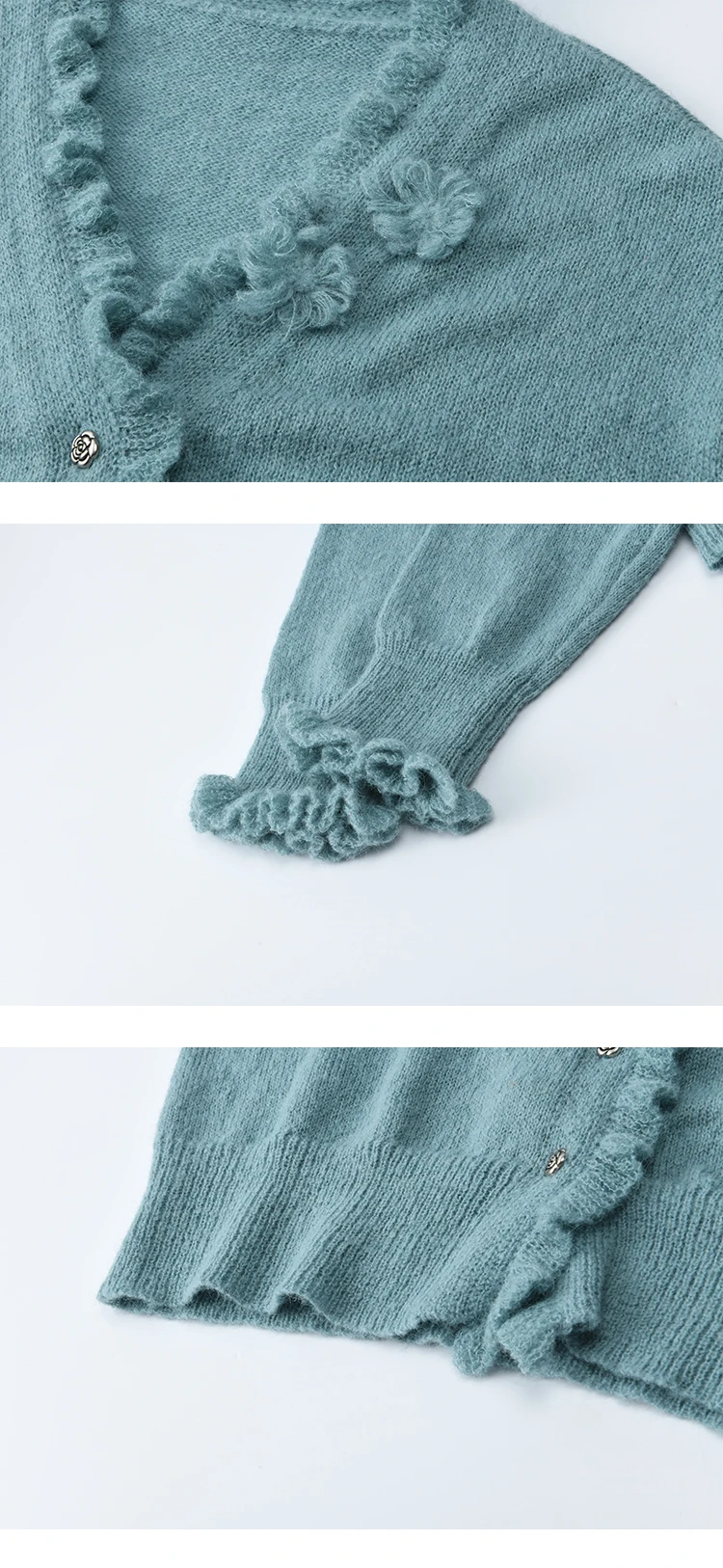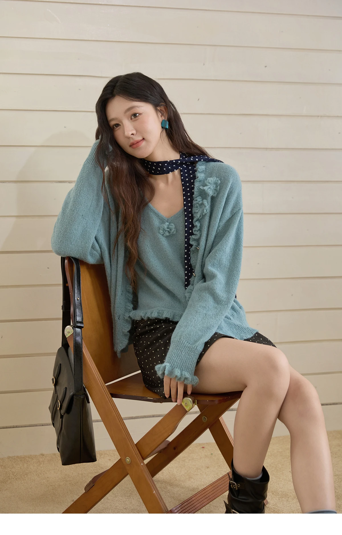 MISHOW Blue Knitted Cardigan Strap Two Piece Set 2025 Autumn Sweater Cardigan Lotus Leaf Edge Flower V-neck Camis Set MXE45T1377