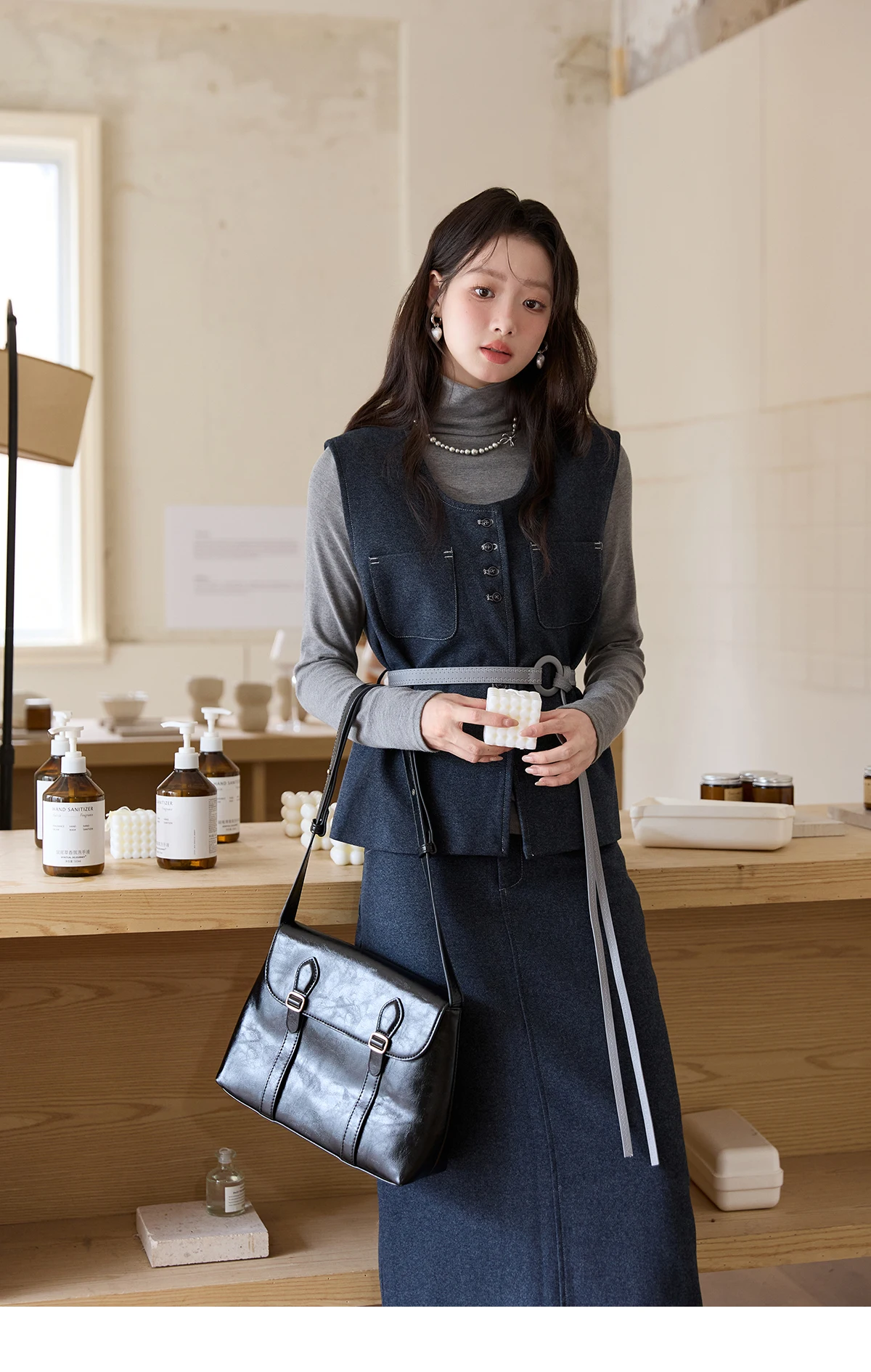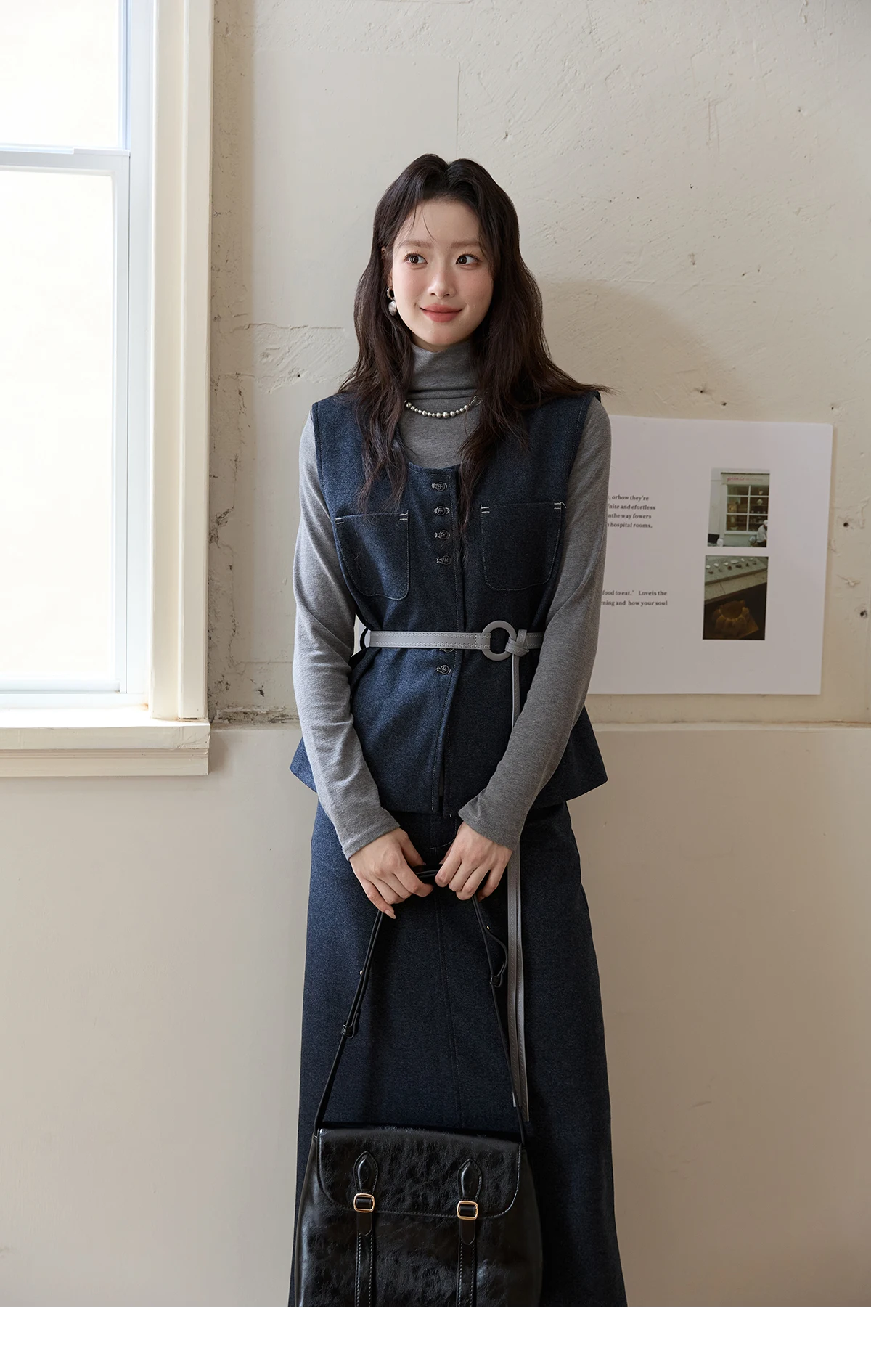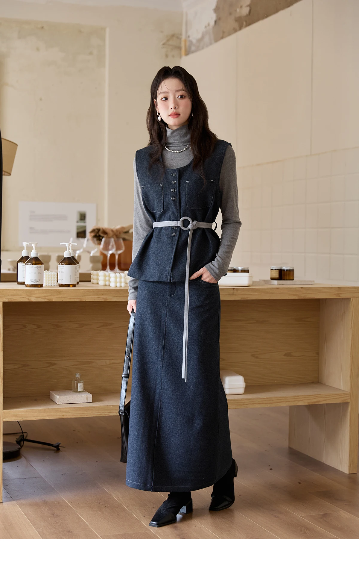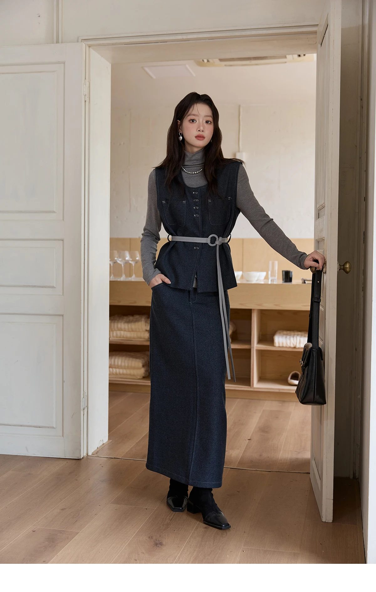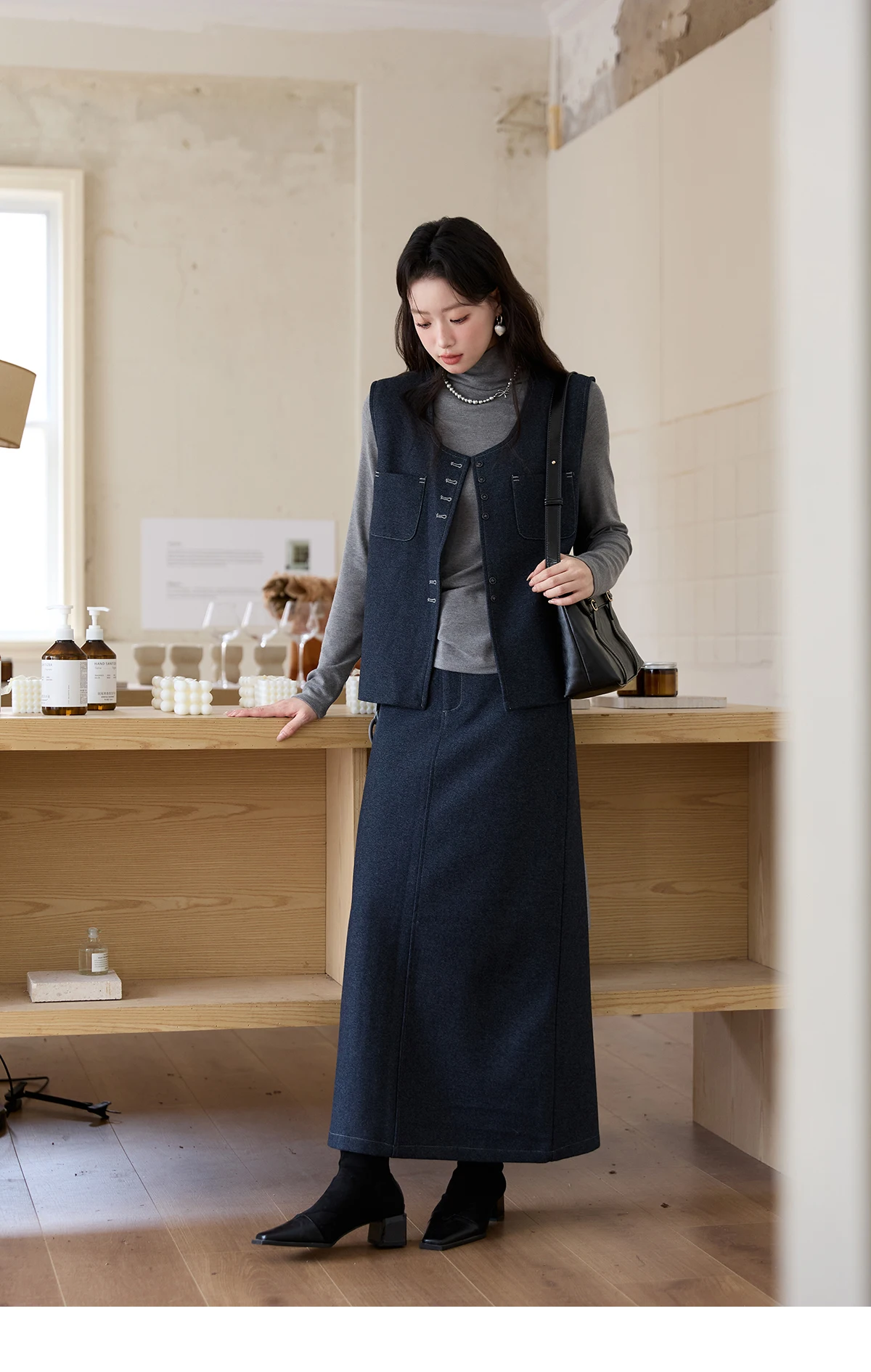 MISHOW Blue Three-piece Suit for Women 2025 Autumn Sleeveless Vest Straight Midi Skirt Slim Knit Tops Skirt Set MXE49T1421