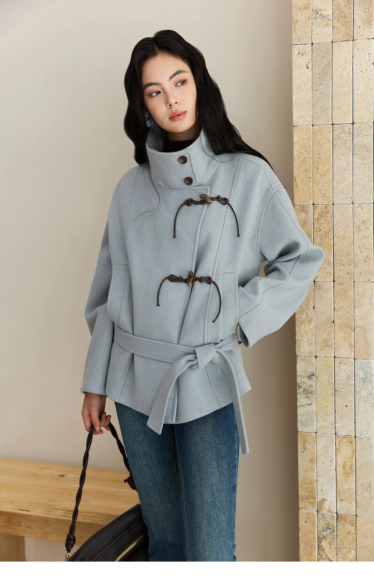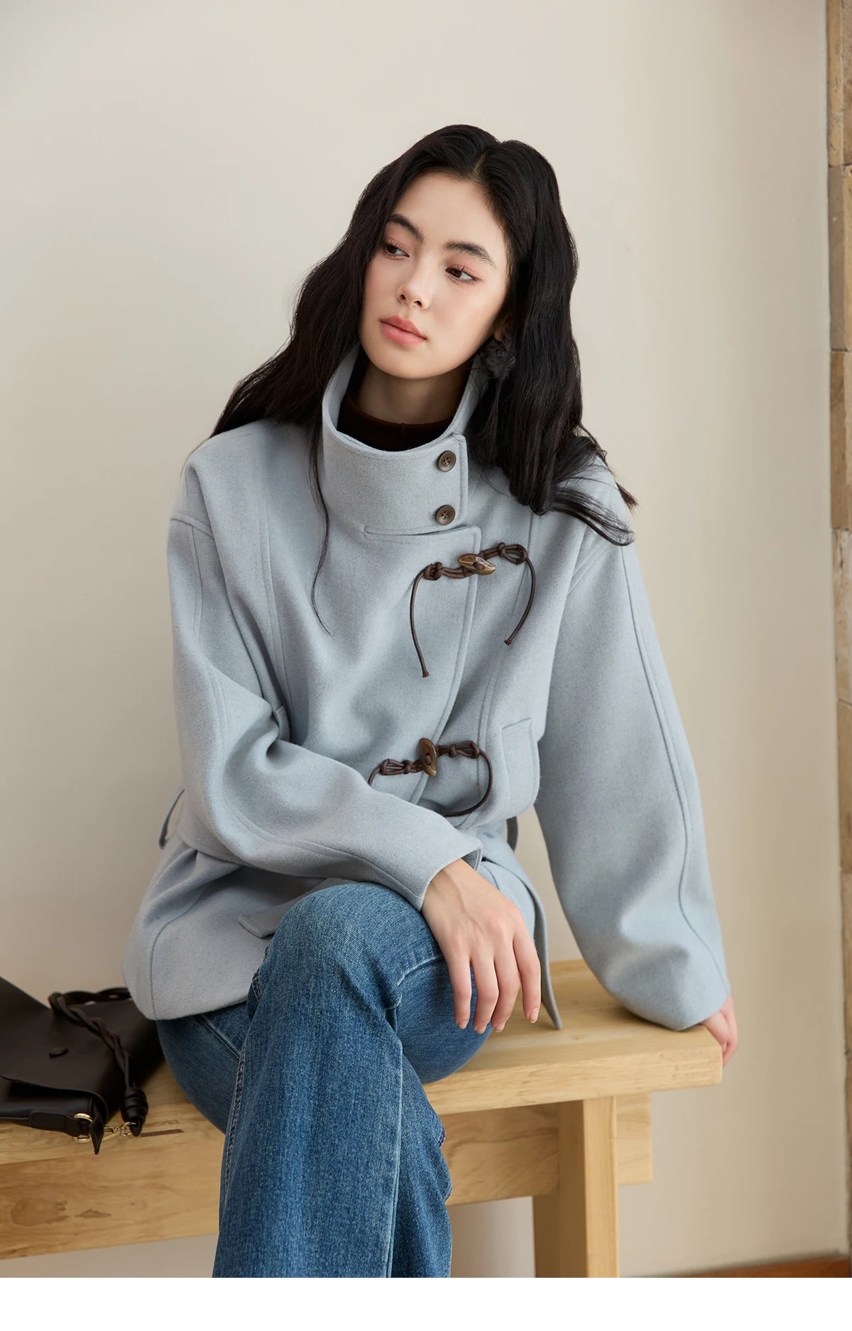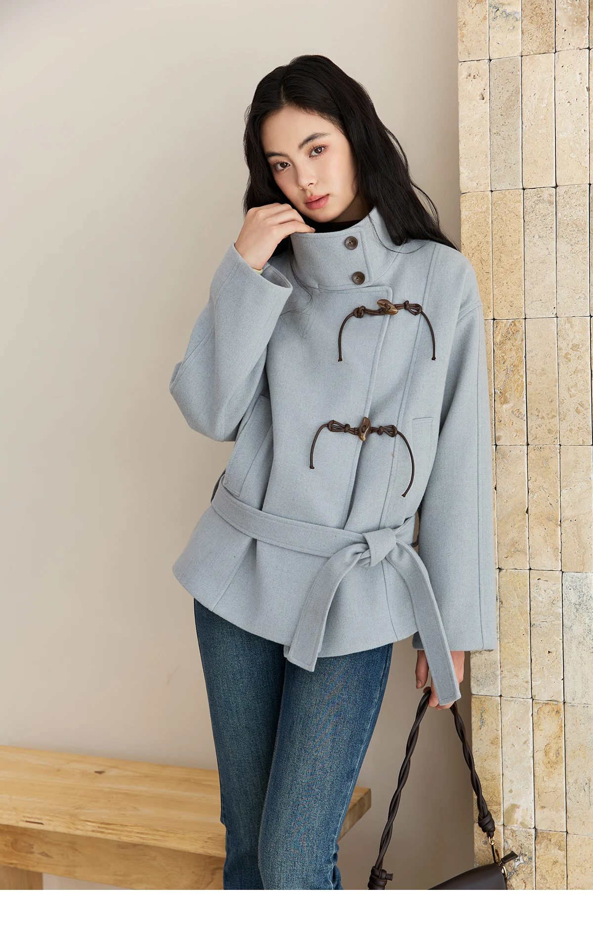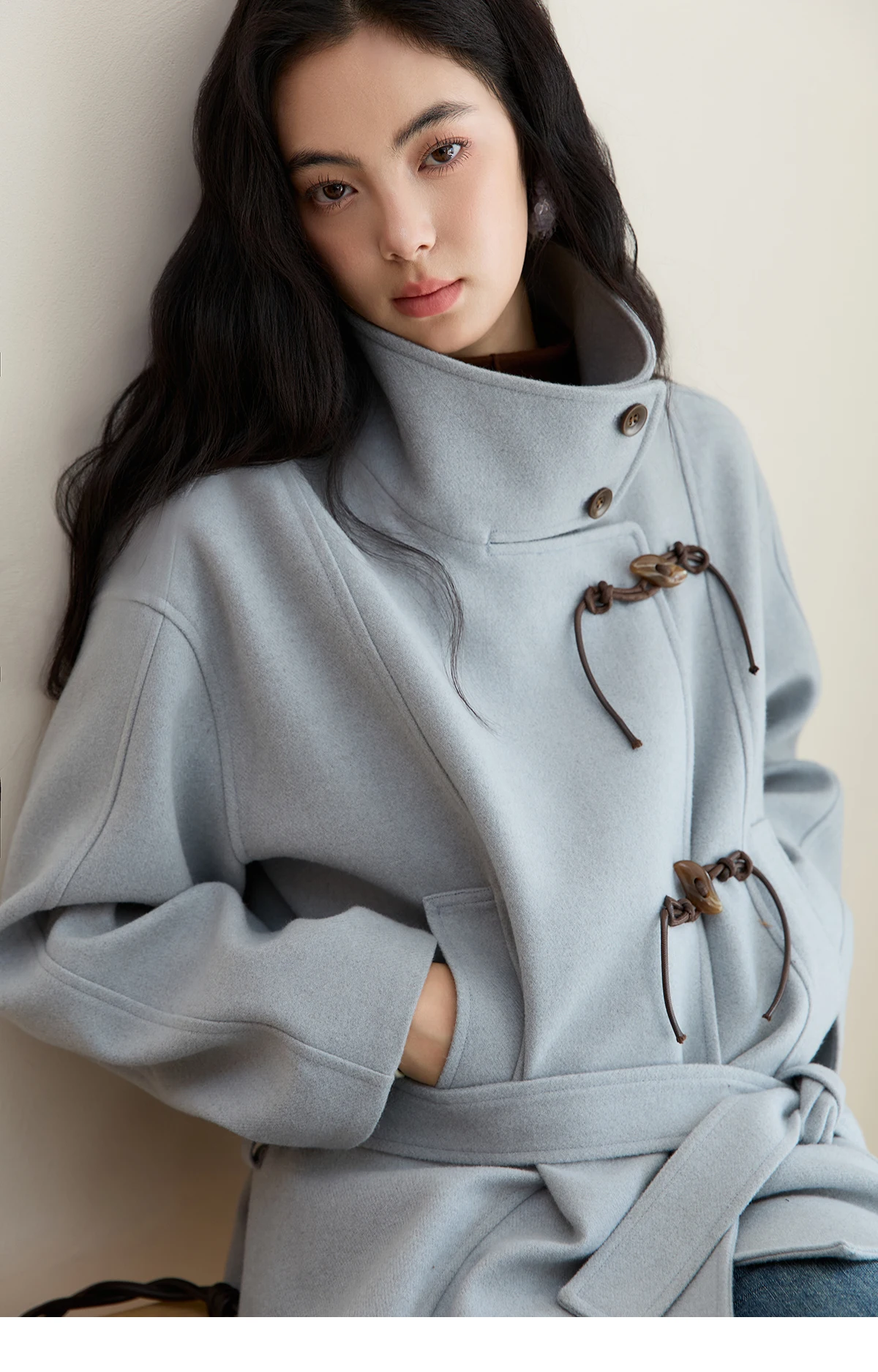 MISHOW Blue Woolen Coat Women 2025 Winter New Double-breasted Lace Up Coat Mid-length Windbreaker Women's Clothing MXE51W0872