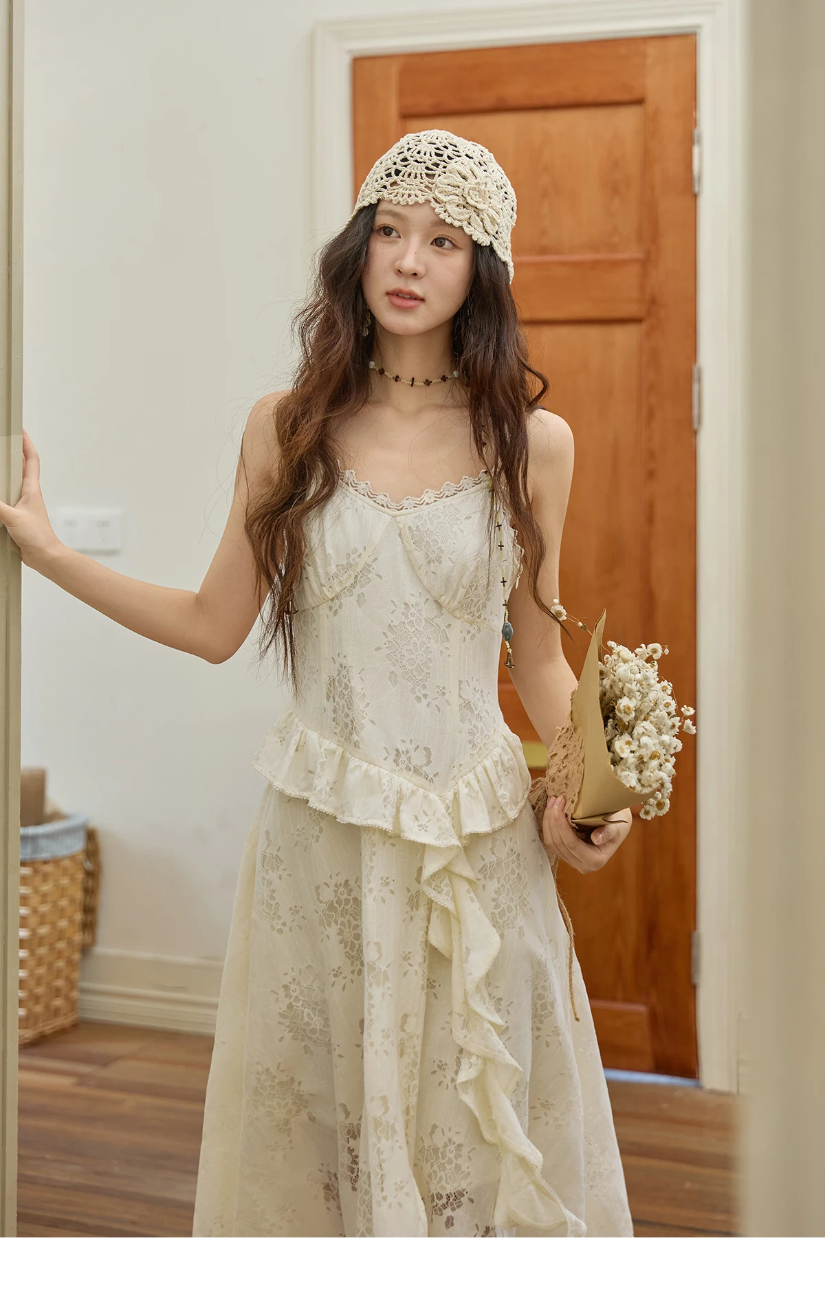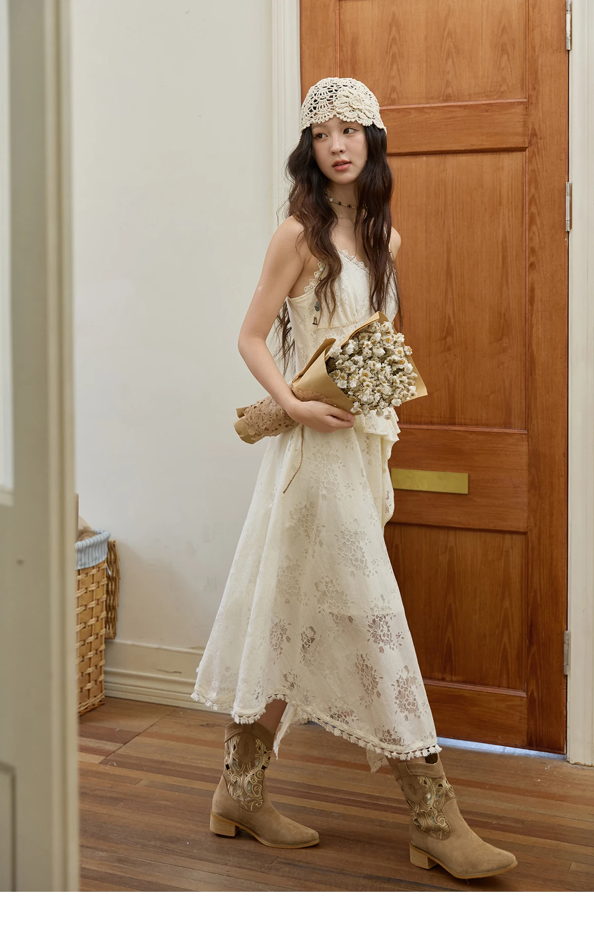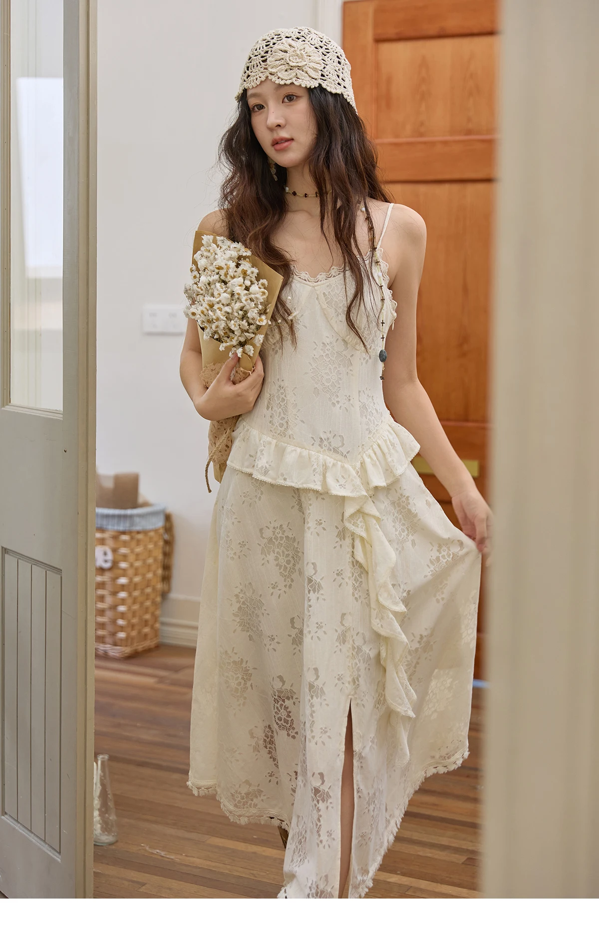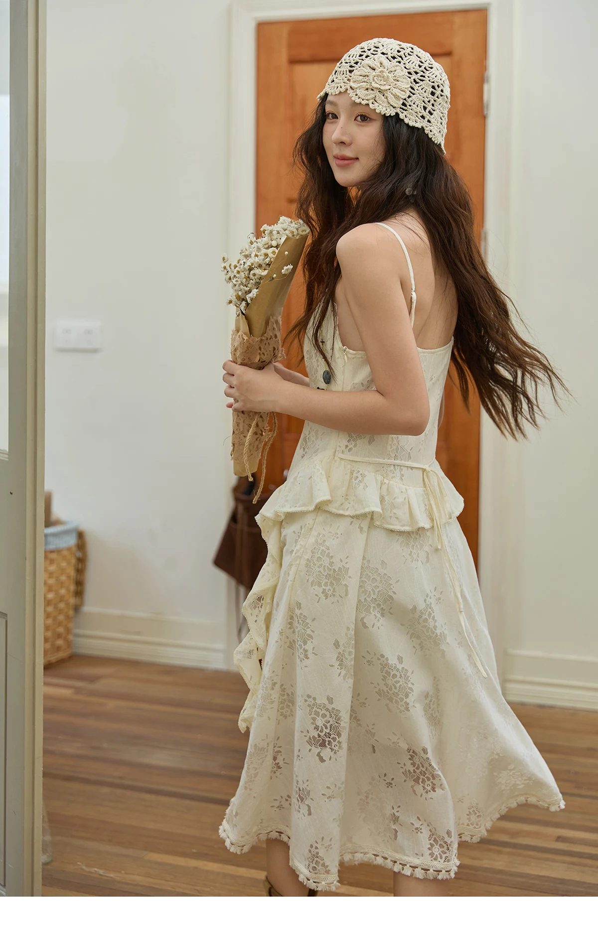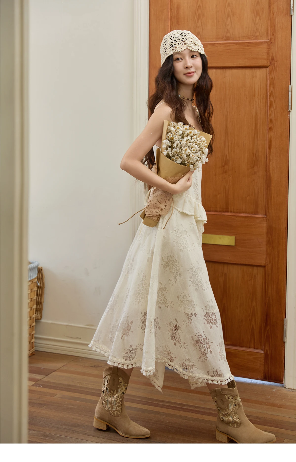MISHOW Bohemian Apricot Lace Camisole Inner Dress Autumn Irregular Ruffle Tassel Hem Dresses Front Side Fork Dress MXE43L2449