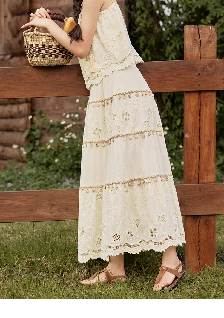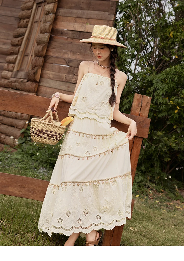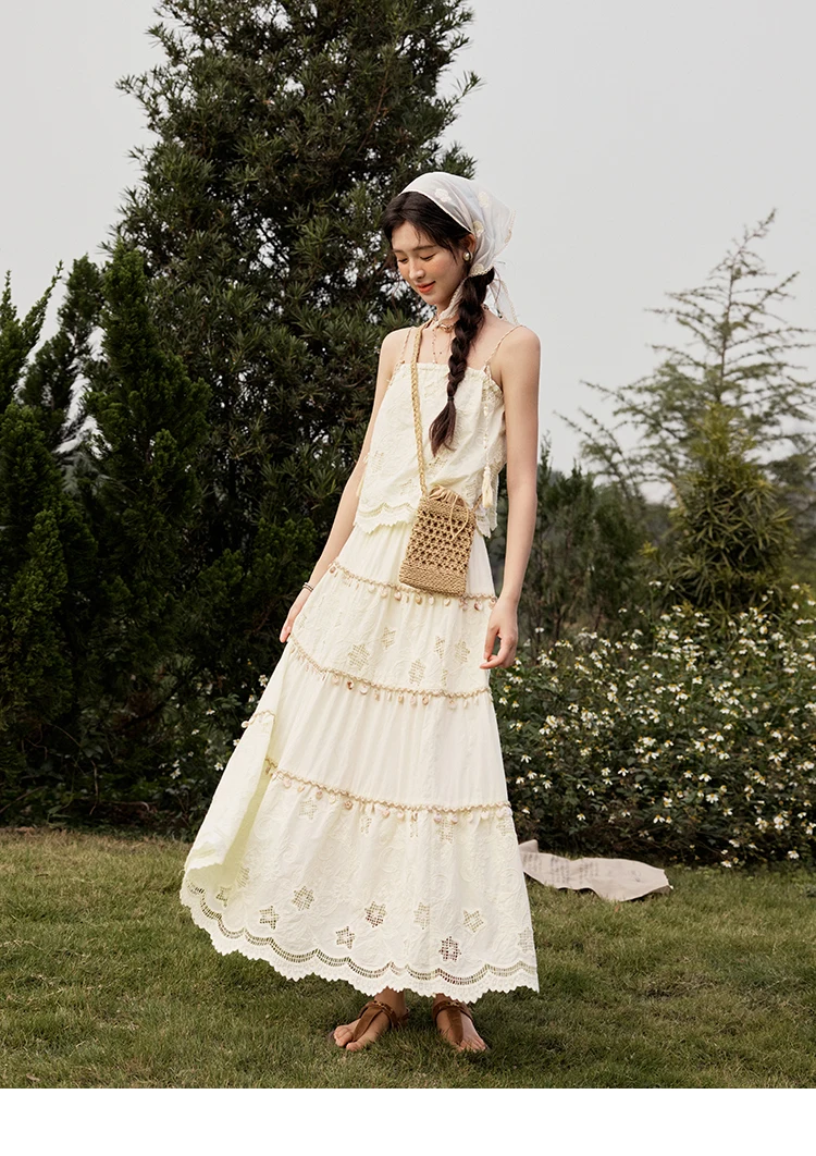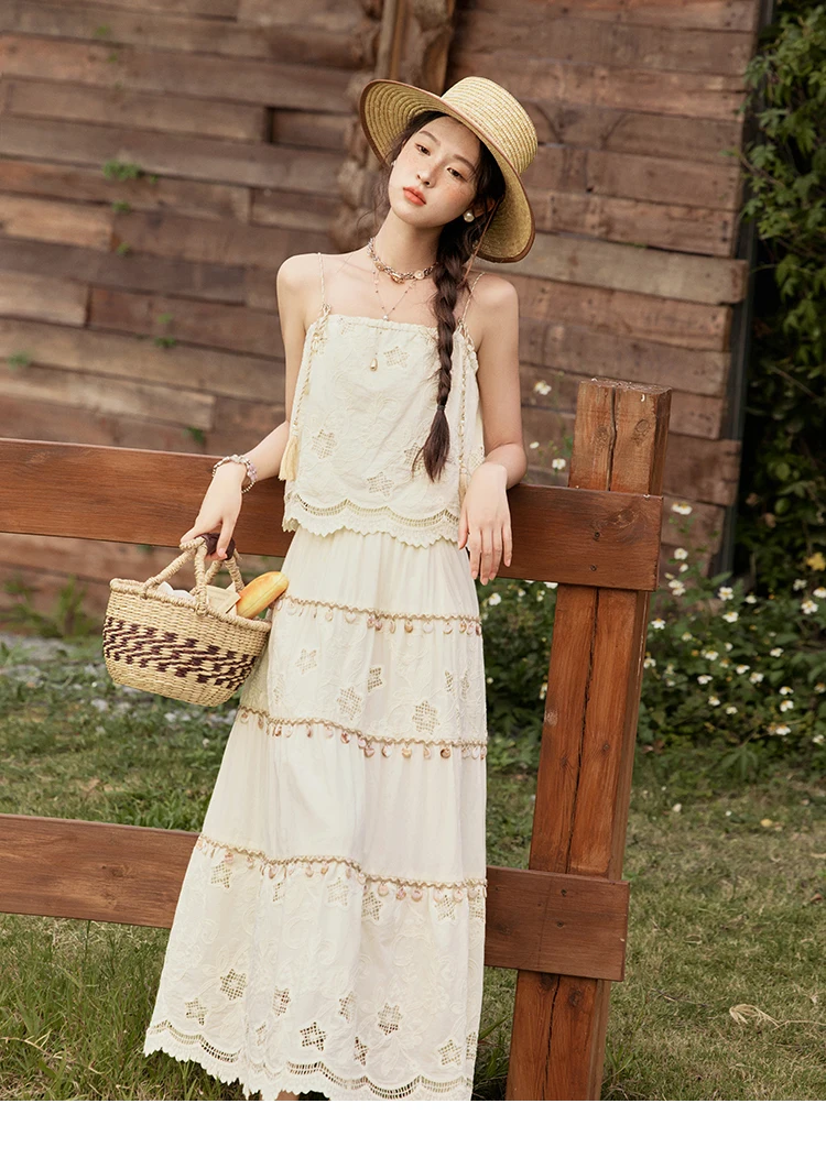 MISHOW Bohemian Summer Camisole Skirt Sets Women 2025 Sleeveless Embroidery Tops Long Skirts Female New Fashion MXE34T0568
