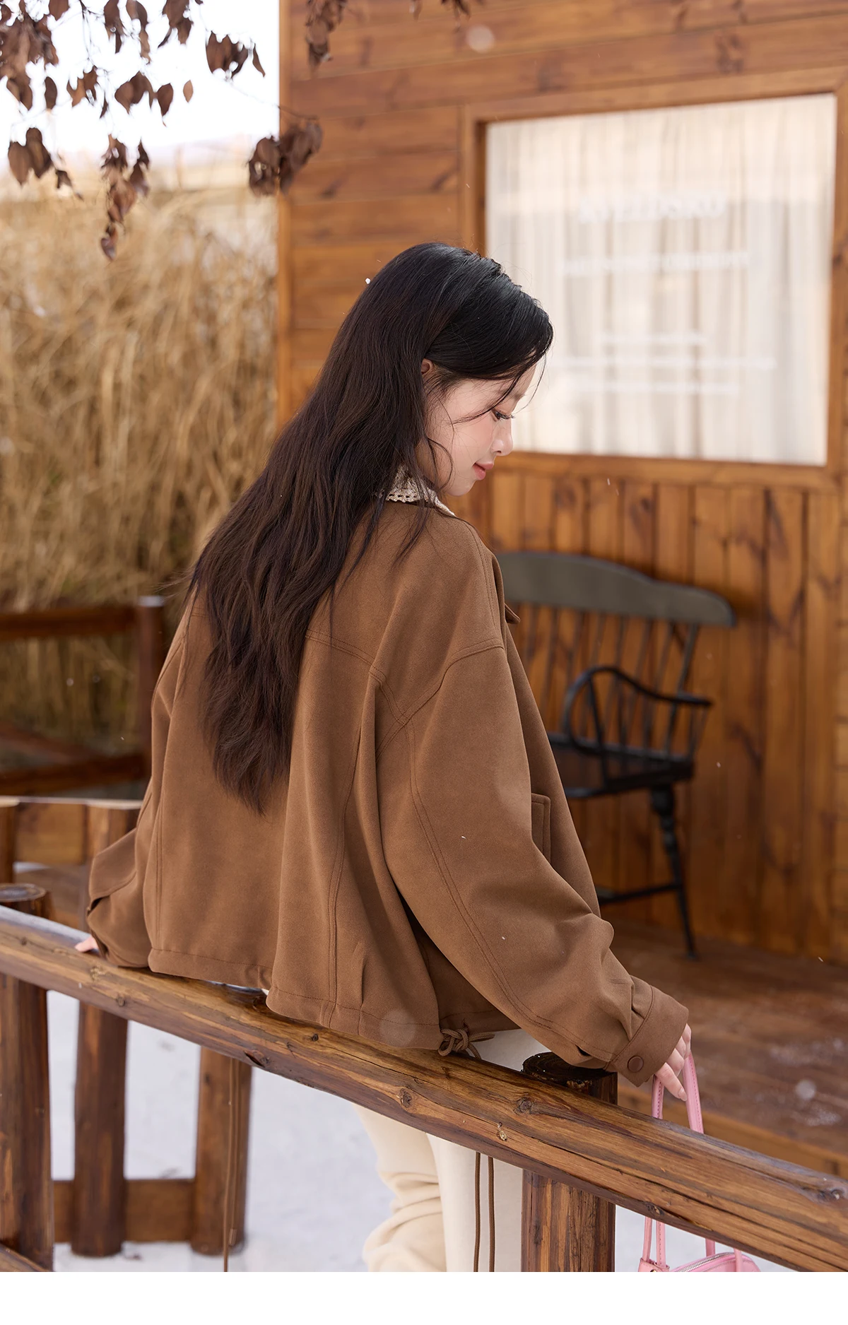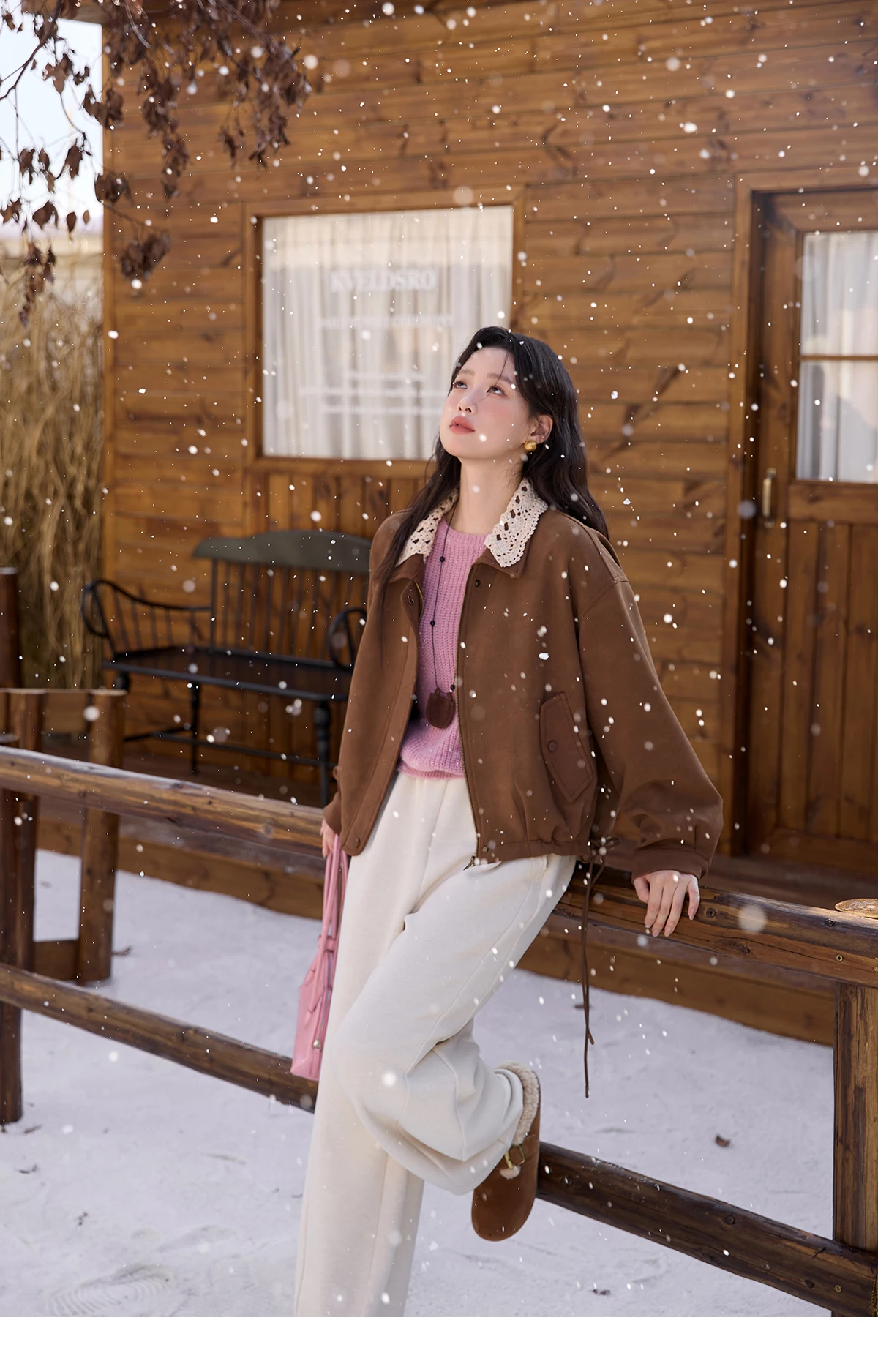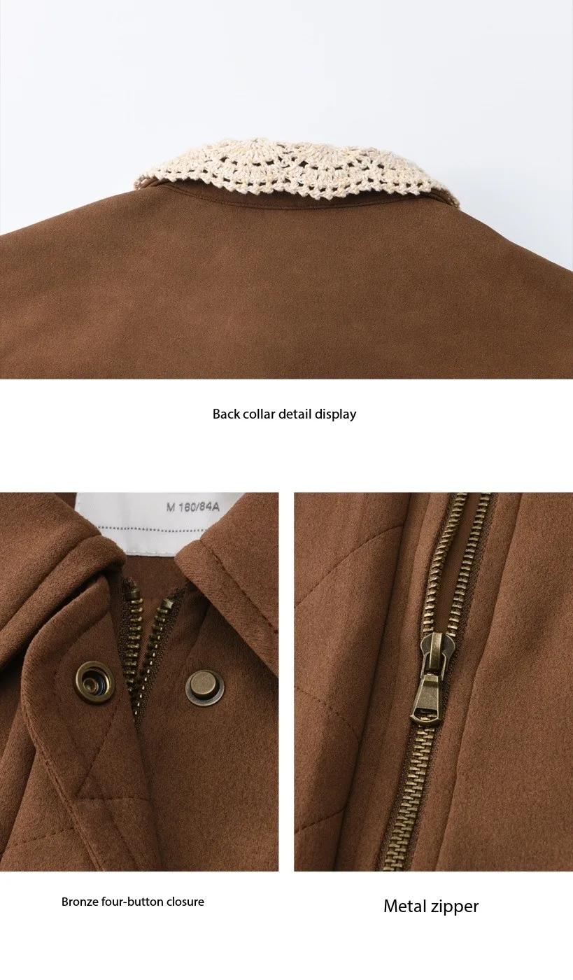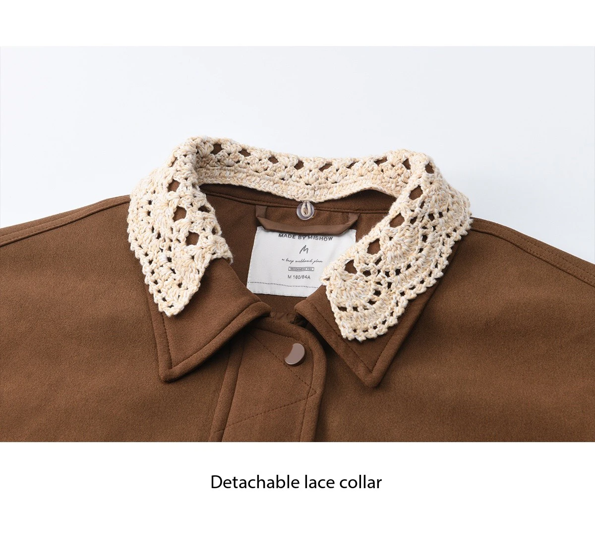 MISHOW Brown Jacket for Women 2025 Autumn Winter Retro Detachable Lace Collar Drawstring Hem Jacket Women's Clothing MXE45W0846