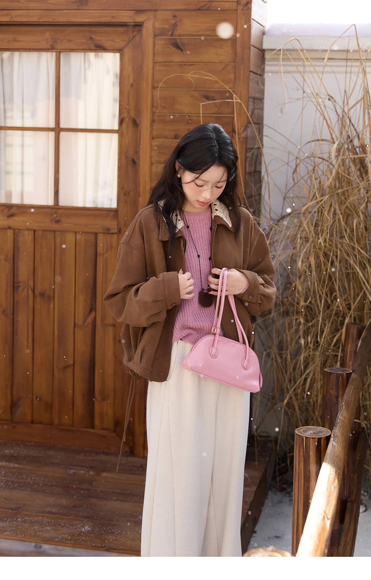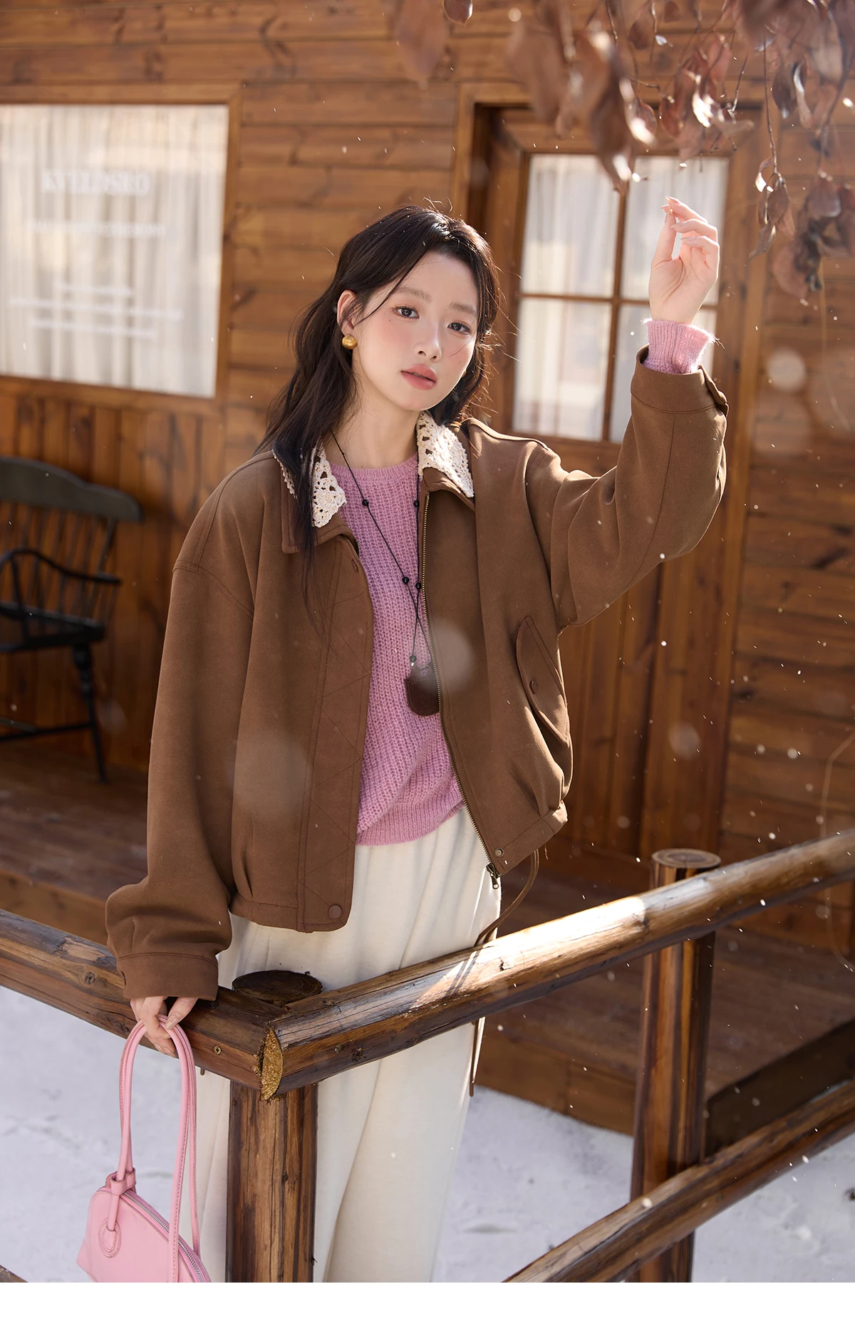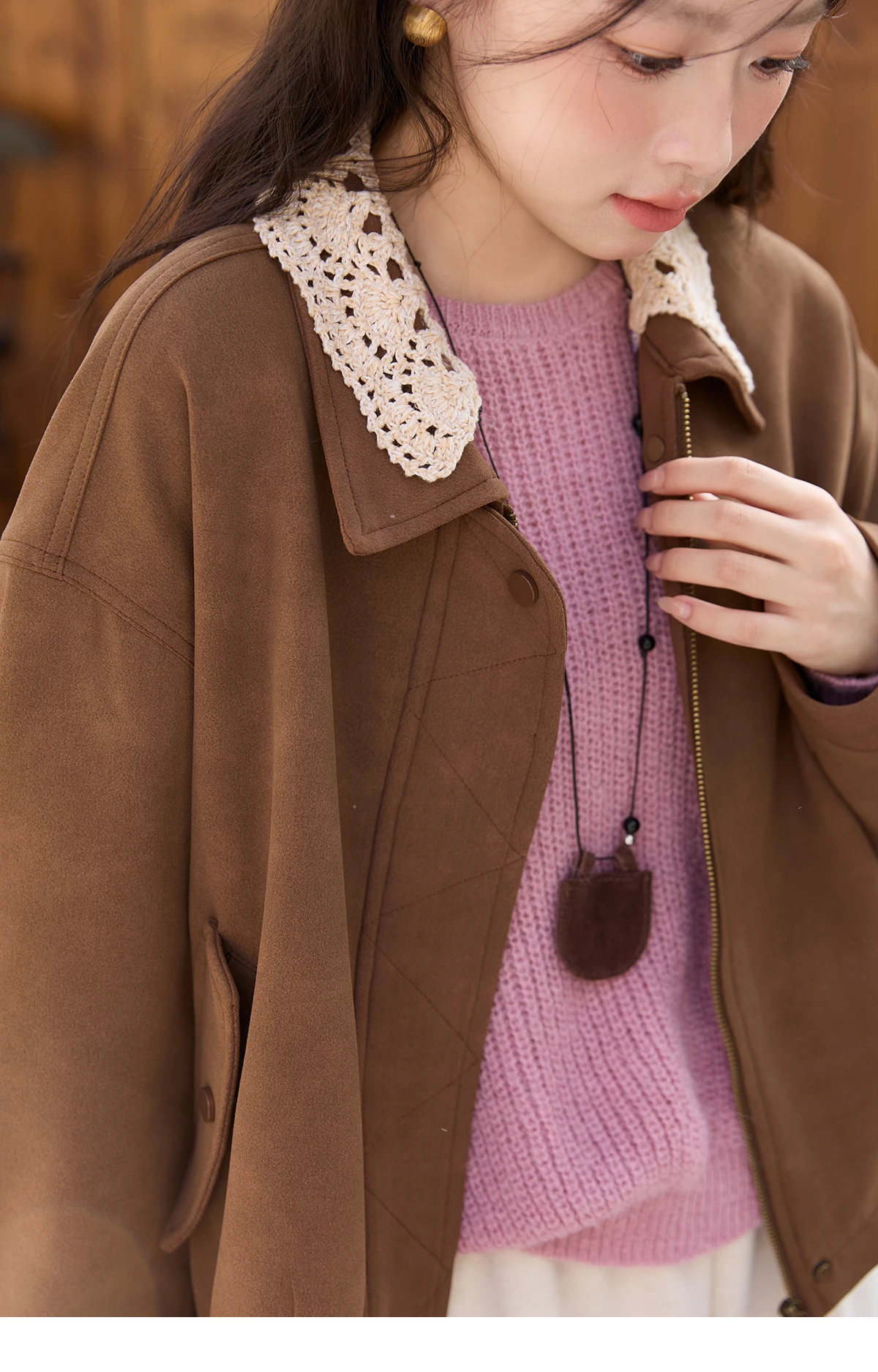 MISHOW Brown Jacket for Women 2025 Autumn Winter Retro Detachable Lace Collar Drawstring Hem Jacket Women's Clothing MXE45W0846