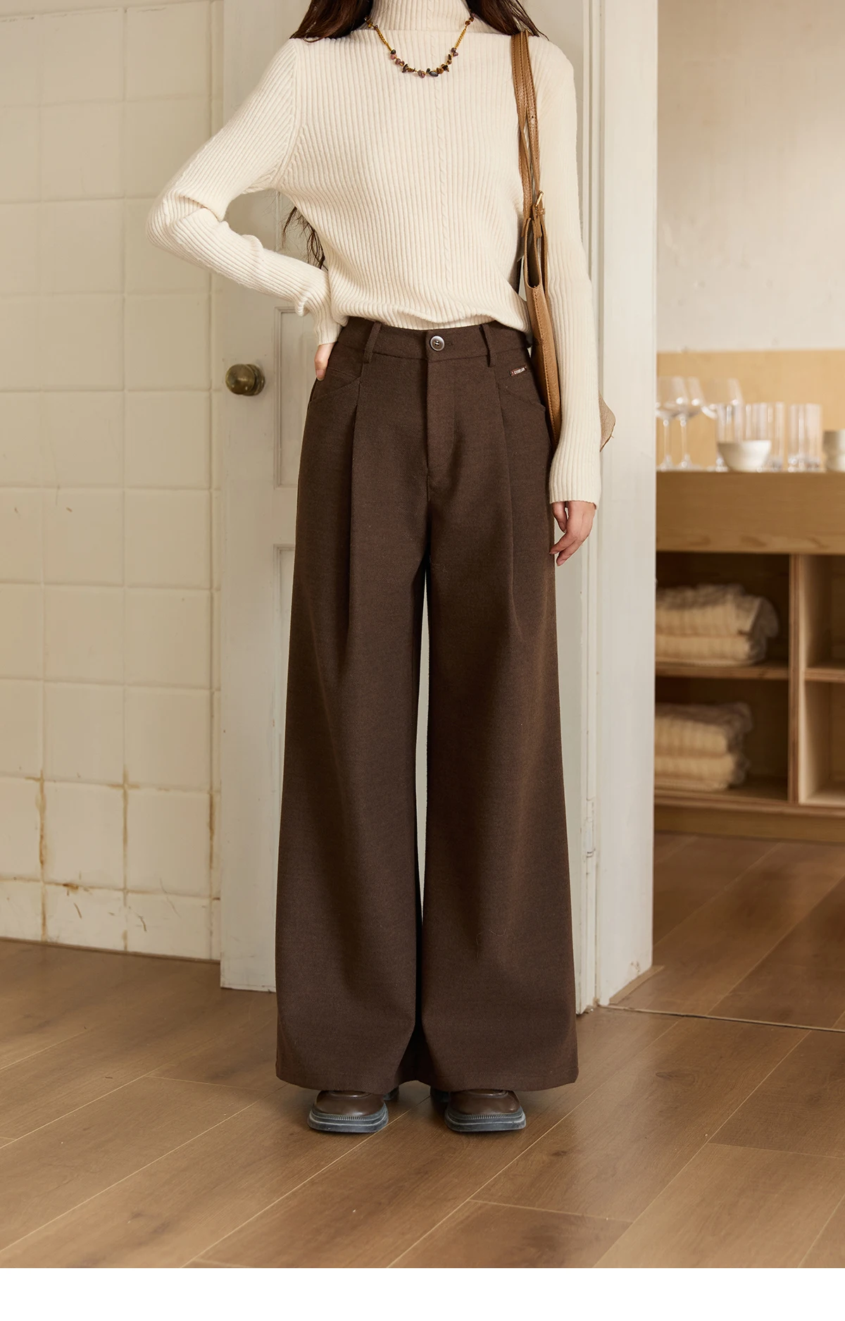 MISHOW Brown Wide-leg Pants for Women 2025 Autumn Winter New Retro High Waist Drape Trousers Commute Casual Pants MXE51K1094