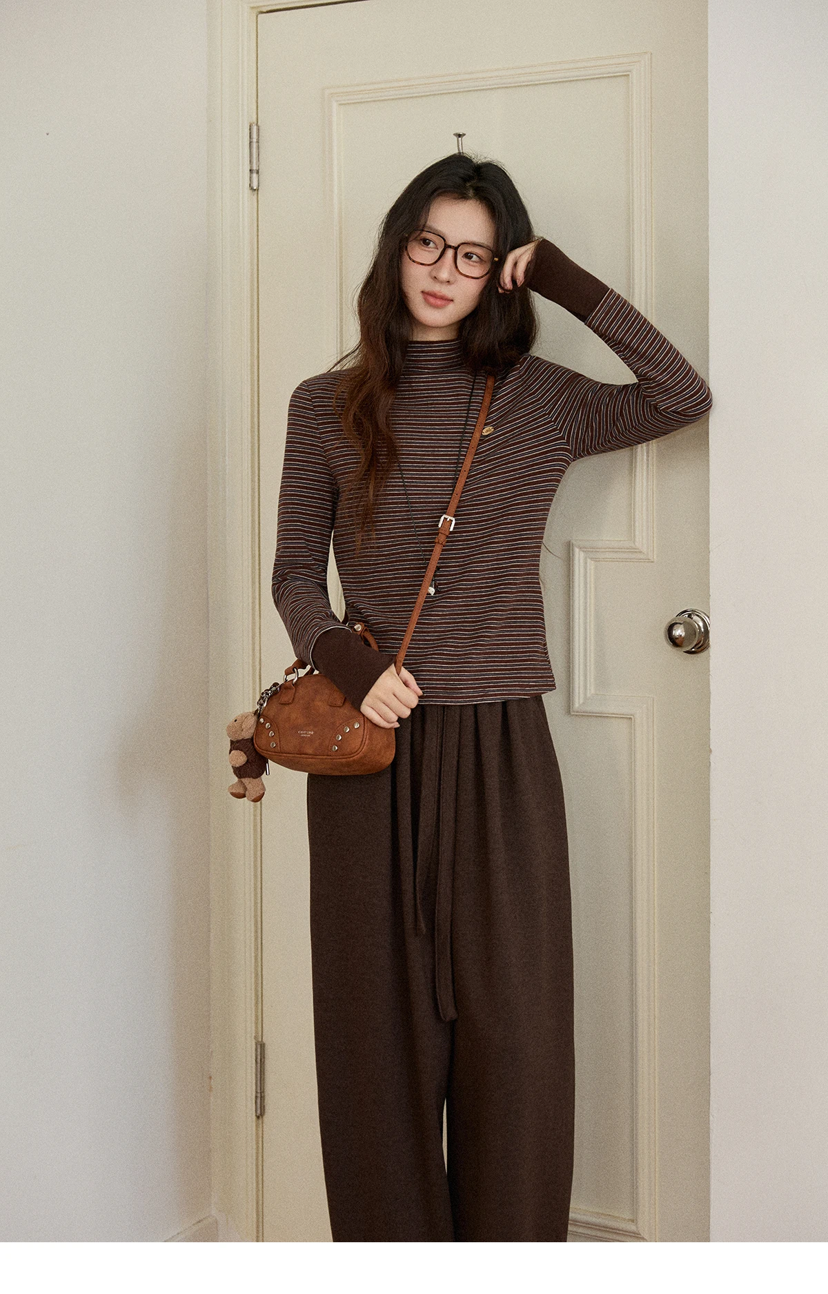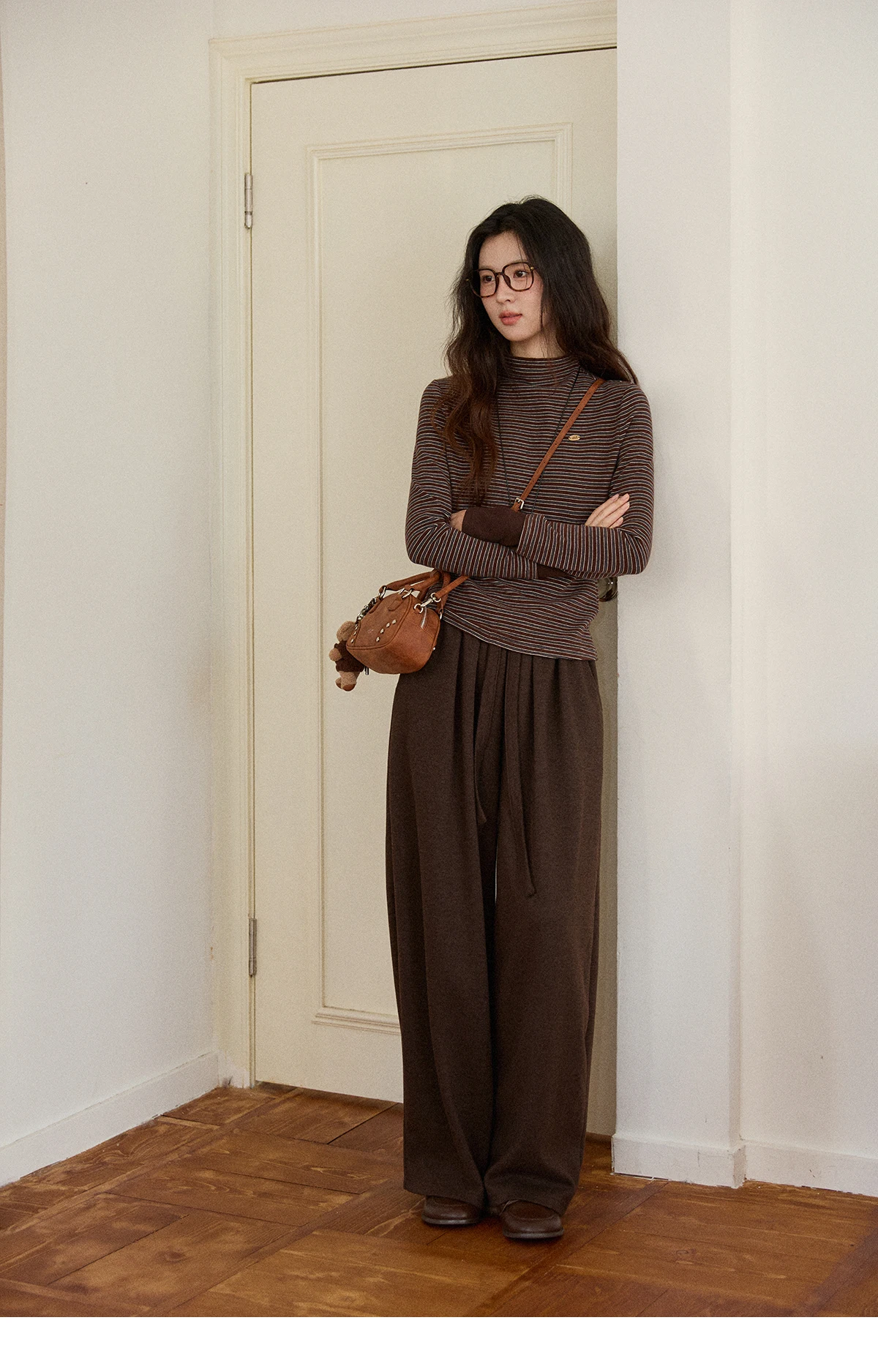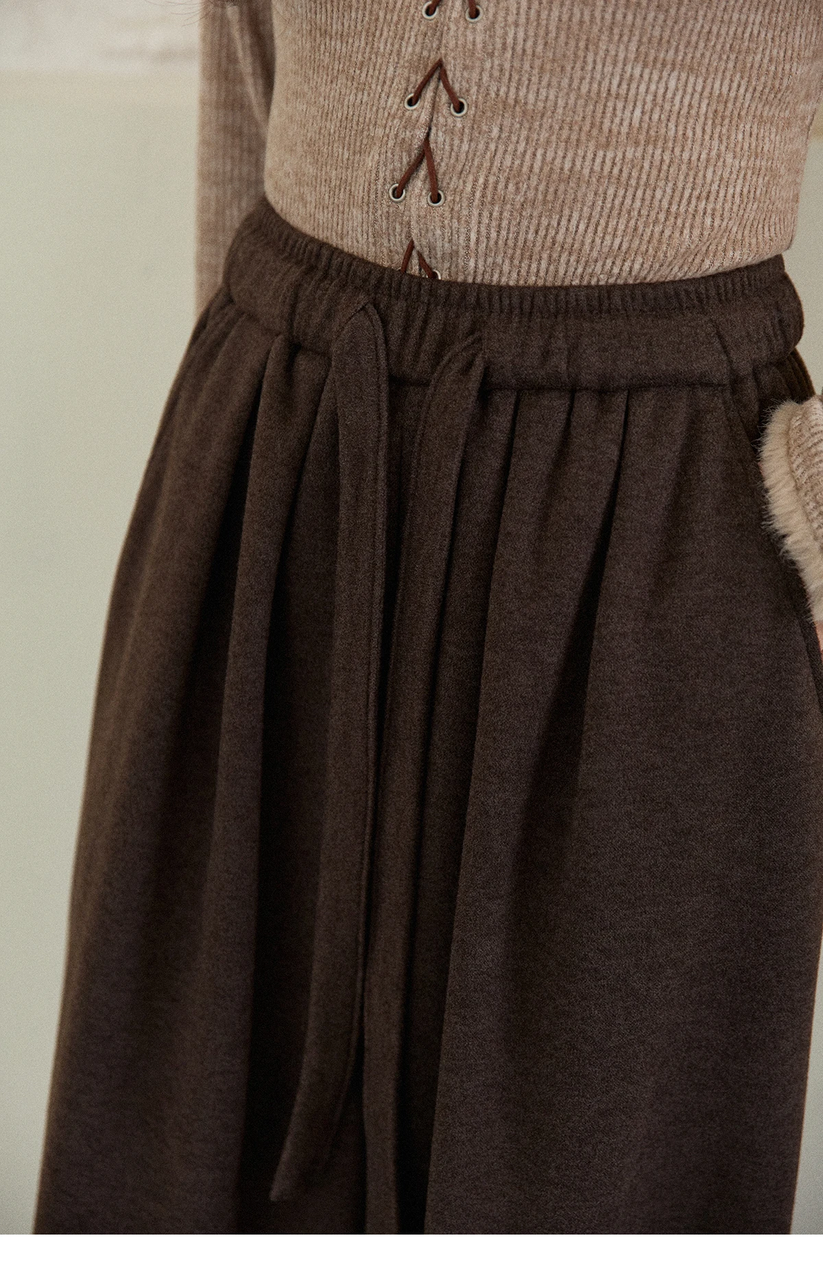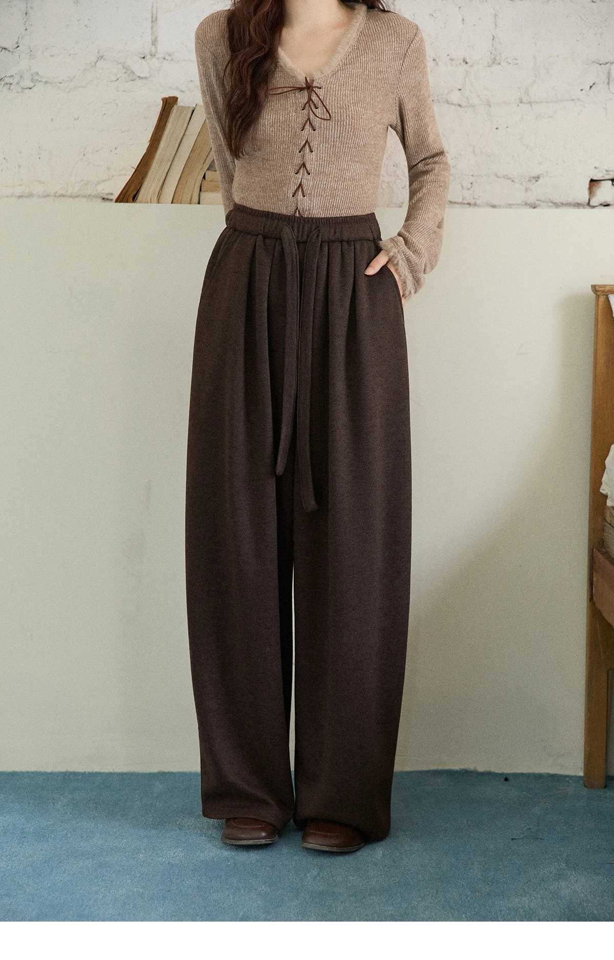 MISHOW Brown Wide-leg Pants for Women2025 Winter Thickened Warm Drawstring Waistband Retro Casual Trousers Woman MXE87K1126