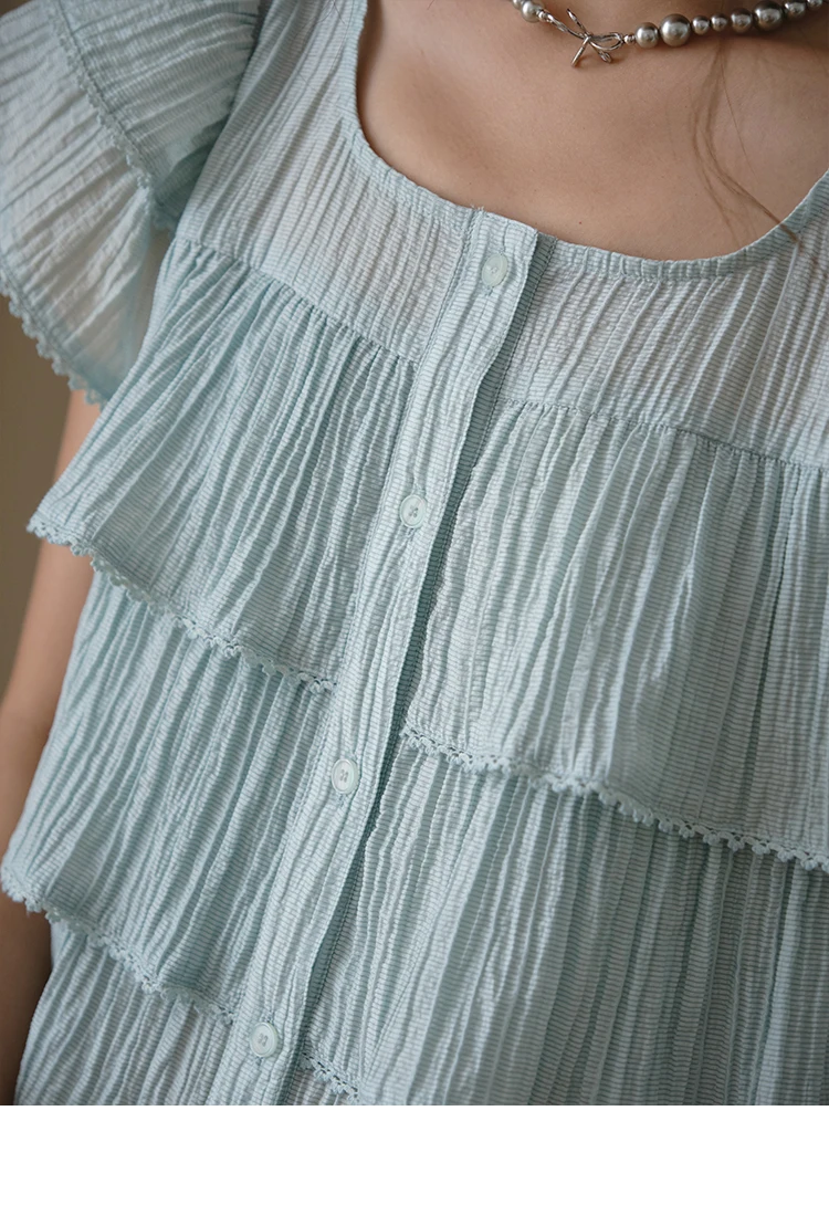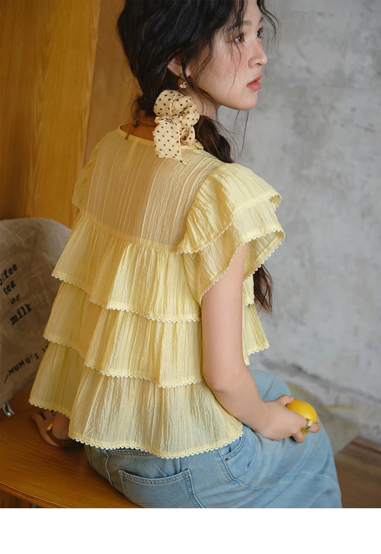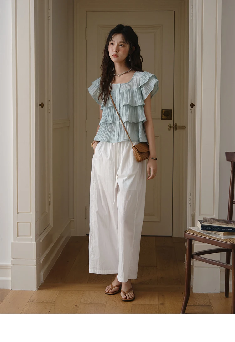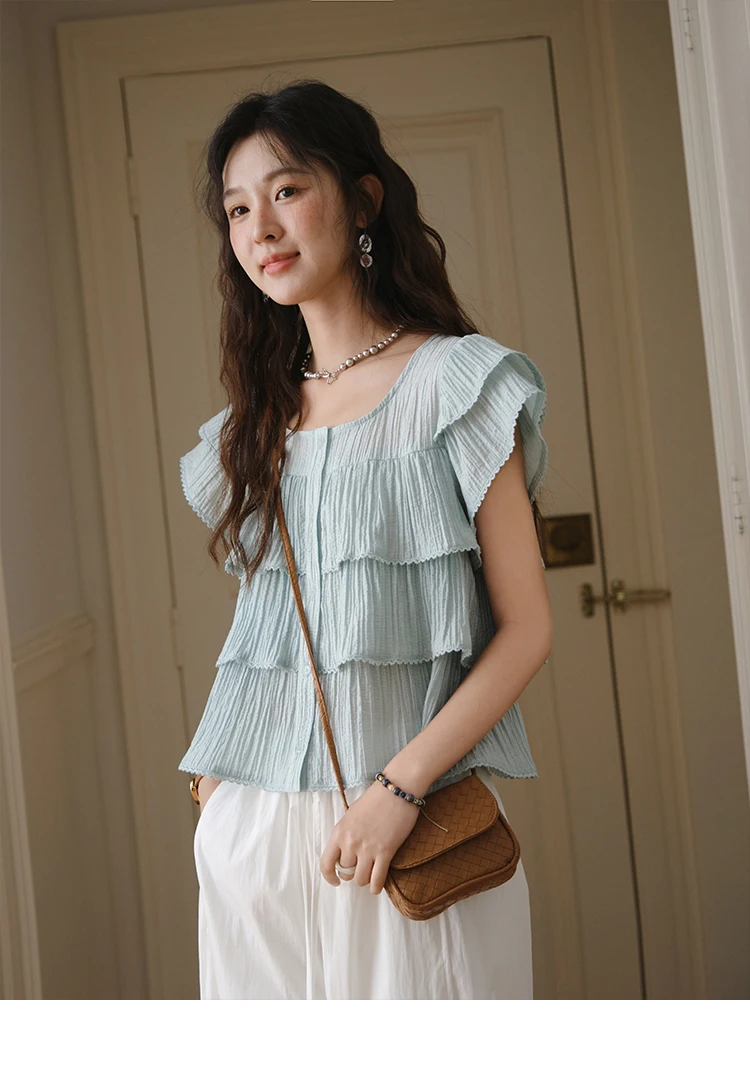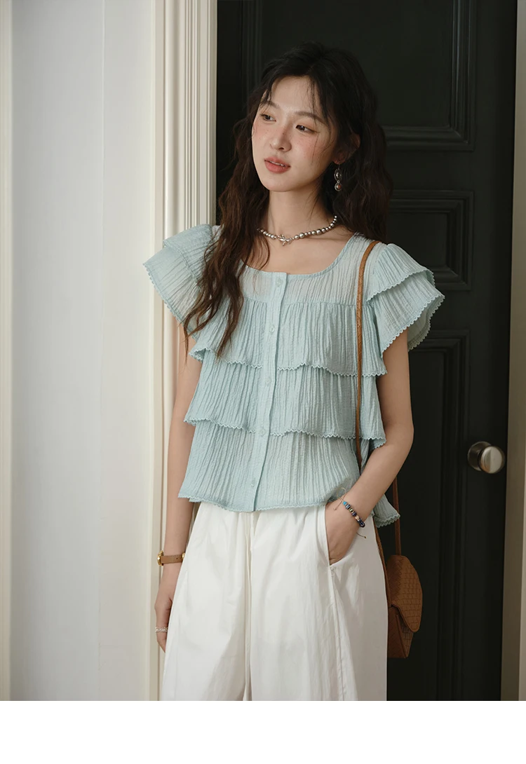 MISHOW Butterfly Sleeve Chiffon Shirt Women's 2025 Summer New Women's Clothing Retro Square Neck Button Casual Shirt MXD30X1488