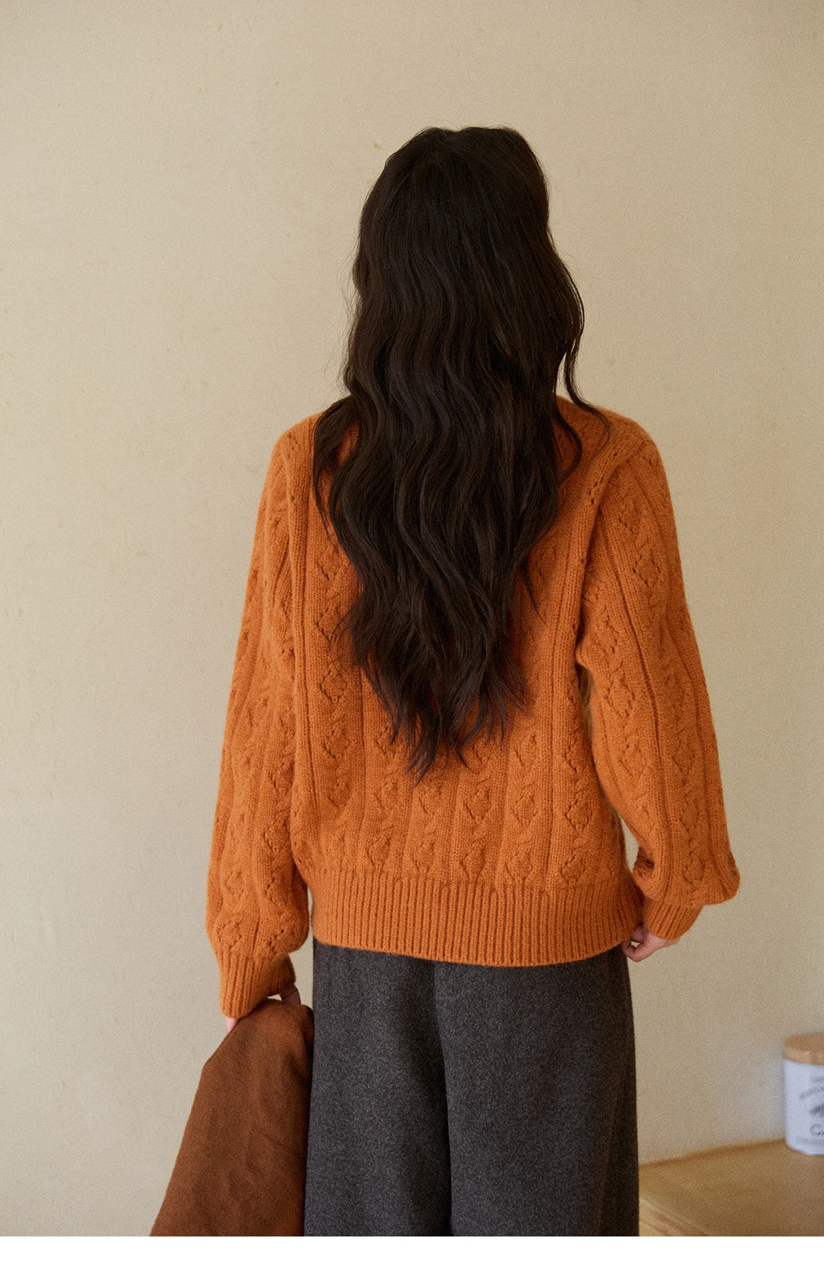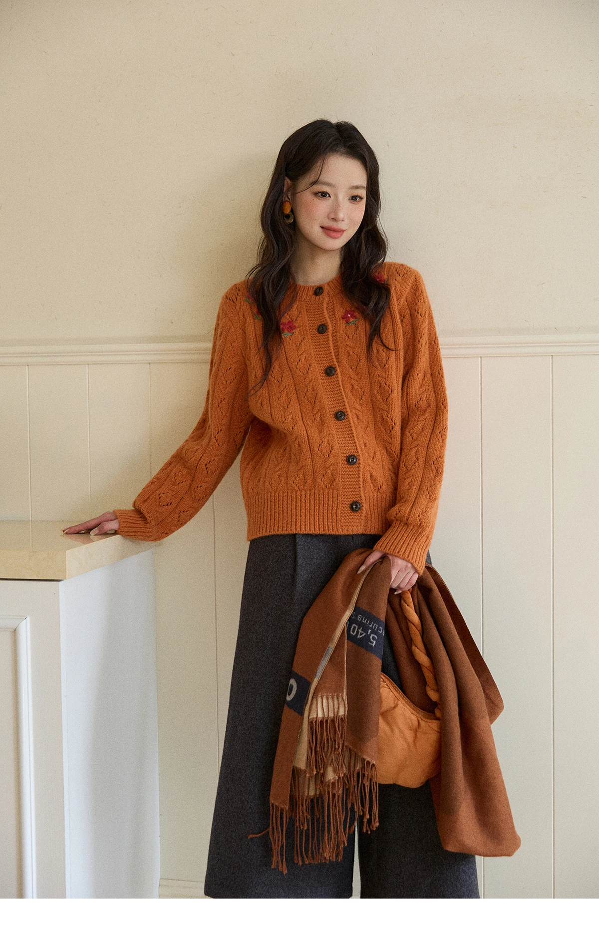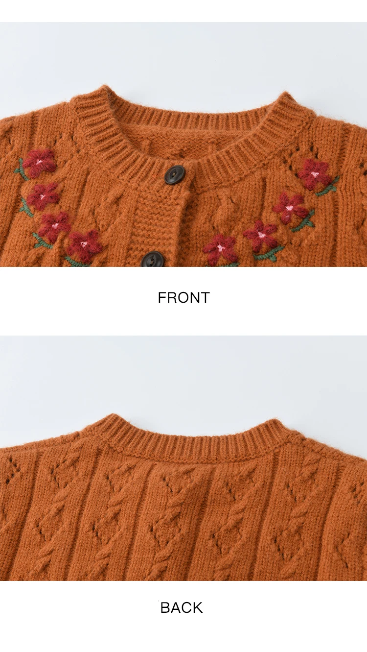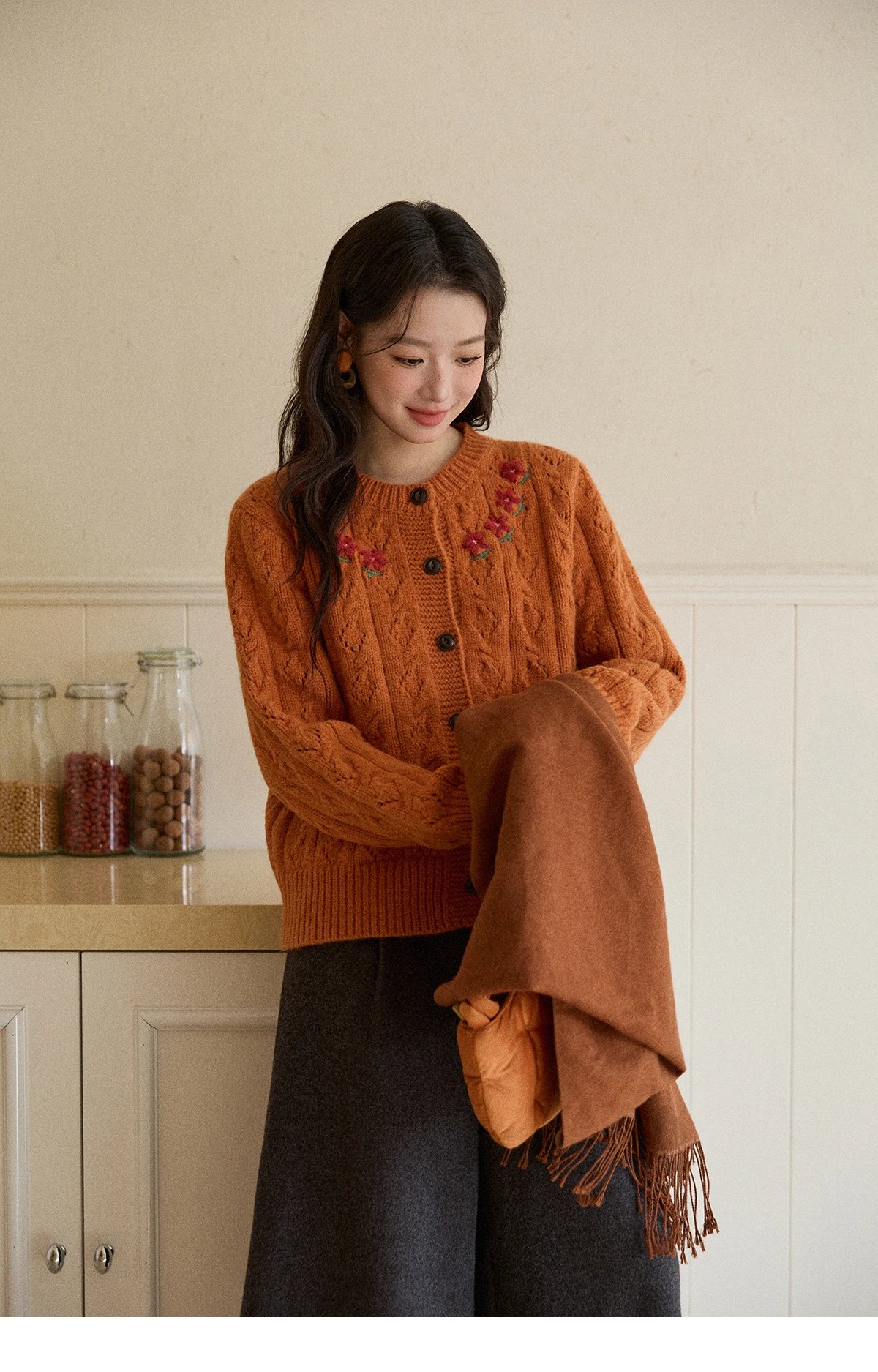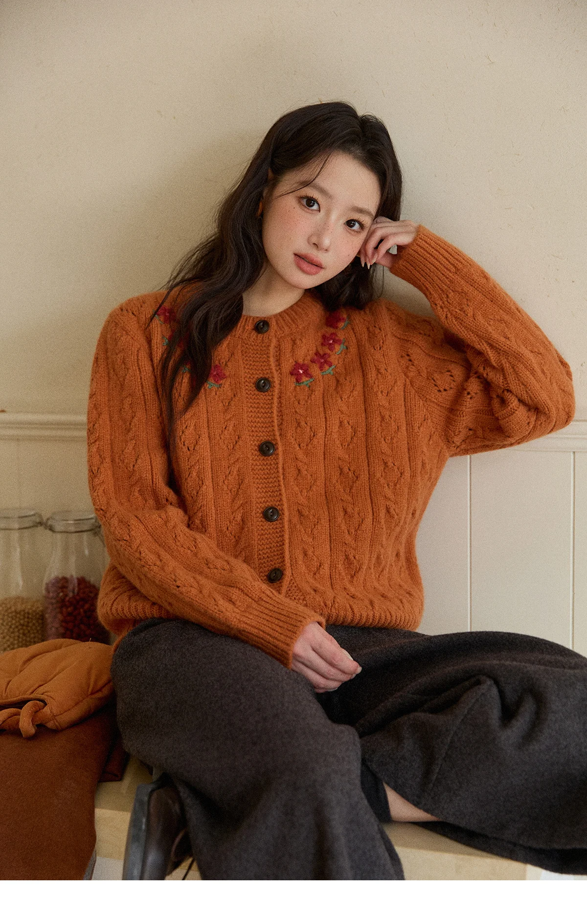 MISHOW Cardigan Woman 2025 Winter Fashion Orange Cable Knit Cardigan Floral Embroidery Retro O-neck Thick Knit Top MXE86Z2737