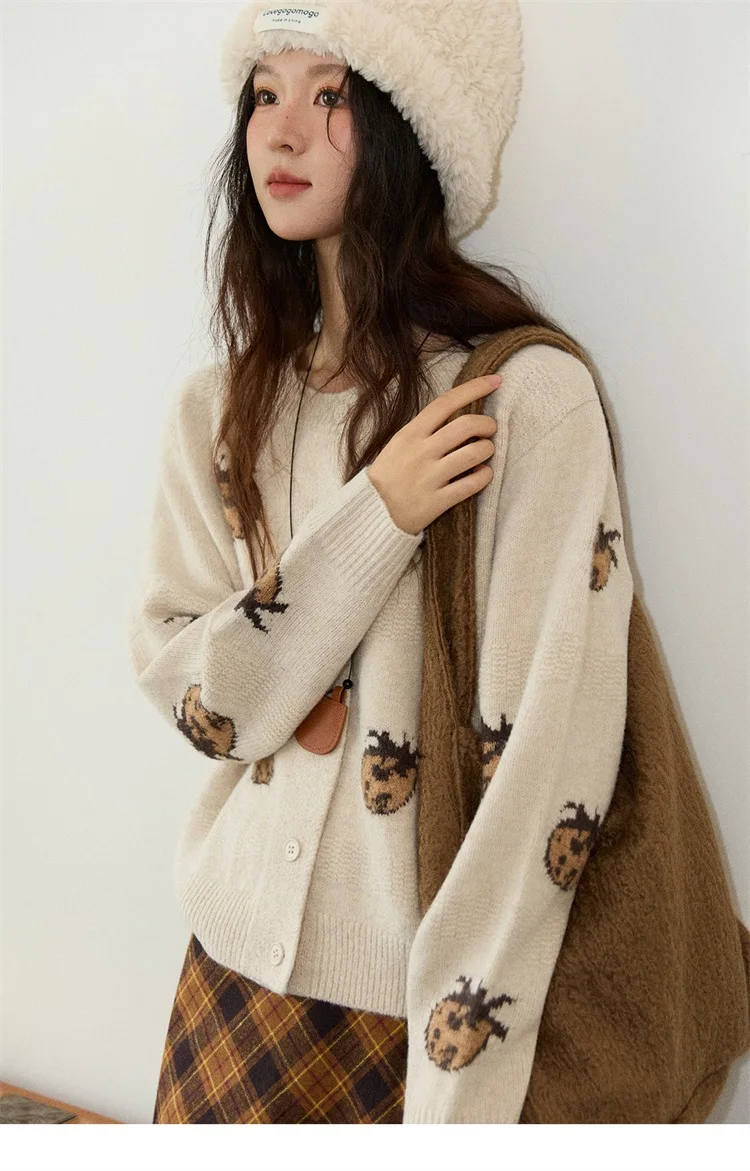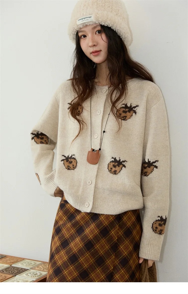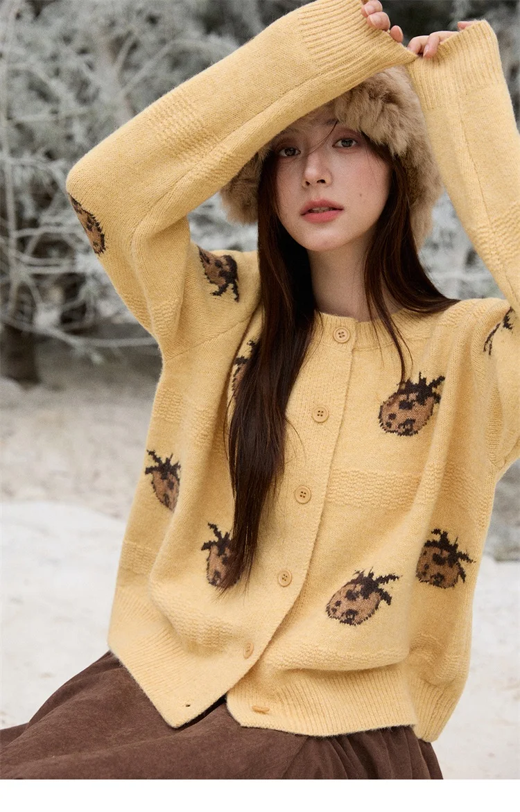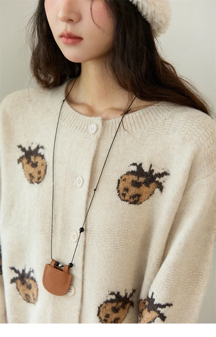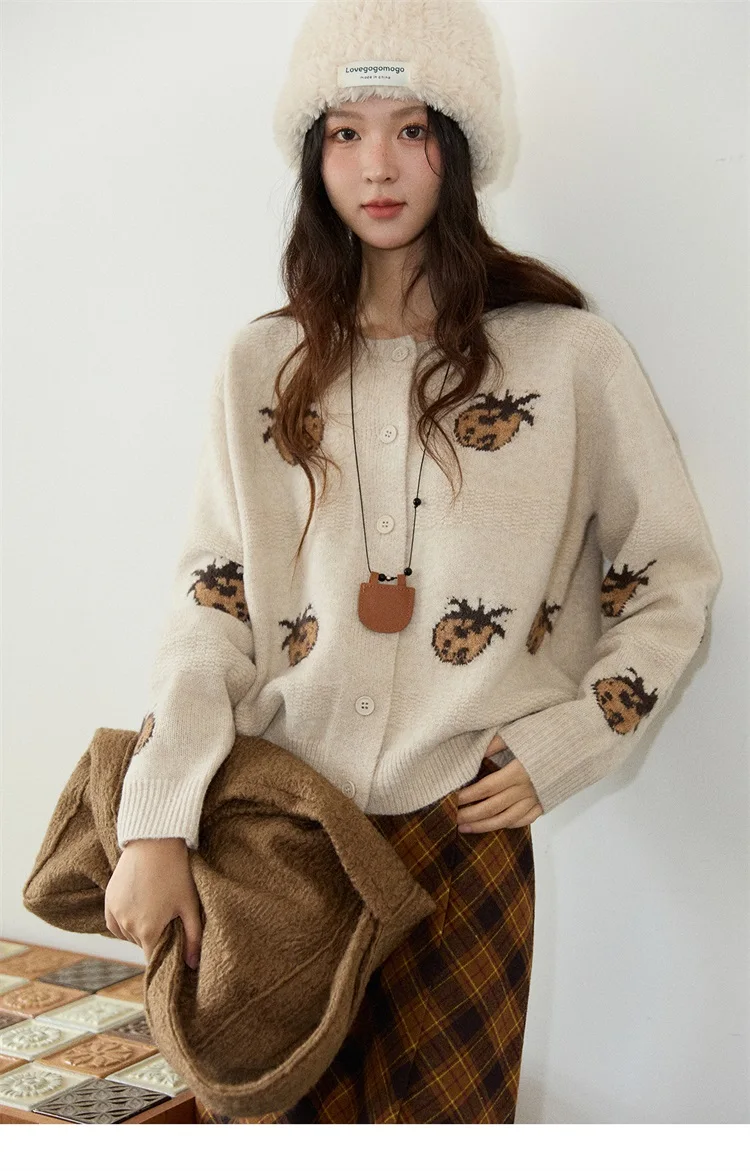 MISHOW Cardigan Women 2025 Autumn Winter Fashion Fuuny Pineapple Jacquard Round Neck Single-breasted Sweater Woman MXE87Z2752