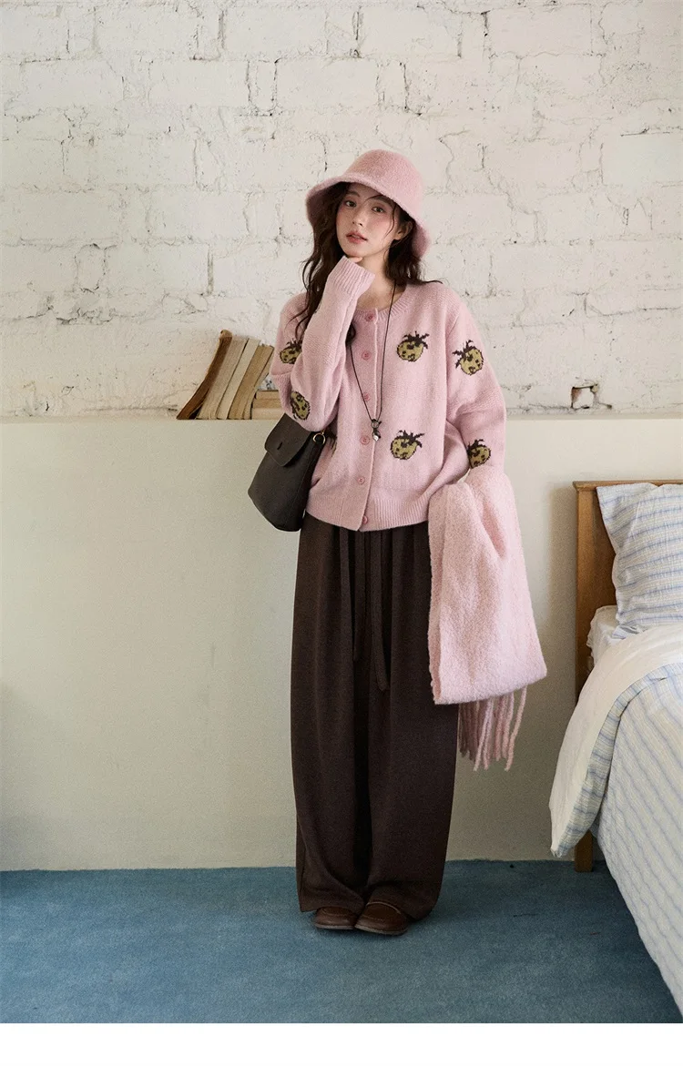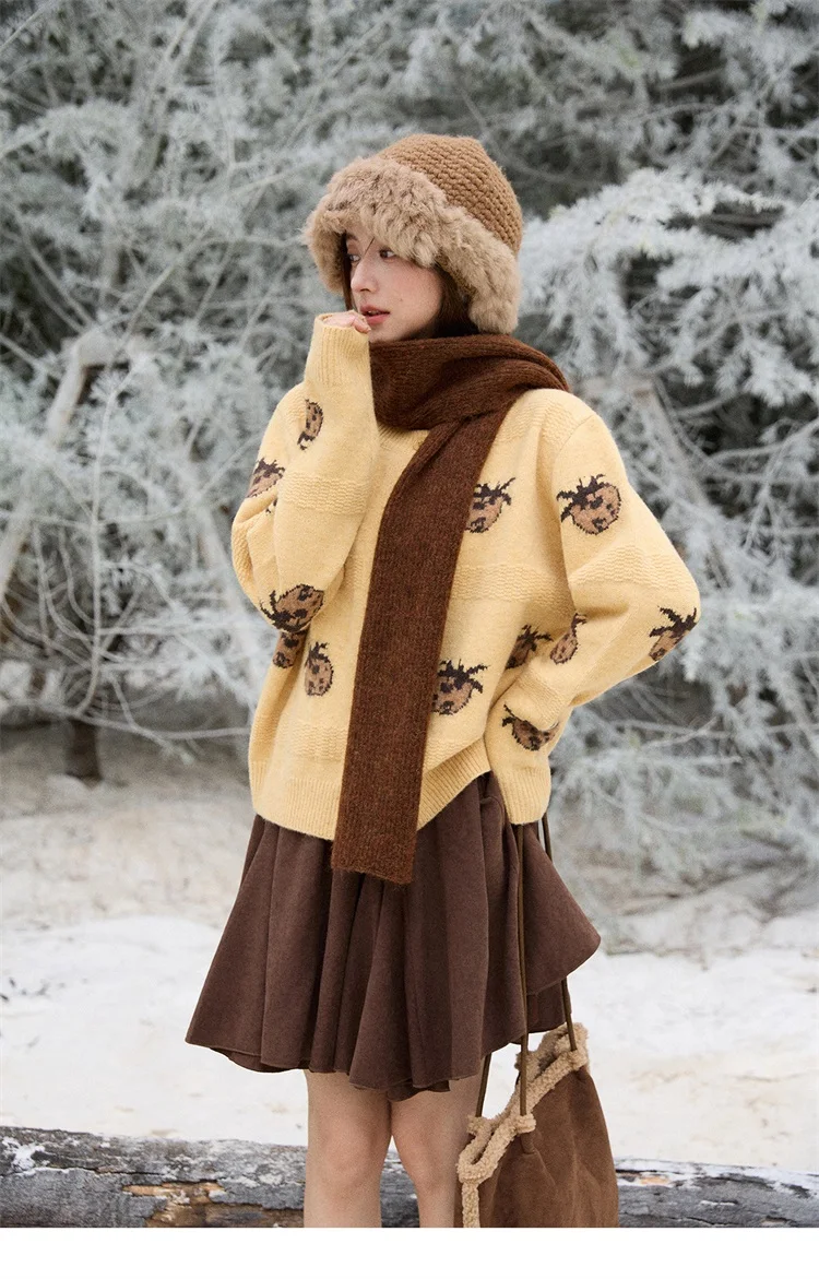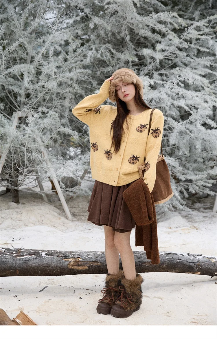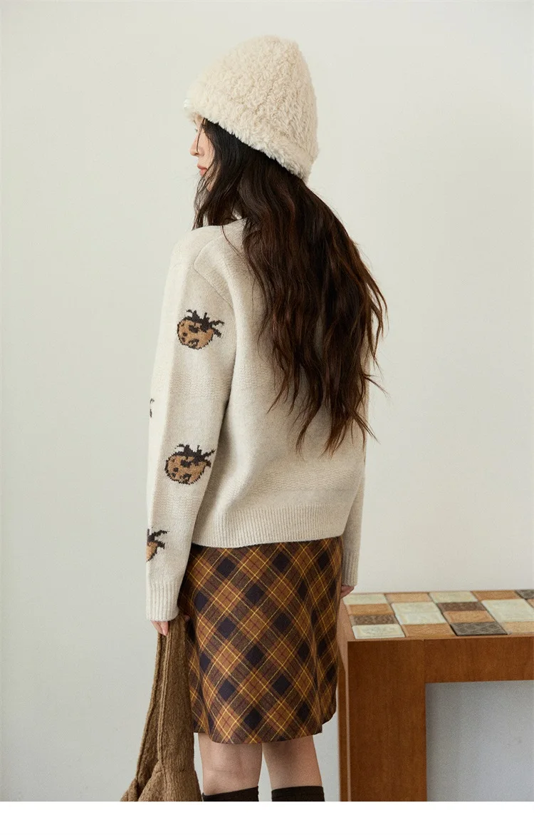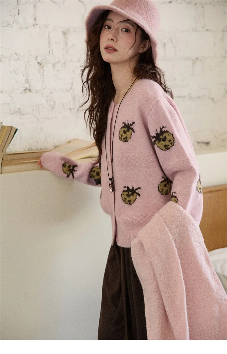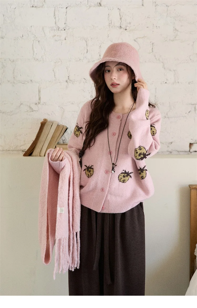 MISHOW Cardigan Women 2025 Autumn Winter Fashion Fuuny Pineapple Jacquard Round Neck Single-breasted Sweater Woman MXE87Z2752