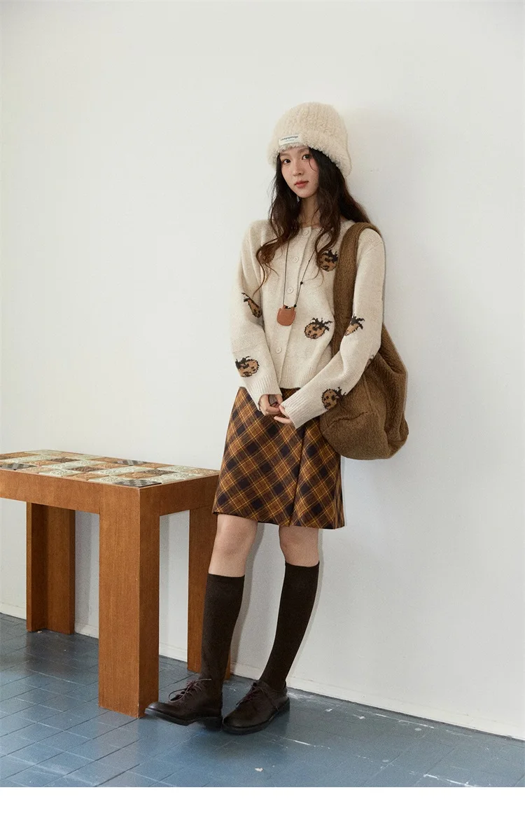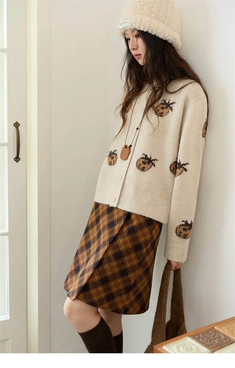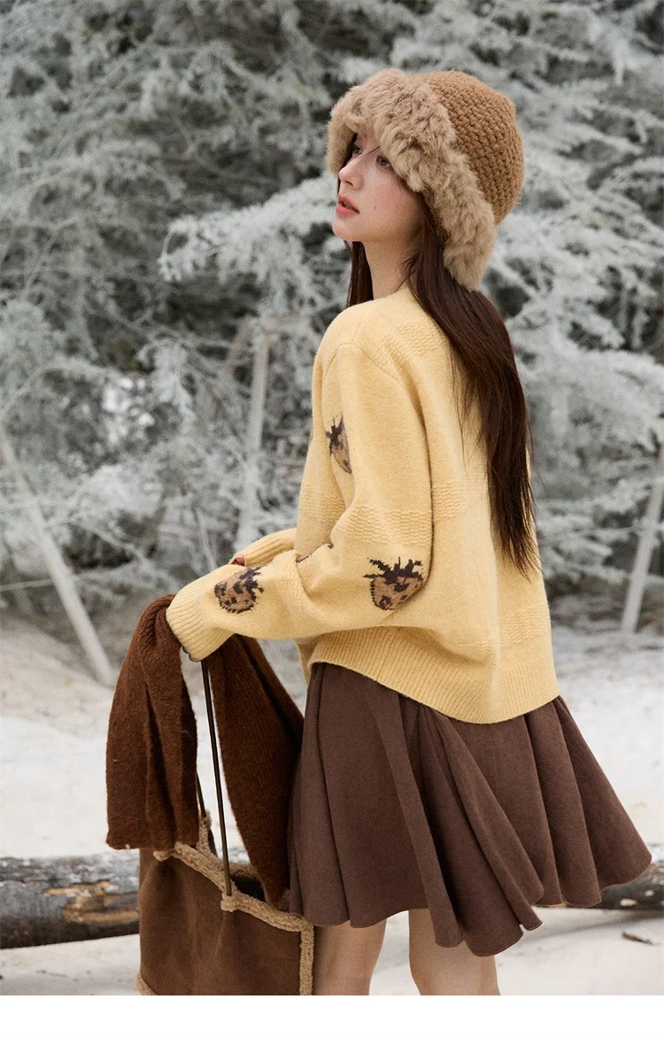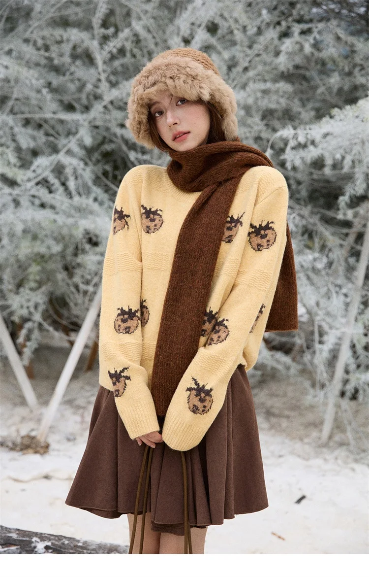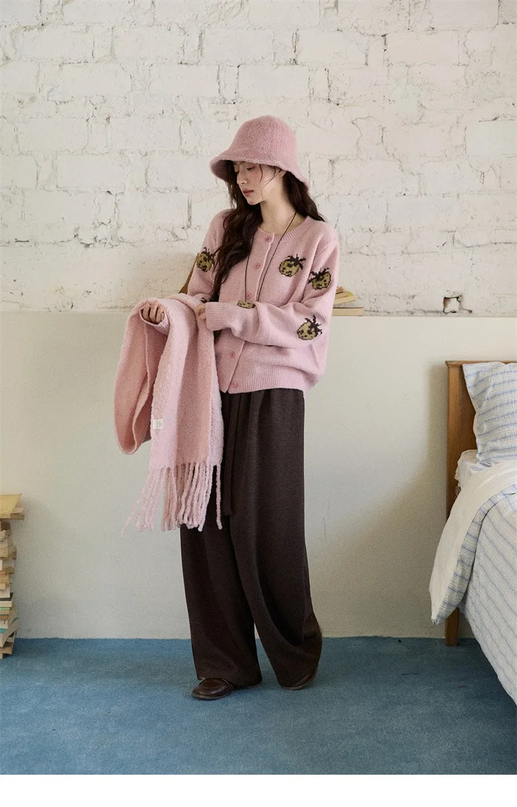 MISHOW Cardigan Women 2025 Autumn Winter Fashion Fuuny Pineapple Jacquard Round Neck Single-breasted Sweater Woman MXE87Z2752