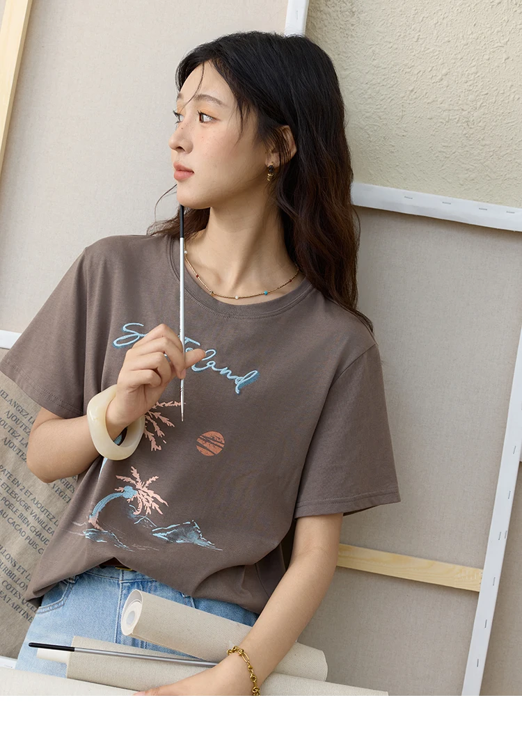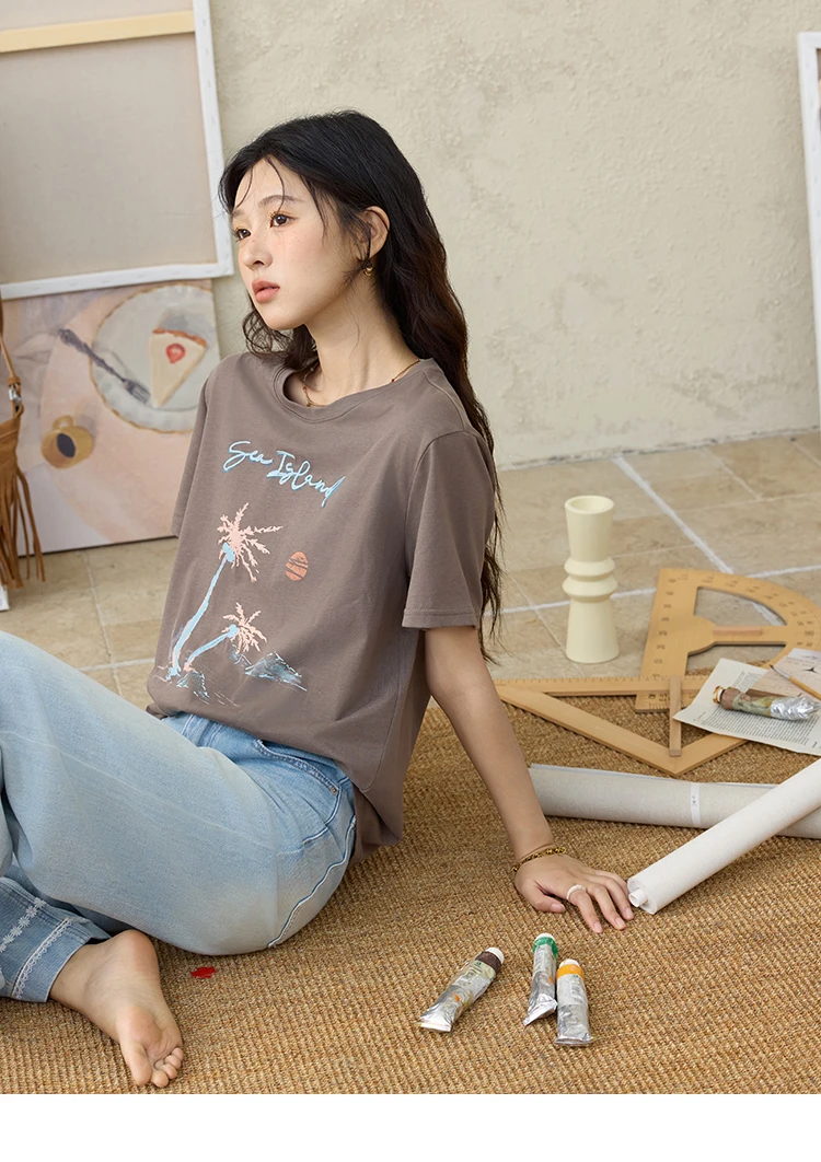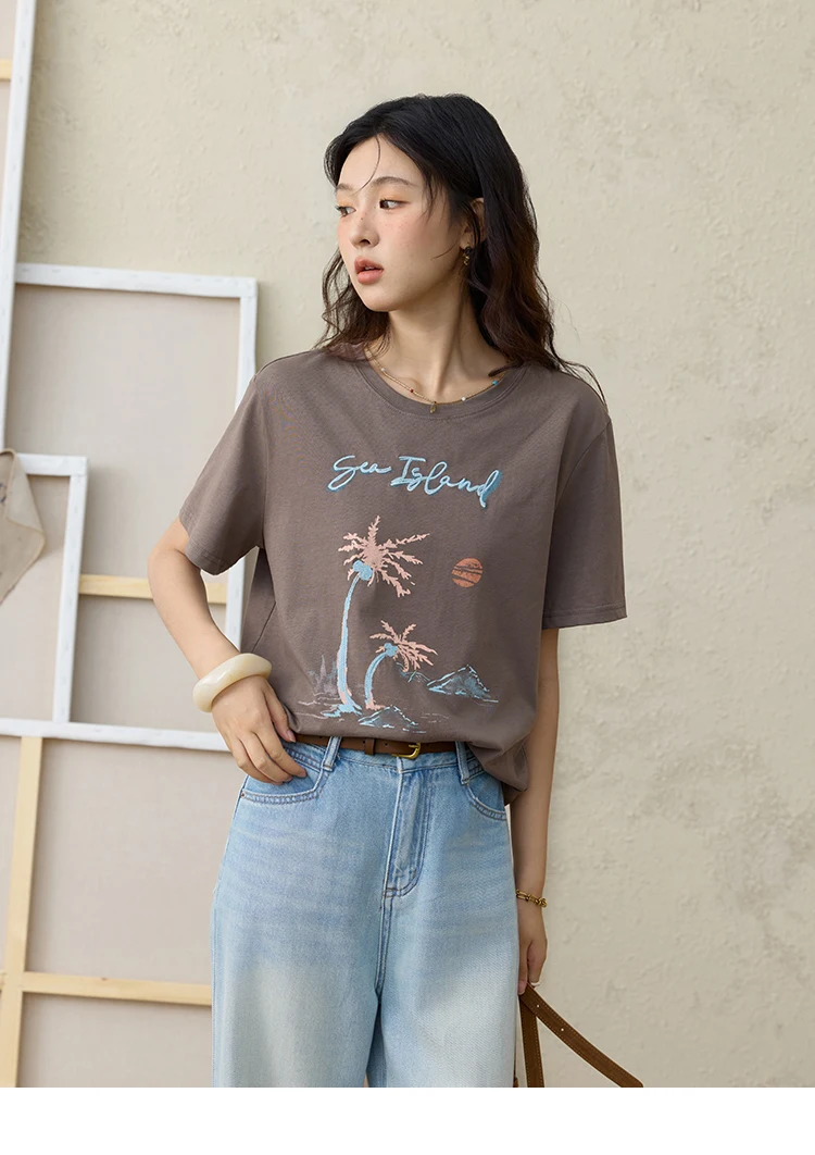 MISHOW Casual Print Shirts Women Summer New 2025 Short Sleeve Round Neck Loose Pure Cotton T-shirt Female Fashion MXE31T0533