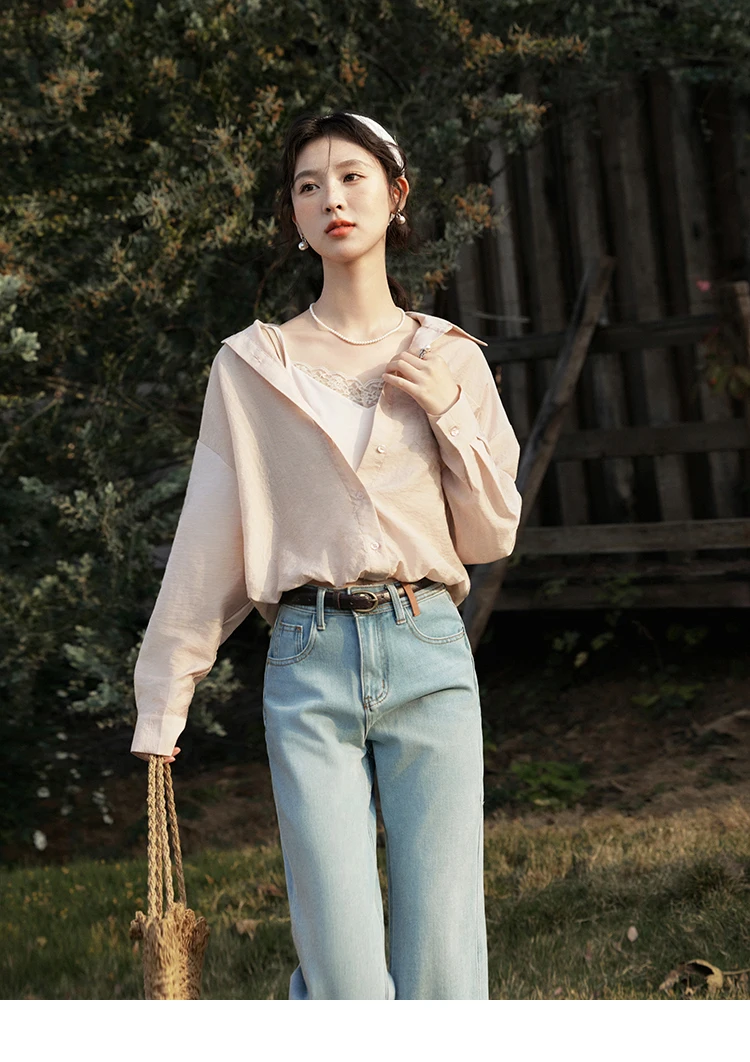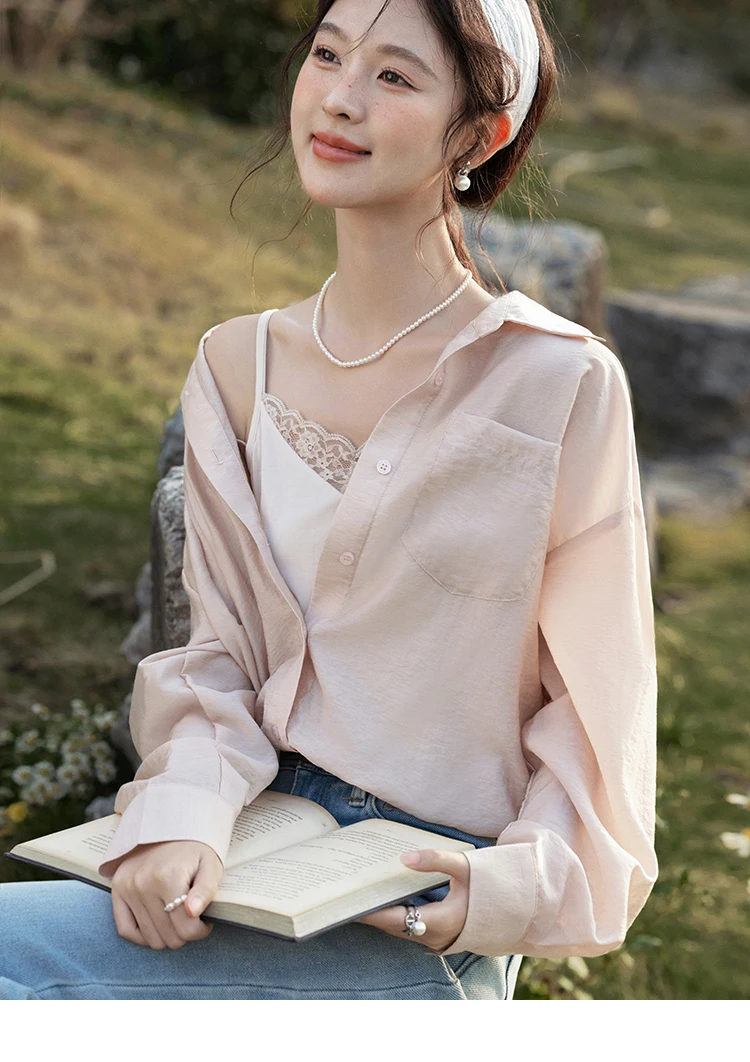 MISHOW Casual Spring Shirt Women New 2025 Long Sleeve Turn-down Collar Fake Two-piece Blouses Lady Fashion Loose Tops MXE16C0777