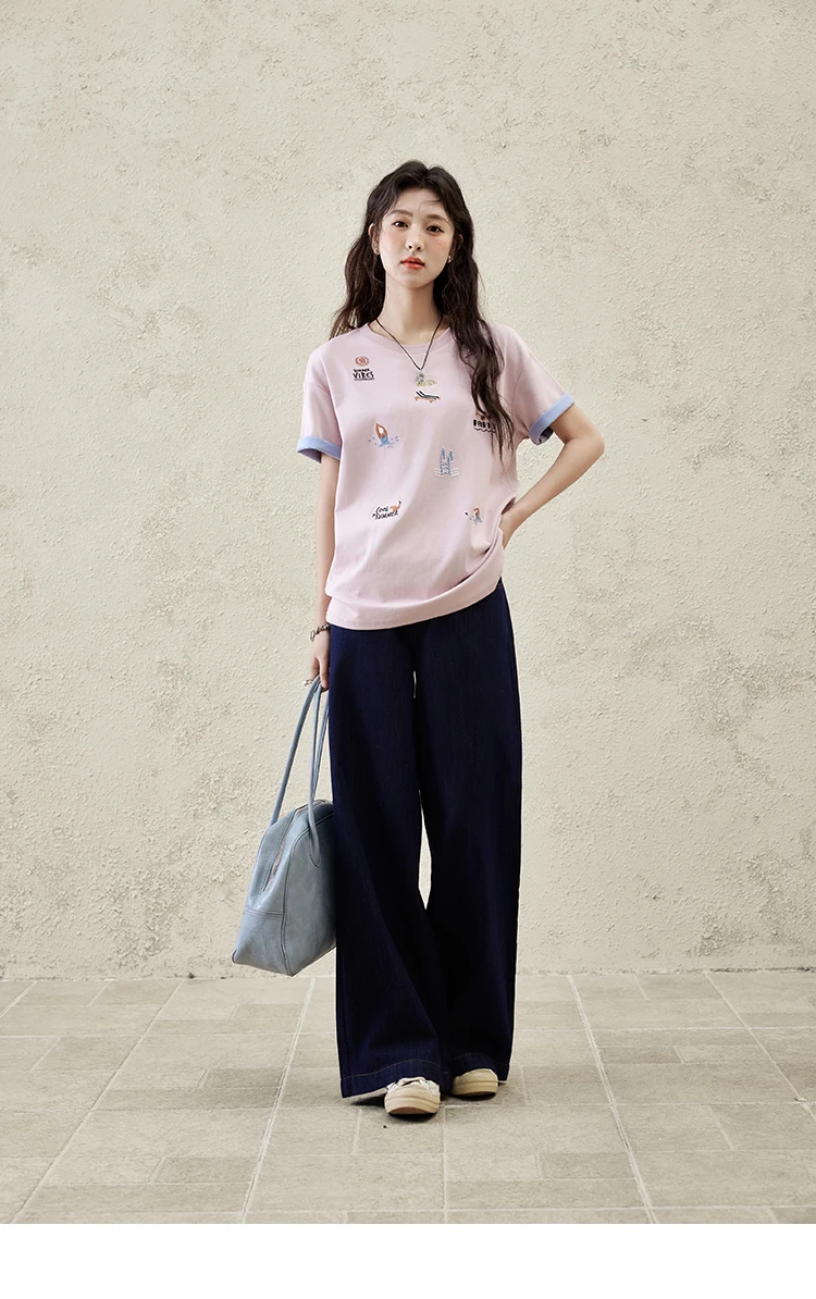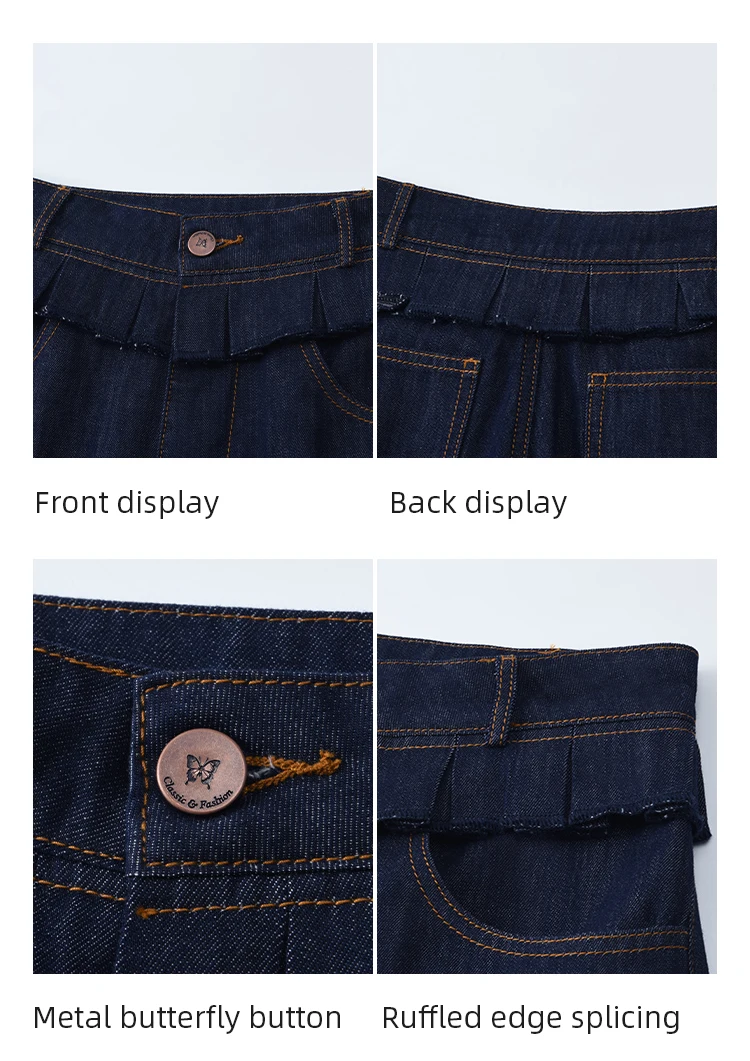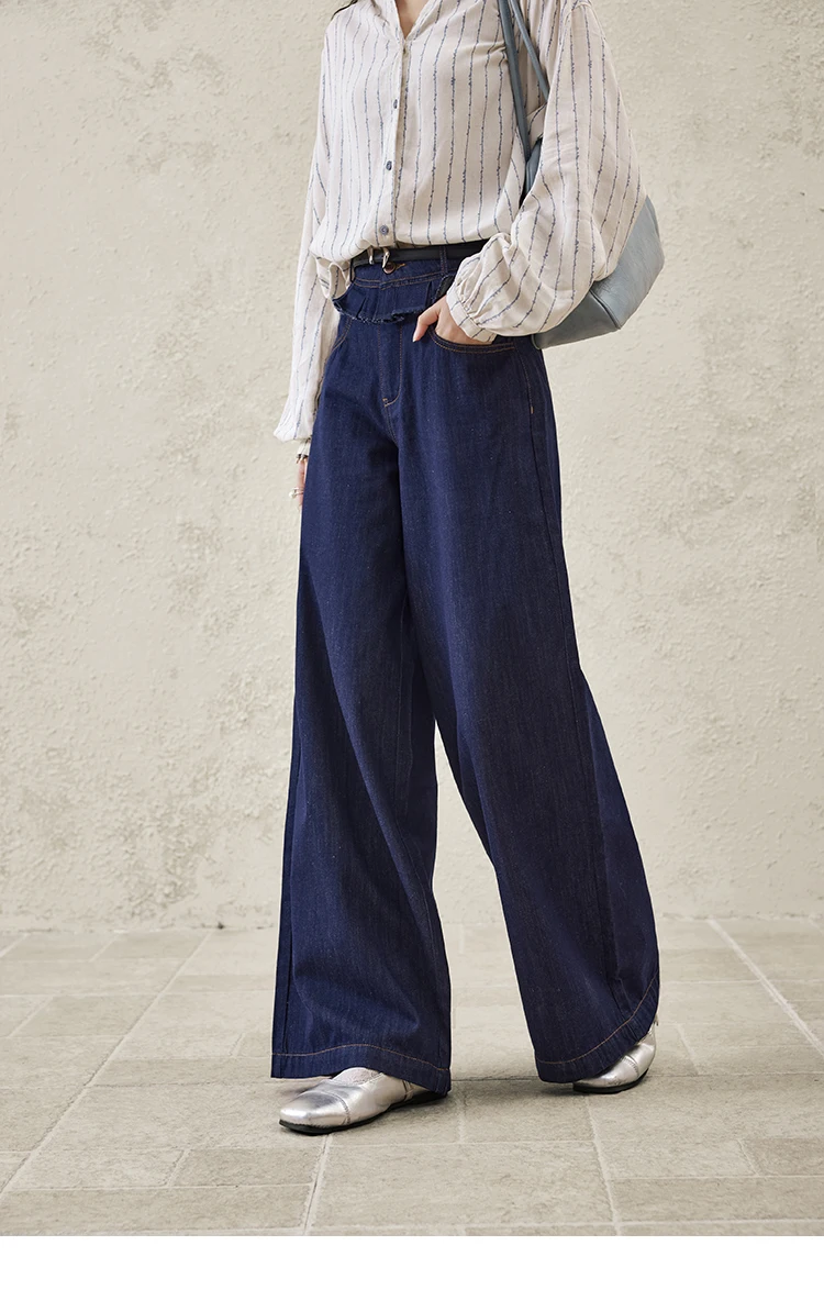 MISHOW Casual Spring Summer Jeans for Women 2025 Stitching Ruffle High Waist Jeans Female New Fashion Wide Leg Pants MXE16K0907