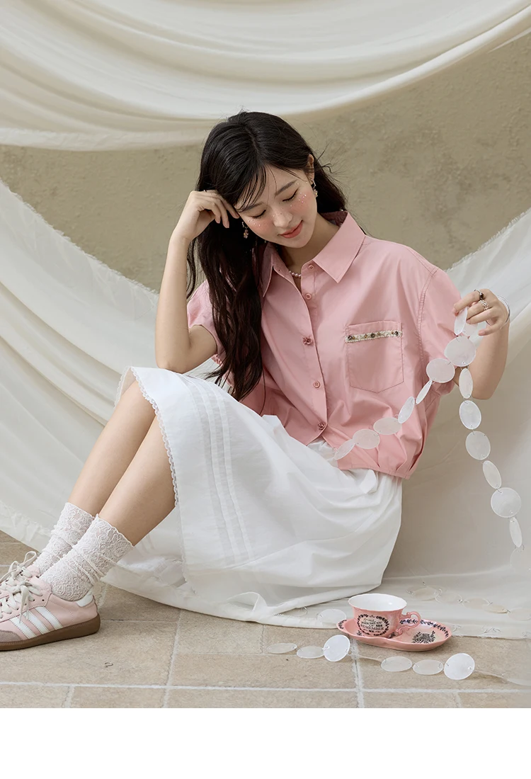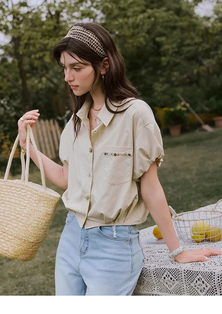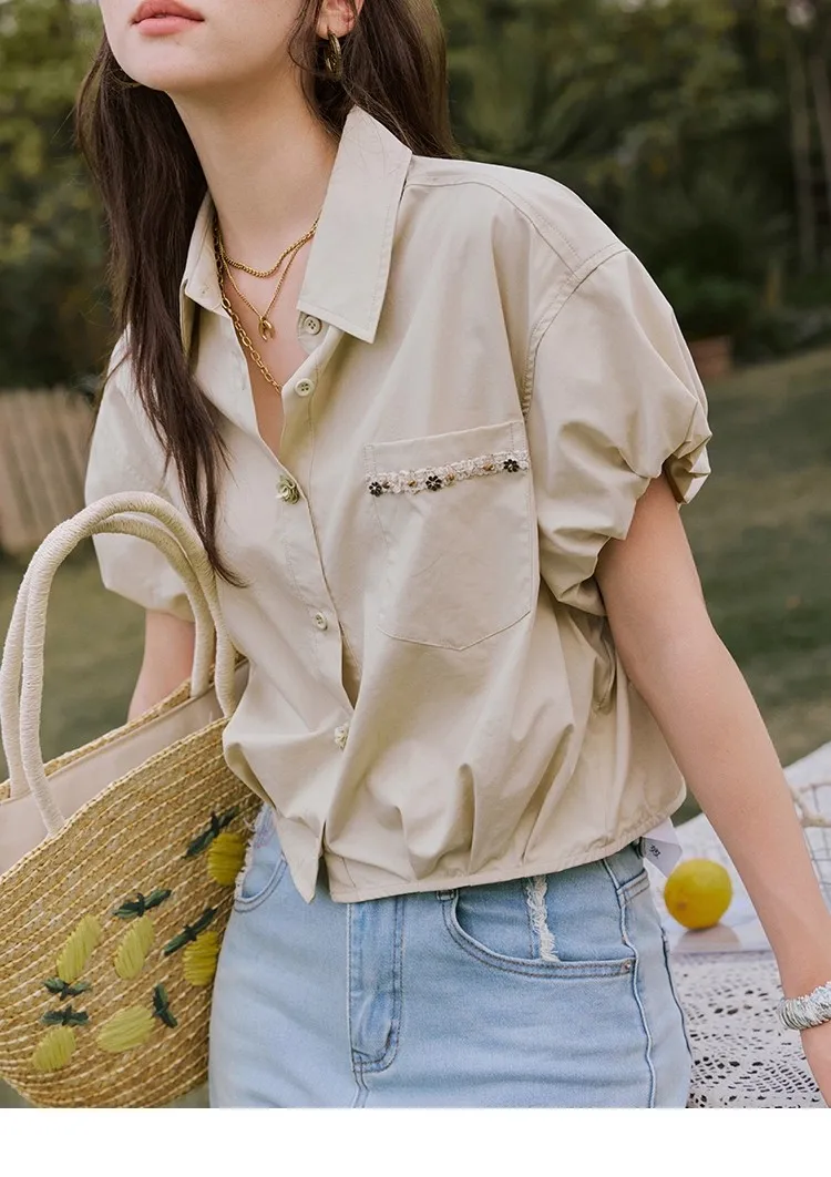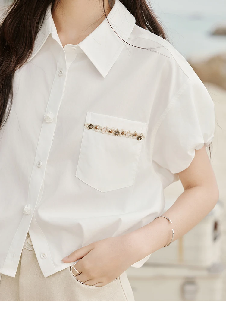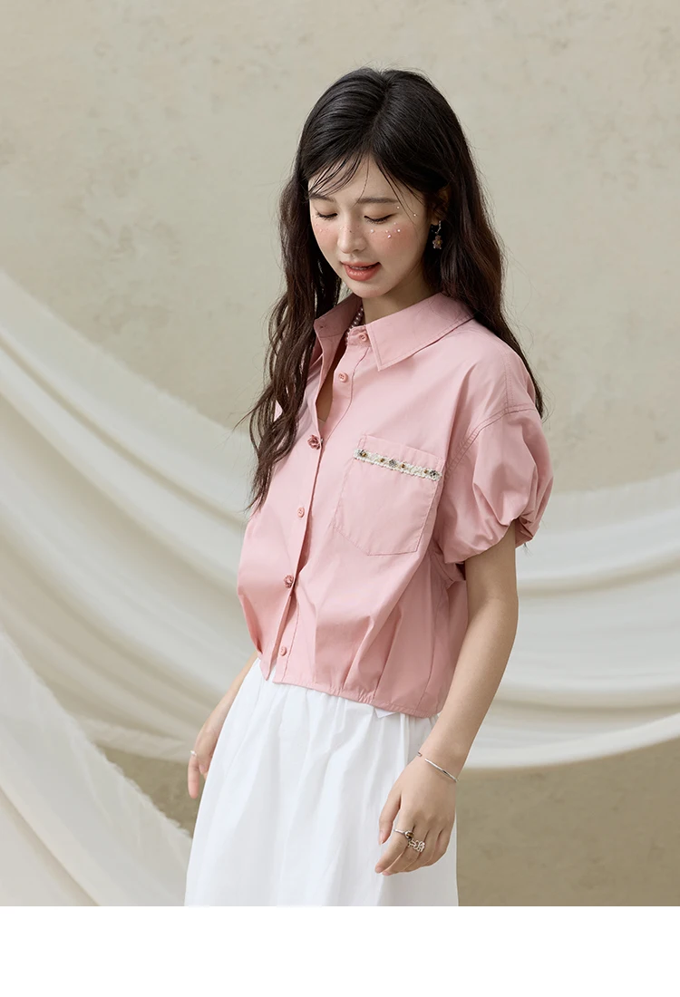 MISHOW Casual Summer Blouses Women 2025 New Short Puff Sleeve Turn Down Collar Shirt Female Fashion Shell Ribbon Tops MXE33C0773