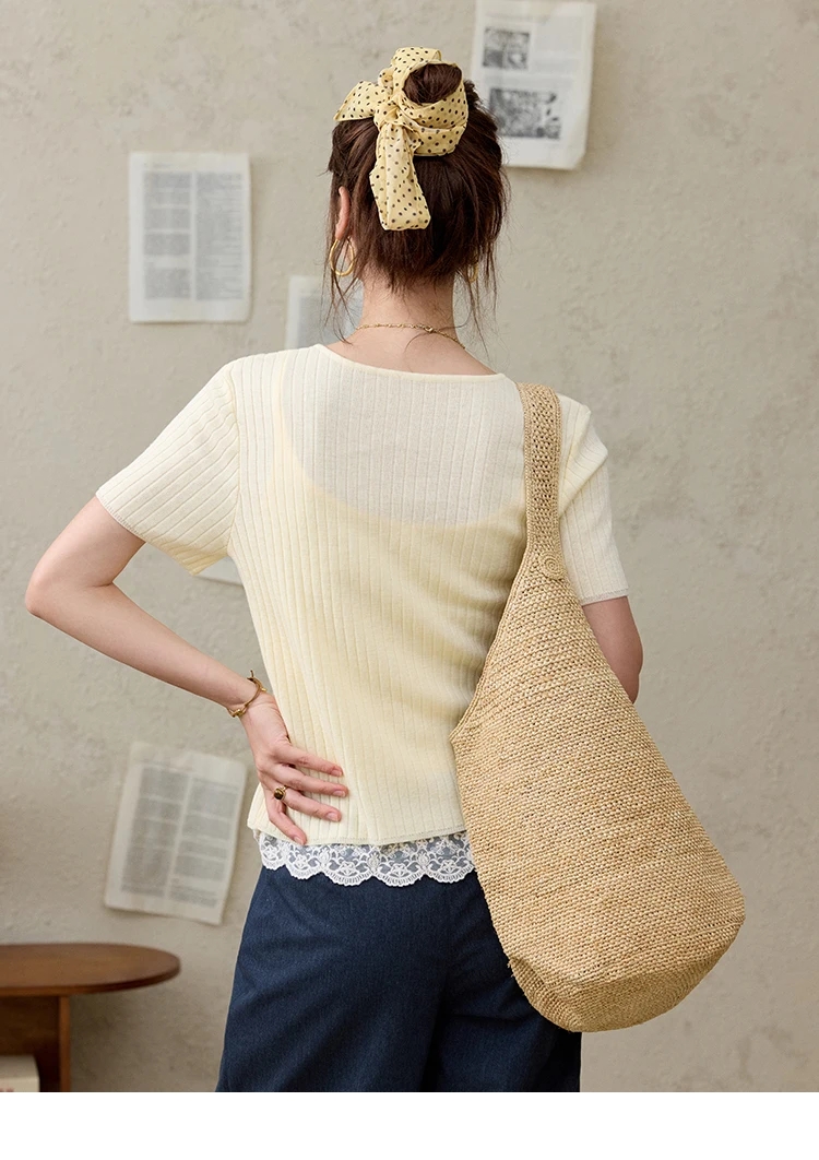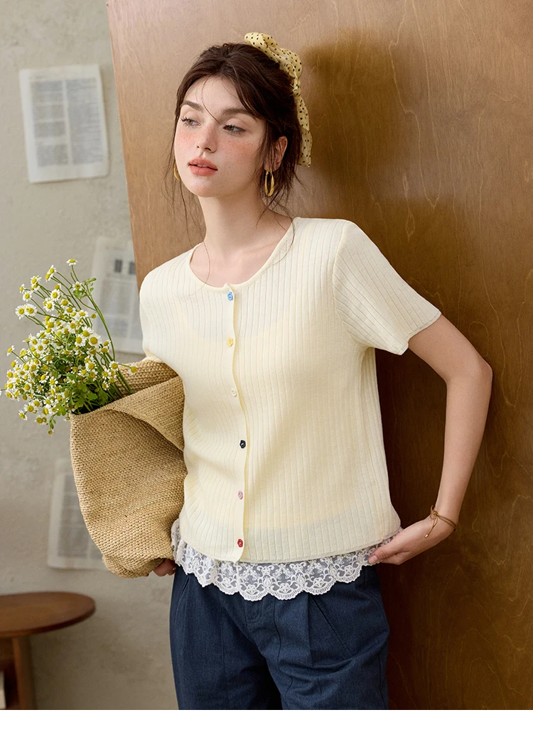 MISHOW Casual Summer Cardigan Women 2025 Short Sleeve Round Neck Solid Thin Knitted Pullovers Female Slimming Tops MXE34Z1268