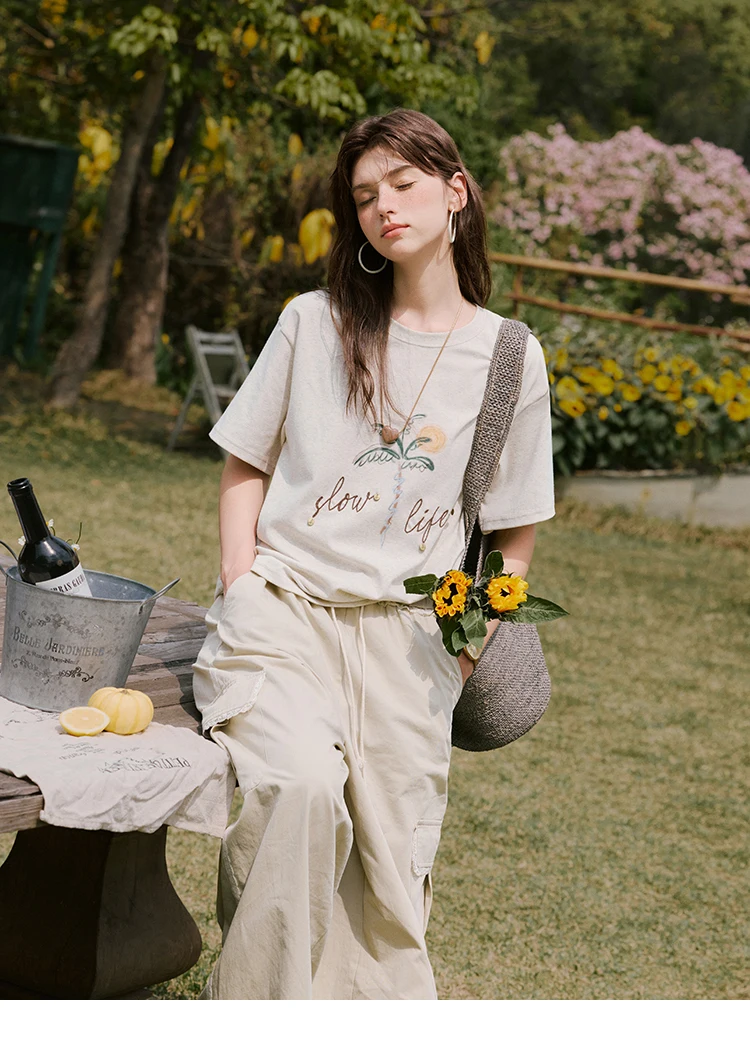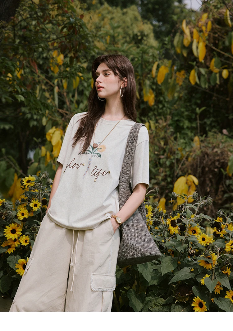 MISHOW Casual Summer Print Shirts Women 2025 Short Sleeve Round Neck Coconut Tree Straight T-shirts Woman Versatile MXE31T0520