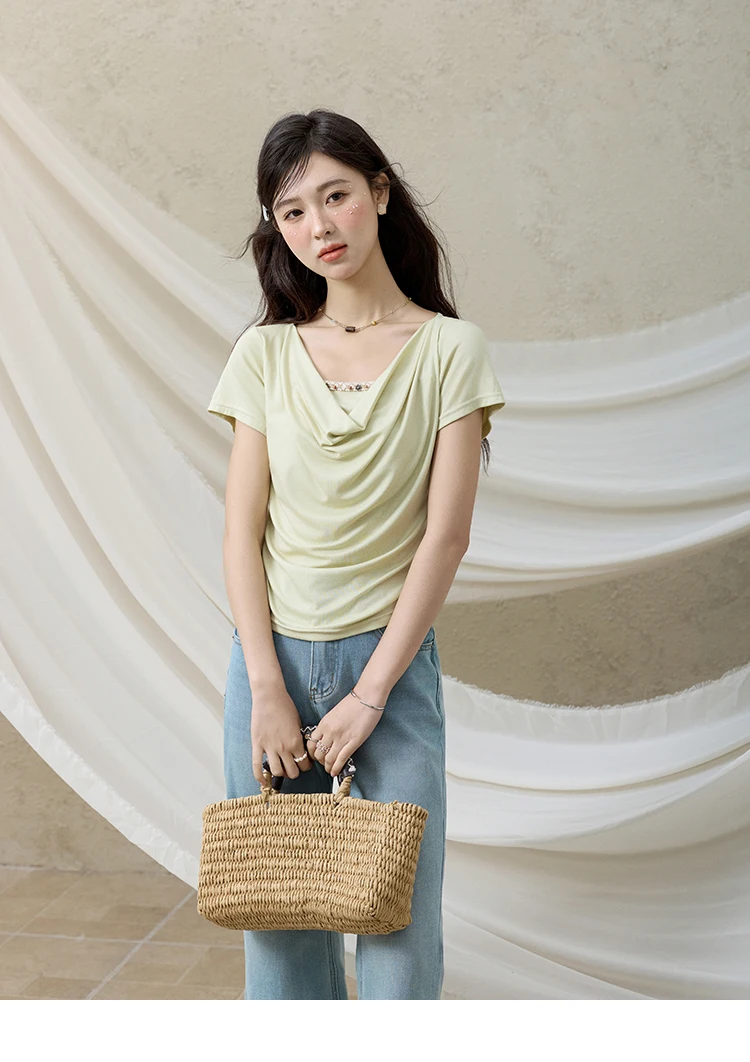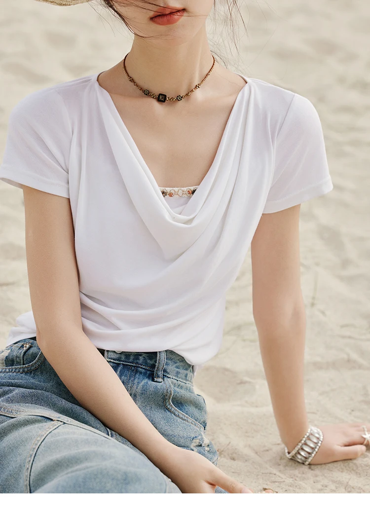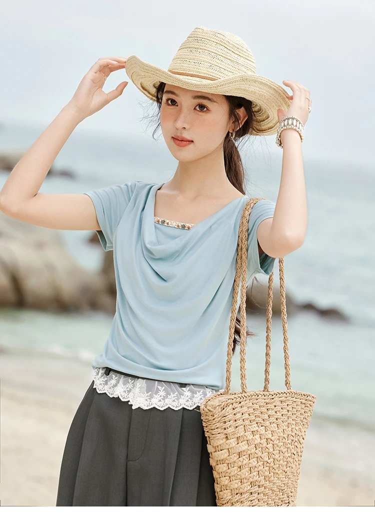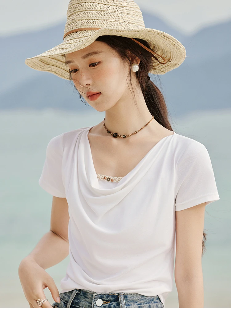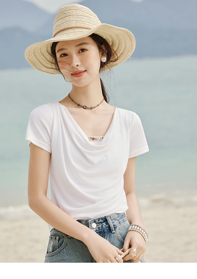 MISHOW Casual Summer Shirts Women 2025 Fashion Short Sleeve Swing Collar Solid T-shirt Female Slim Shell Ribbon Tops MXE33T0524