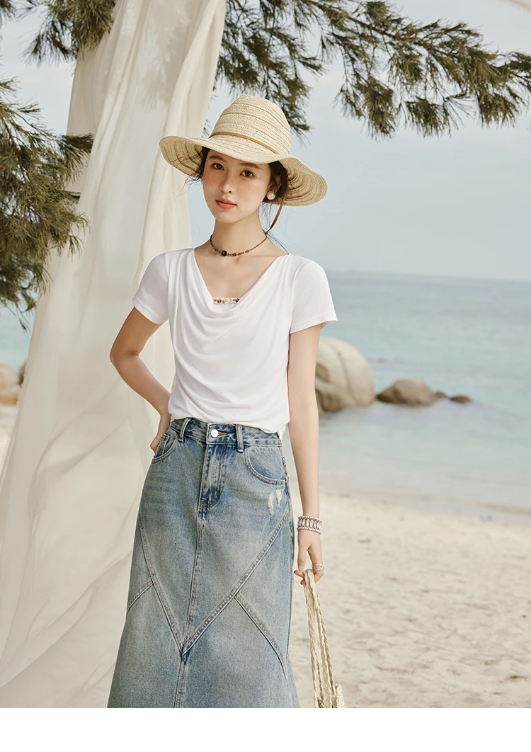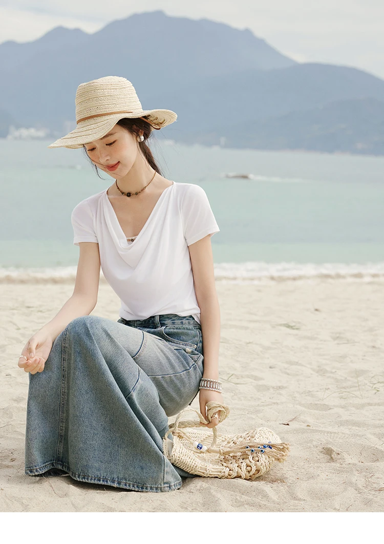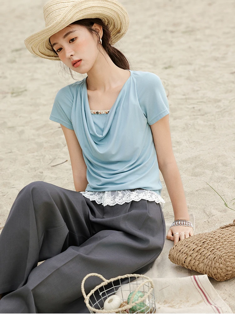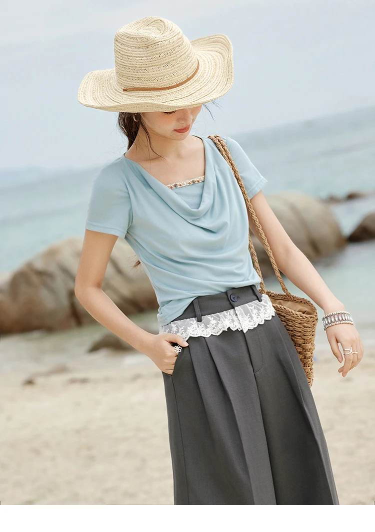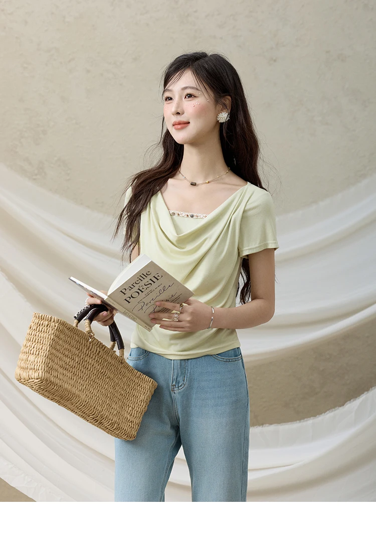 MISHOW Casual Summer Shirts Women 2025 Fashion Short Sleeve Swing Collar Solid T-shirt Female Slim Shell Ribbon Tops MXE33T0524