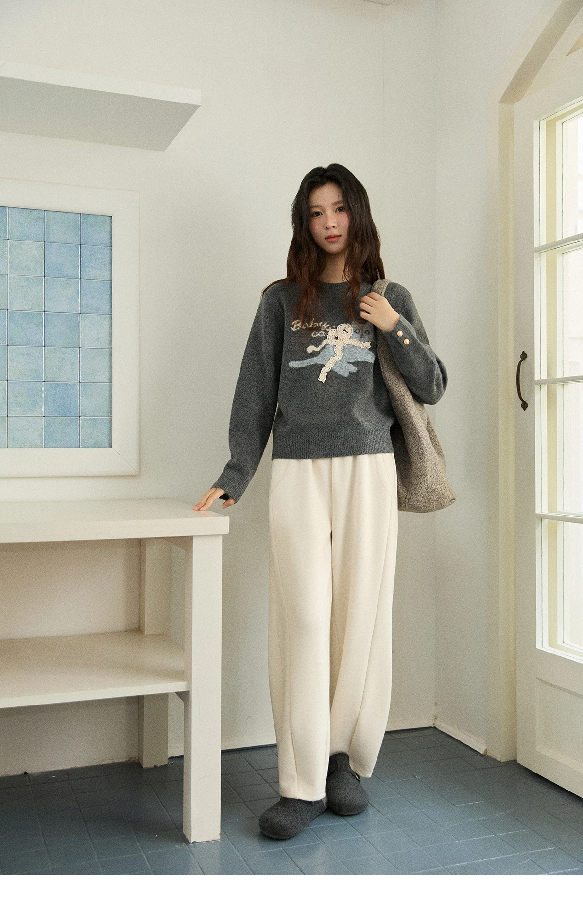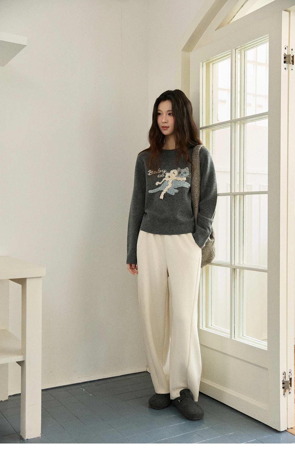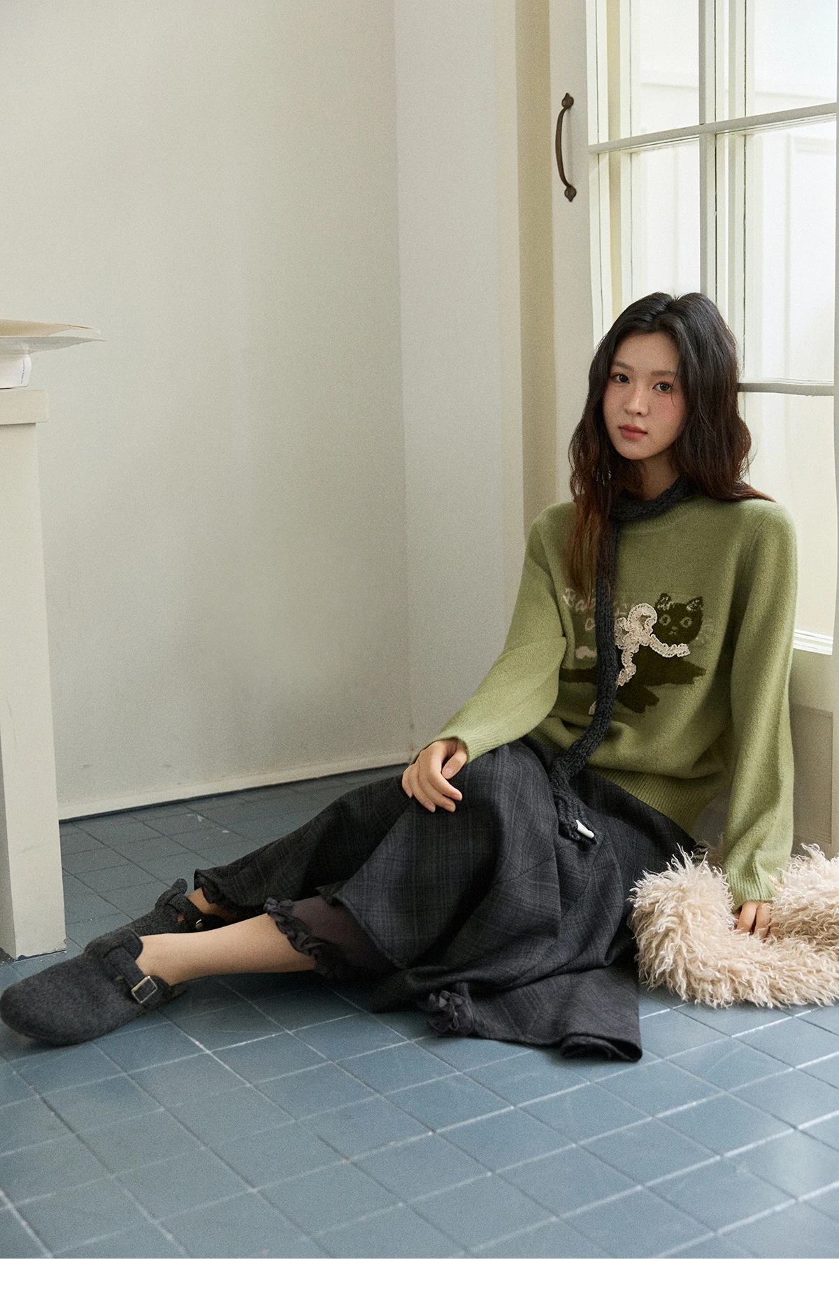 MISHOW Cat Jacquard Pullovers for Woman 2025 Winter Lazy Style Round Neck Three-dimensional Bow Loose Knit Sweater MXE86Z2750