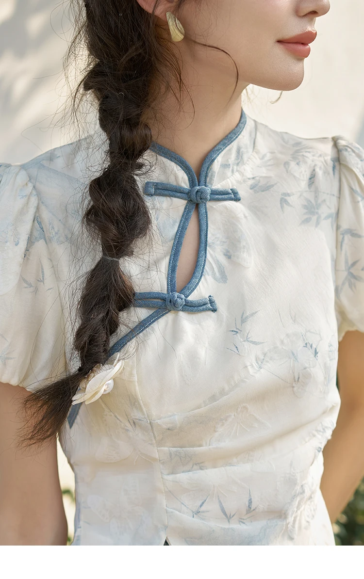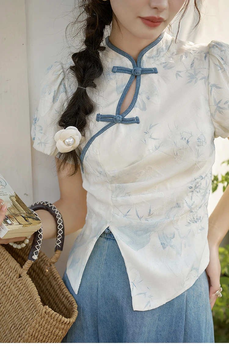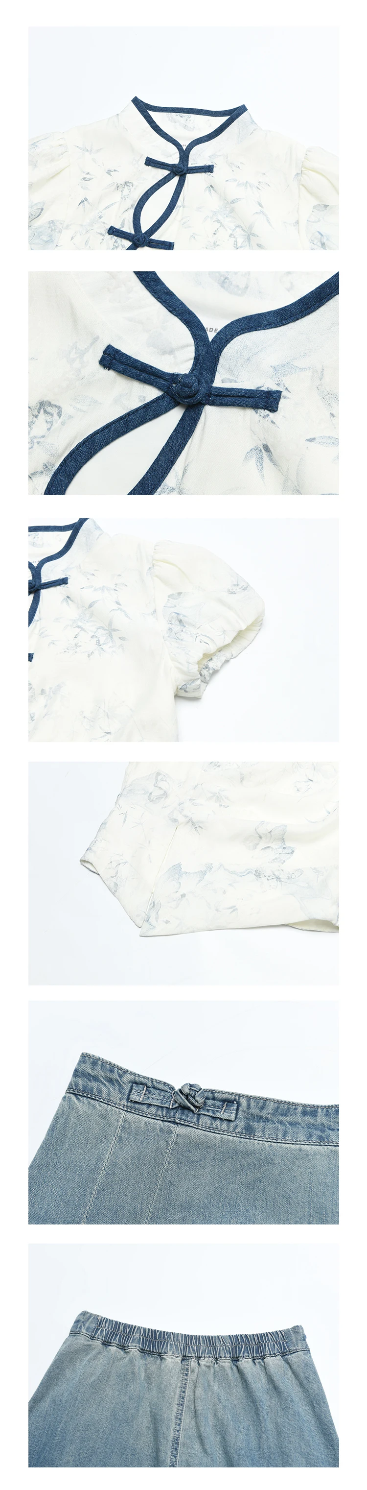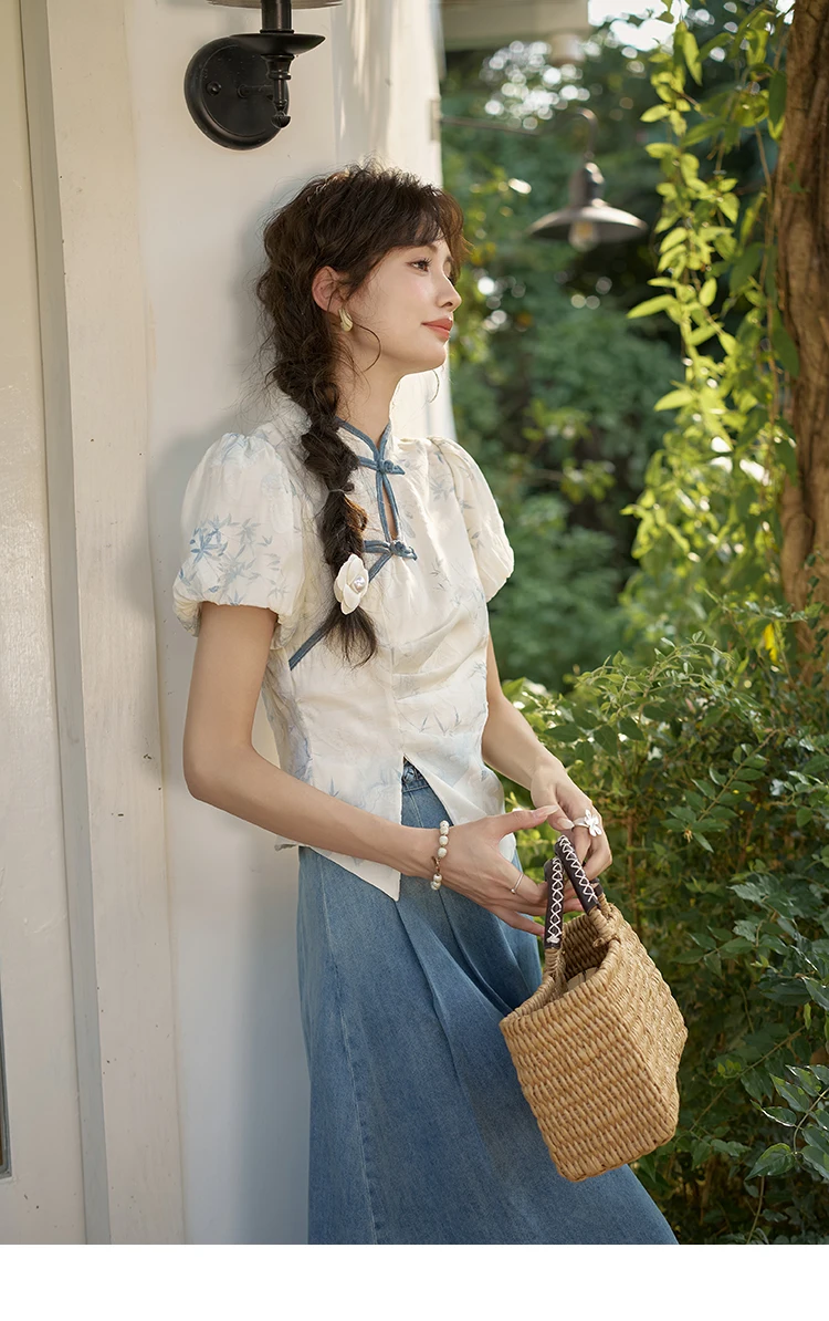 MISHOW Chinese Embroidered T-shirt High Waist Skirt Separately Summer 2024 Short Sleeve Split Hem Tops Denim Skirts MXD28X1604