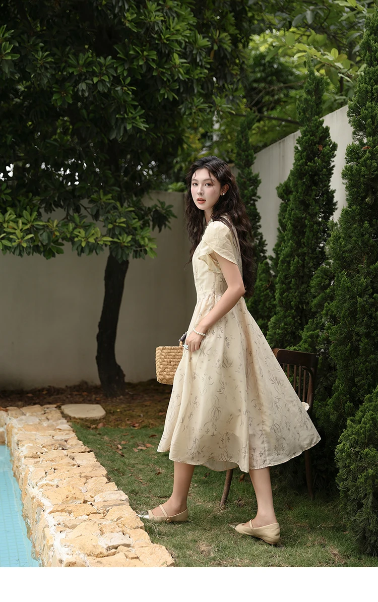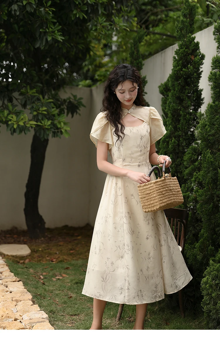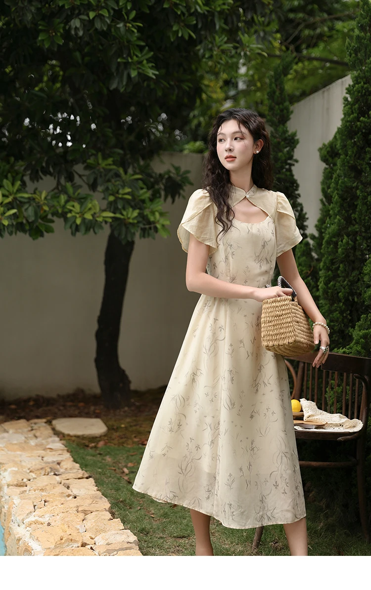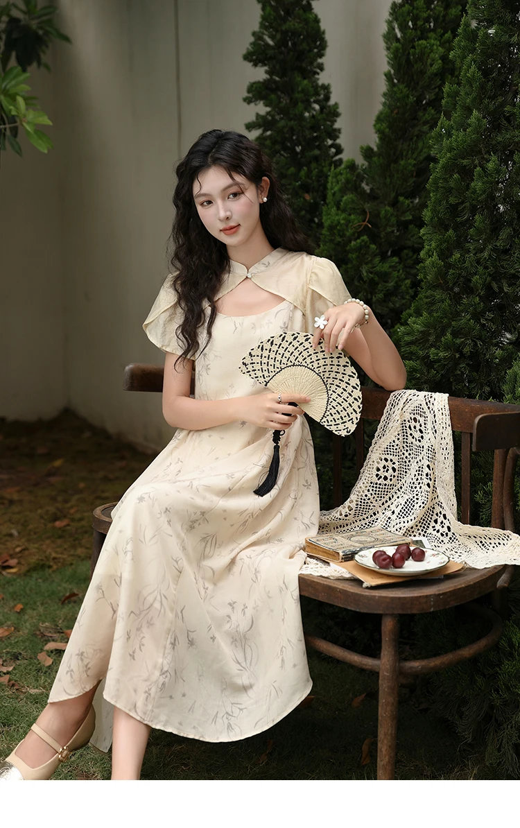MISHOW Chinese Improved Cheongsam Floral Dress for Women 2024 Summer Hollow Out Fake Two-piece Printed Chiffon Dress MXD23L1799