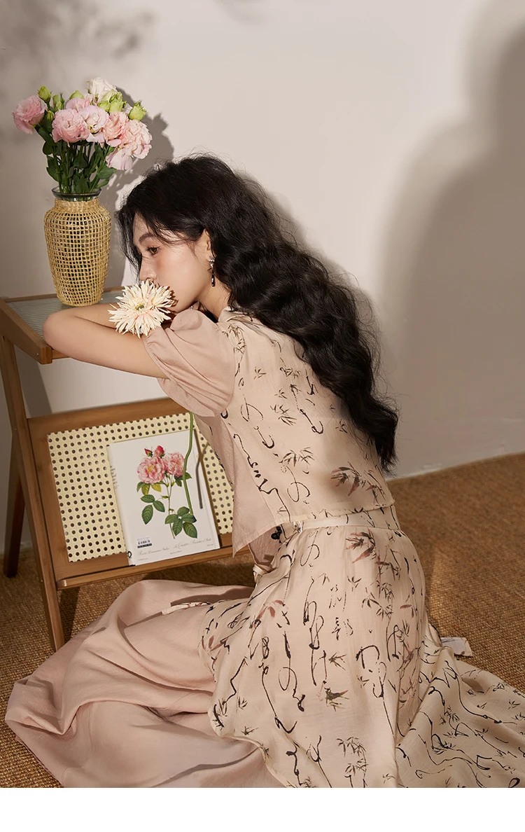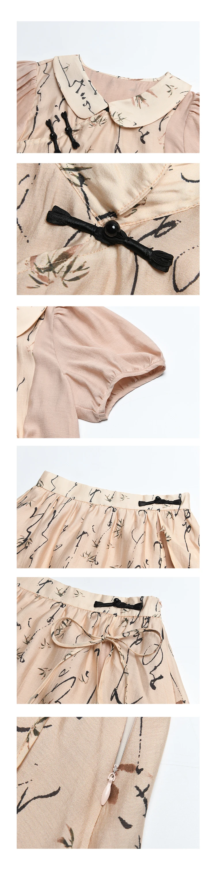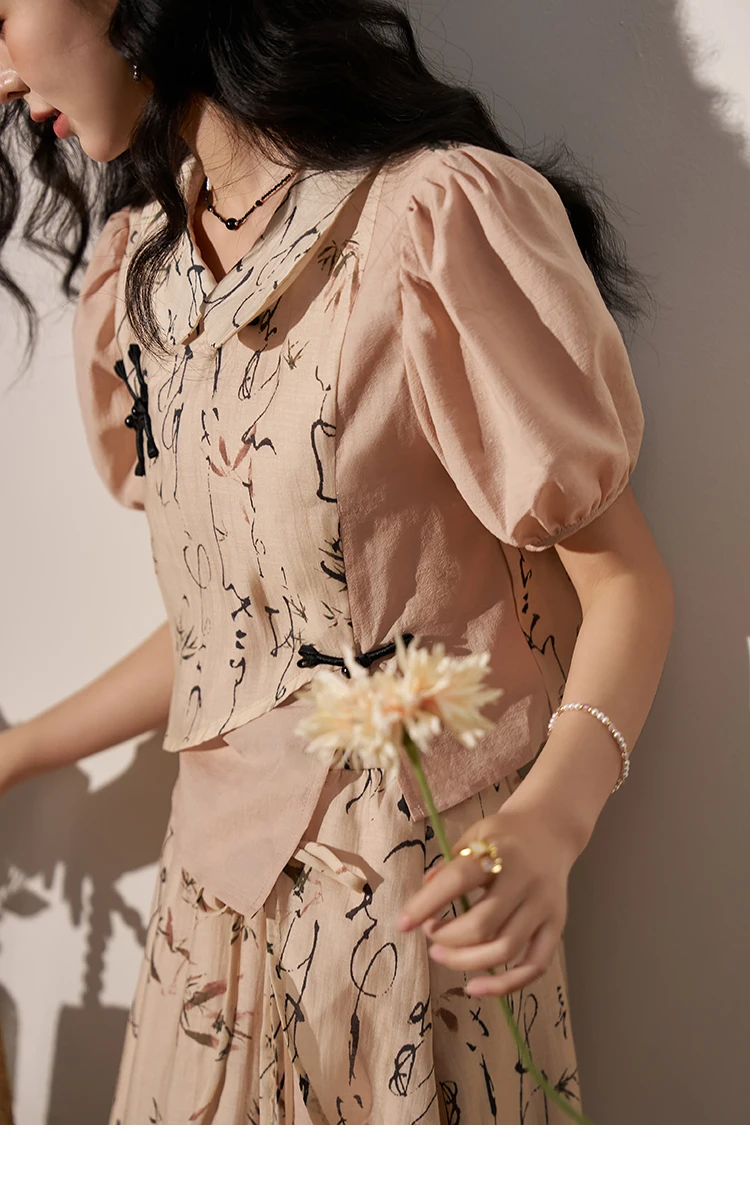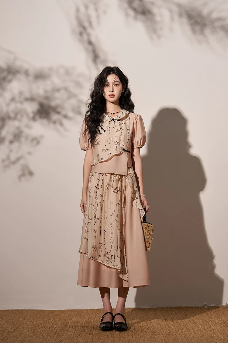 MISHOW Chinese Polo Neck Top Asymmetric Fork Skirt Separately Summer Floral Puff Sleeve Shirt High Waist A-line Skirt MXD22X1396
