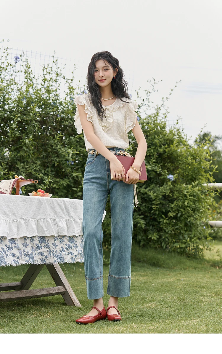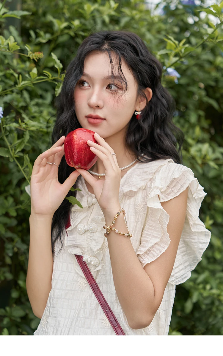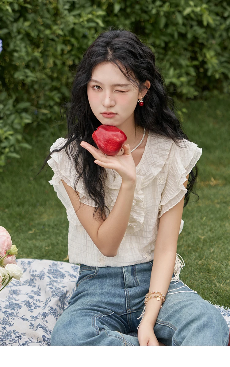 MISHOW Chinese Retro Button Up Blouse for Women 2024 Summer Flying Sleeve Chiffon Embroidery V-Neck Top with Camisole MXD21X1374