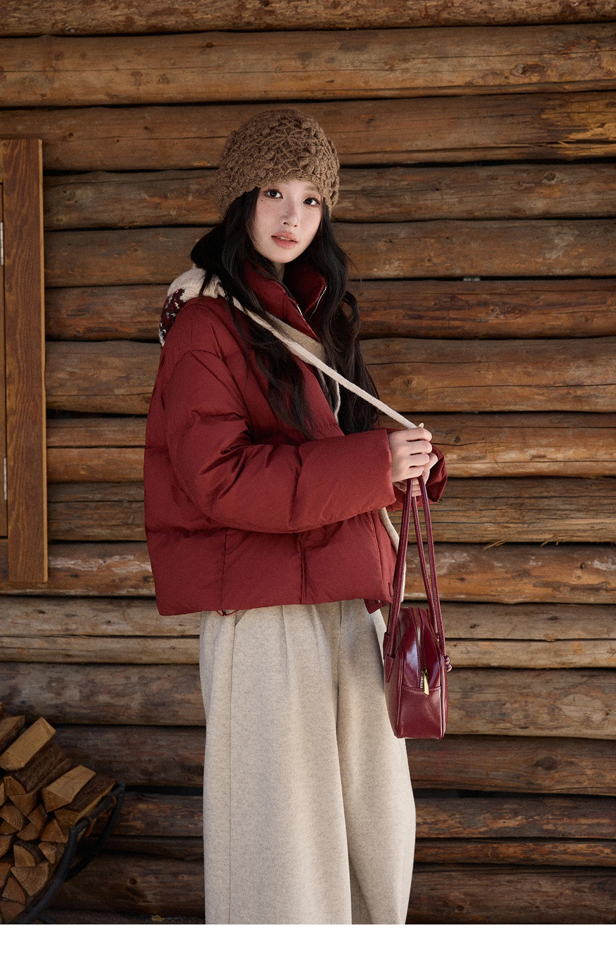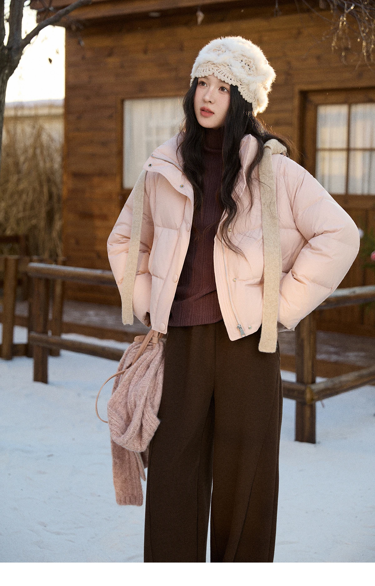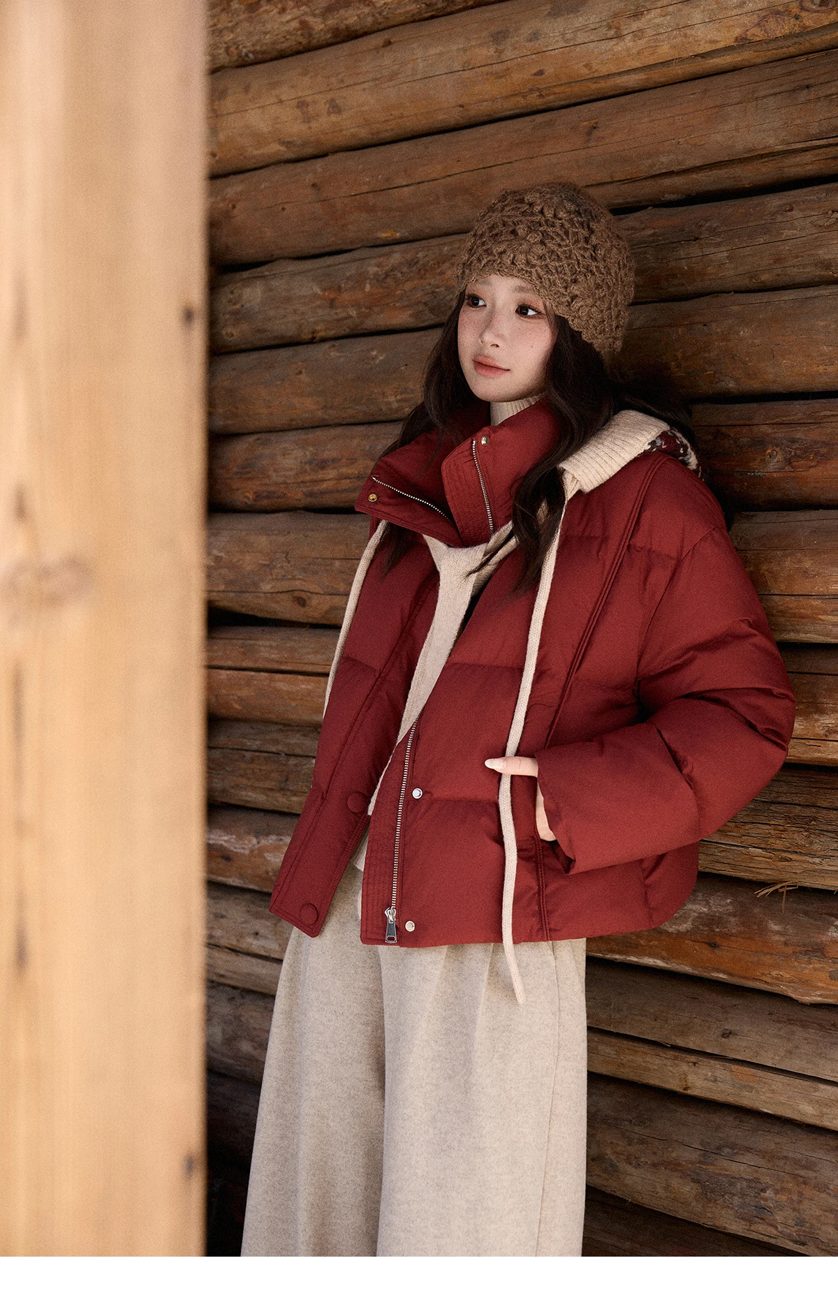 MISHOW Christmas Down Jacket with Jacquard Hat Winter 2025 90% White Duck Down Warm Coats Stand Neck Solid Down Coat MXE90Y0086