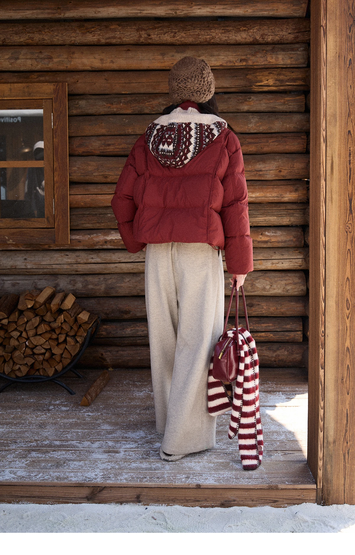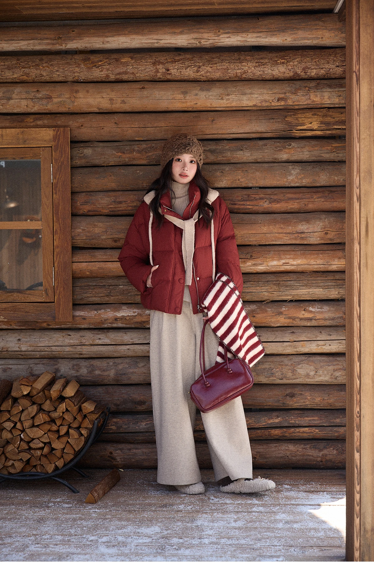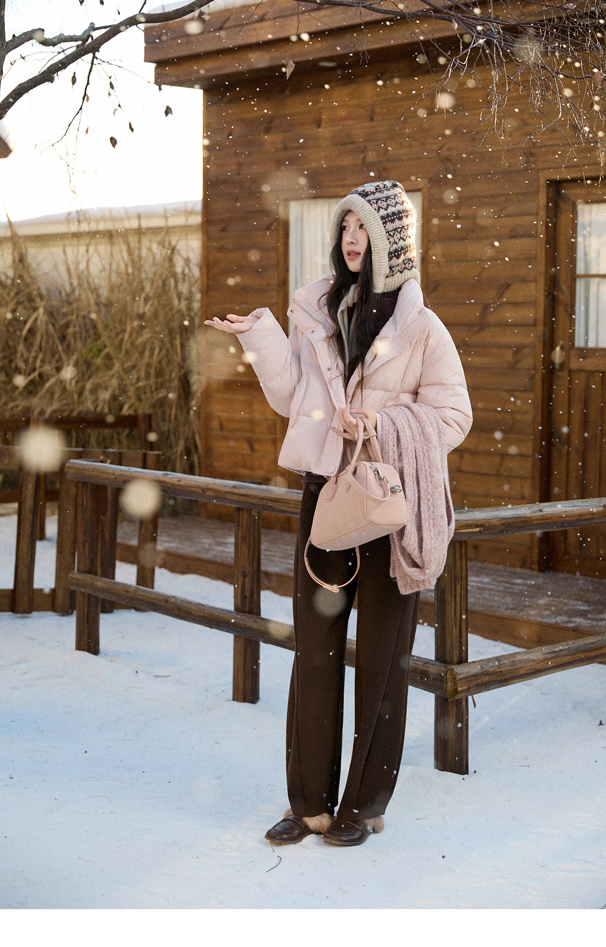 MISHOW Christmas Down Jacket with Jacquard Hat Winter 2025 90% White Duck Down Warm Coats Stand Neck Solid Down Coat MXE90Y0086