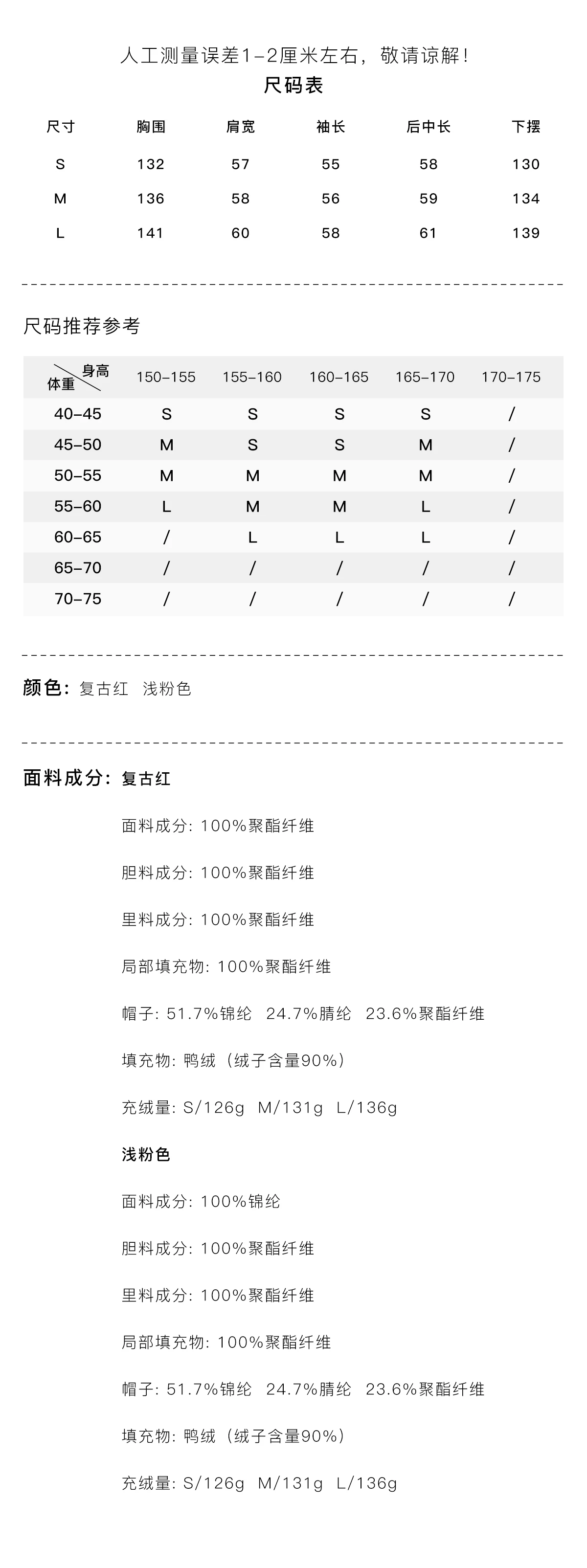 Down Weight: 100g-150g