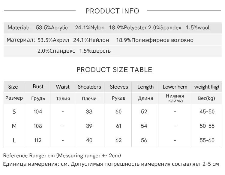Material Composition: 53.5% Acrylic, 24.1% Nylon, 18.9% Polyester, 2% Spandex, 1.5% Spandex