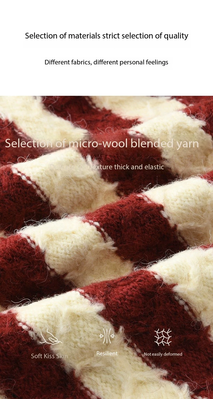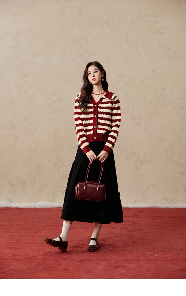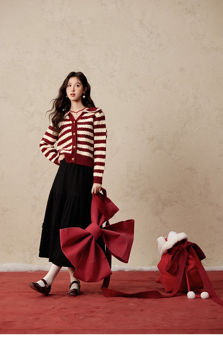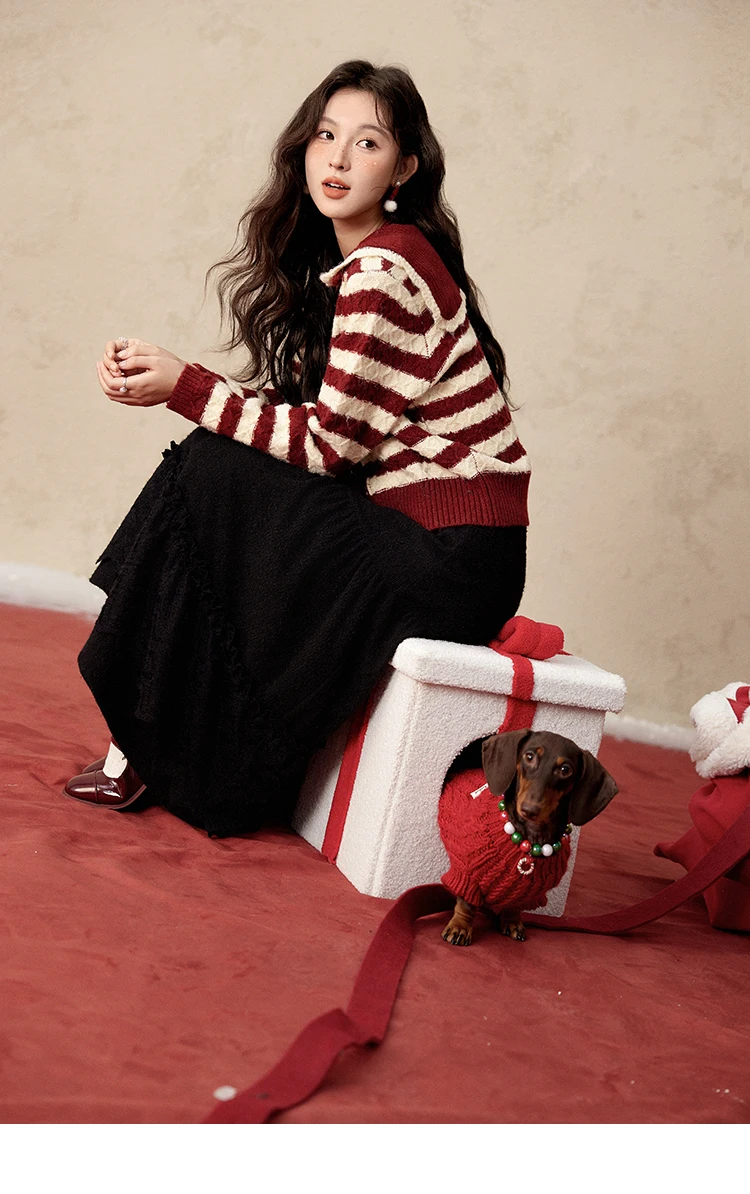 MISHOW Christmas Red Striped Turn Down Collar Cropped Cardigan Thickened Warm Wool Blend Sweater Soft Knitted Tops MXD58Z1038