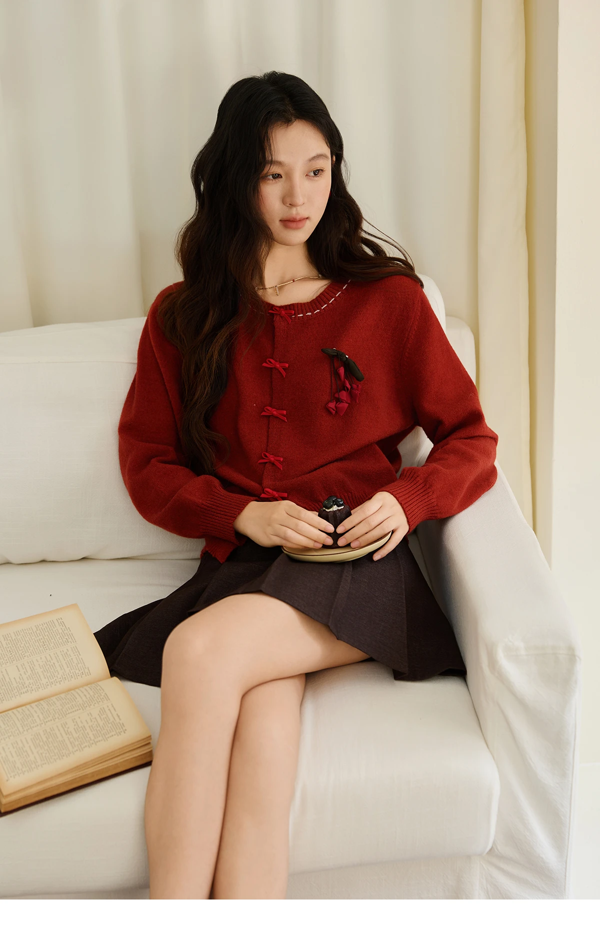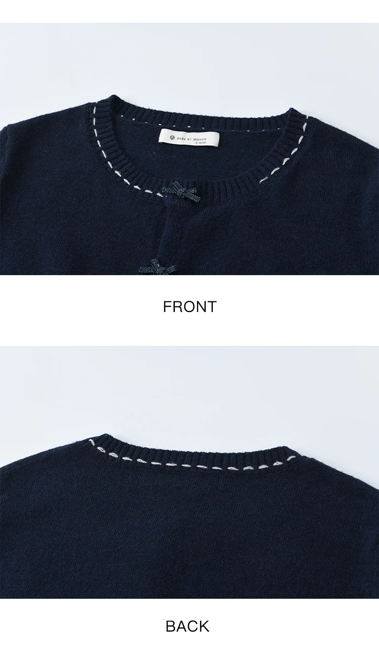 MISHOW Christmas Soft Knitted Cardigan Autumn Bow Placket Retro with Brooch Lantern Sleeve Sweaters O Neck Solid Top MXE45Z1377