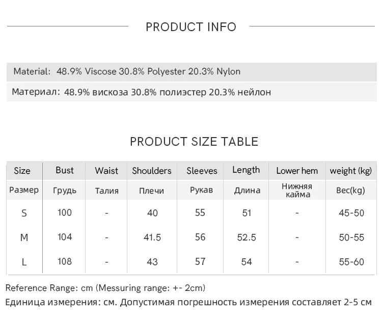Material Composition: 48.9% Viscose 30.8% Polyester 20.3% Nylon