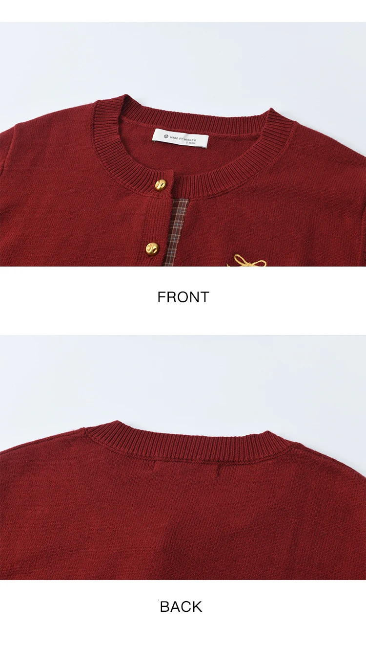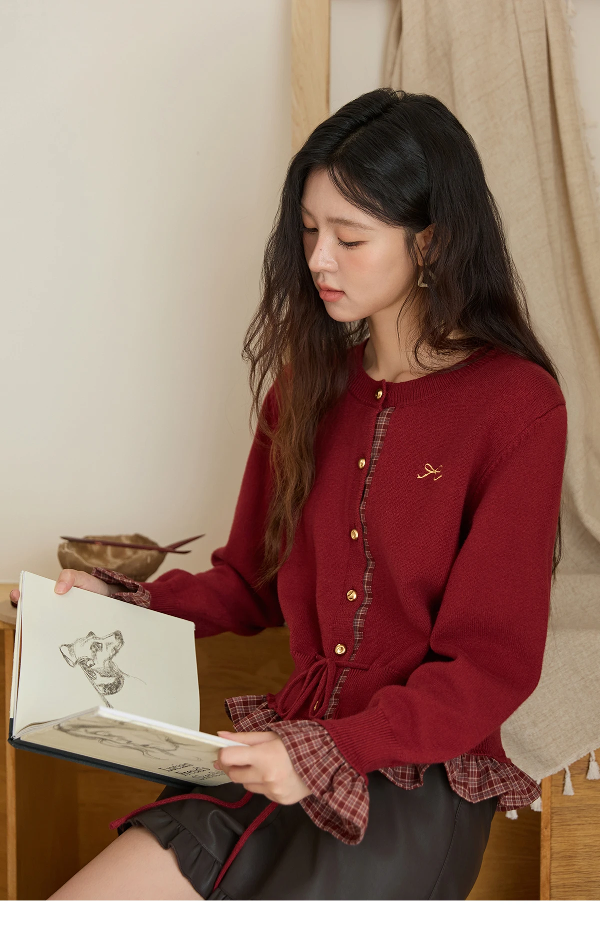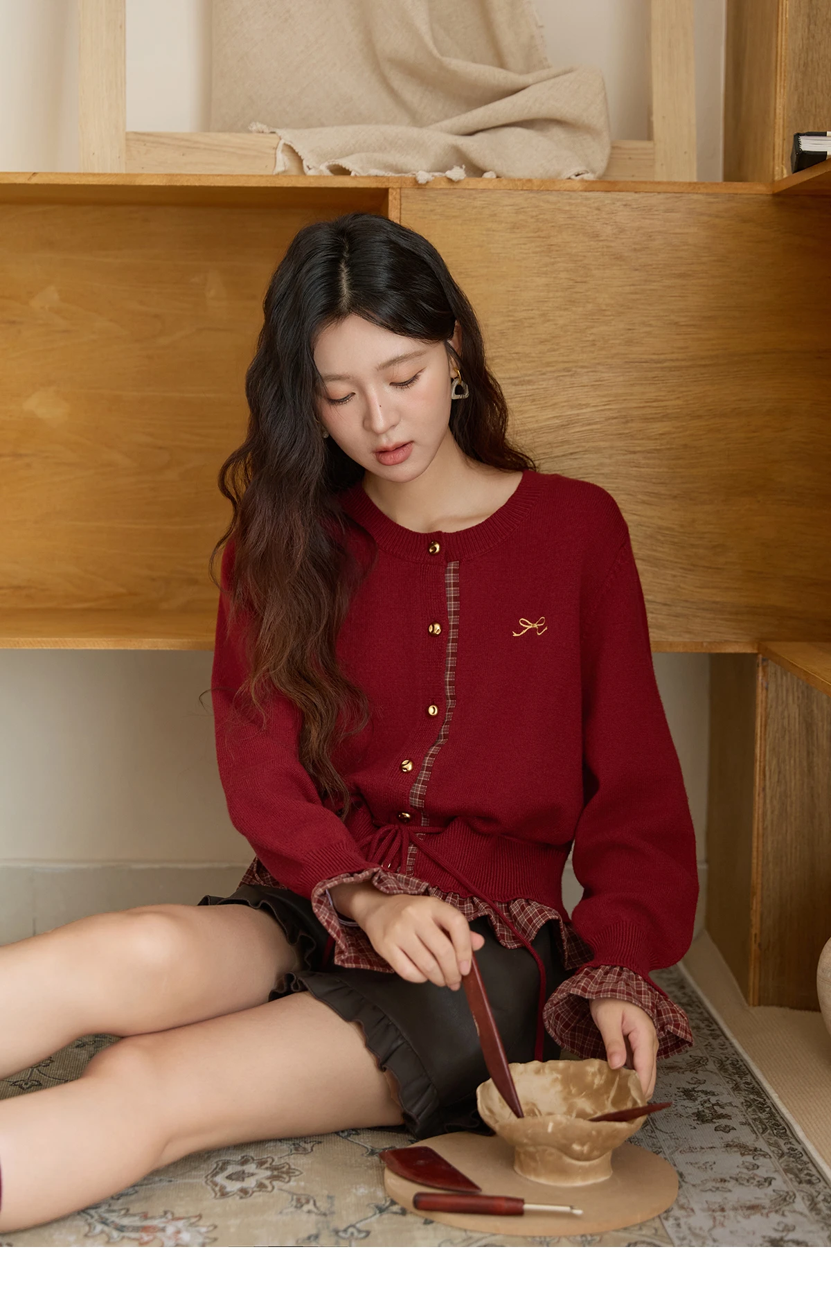 MISHOW Christmas Women's Cardigan 2025 Red Fake Two-Piece Plaid Patchwork Knit Top O-Neck Single-Breasted Outerwear MXE45Z2483
