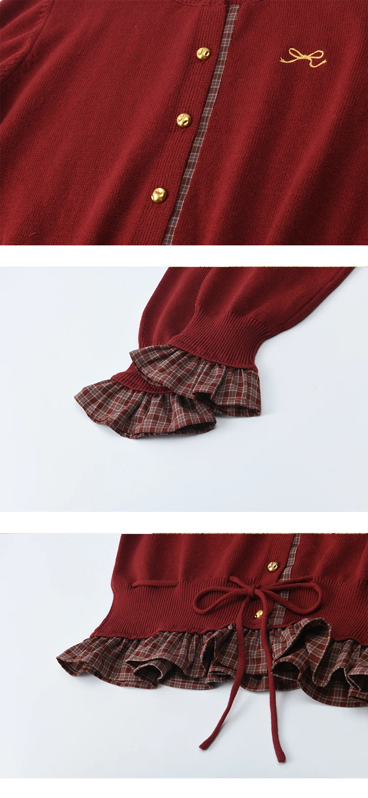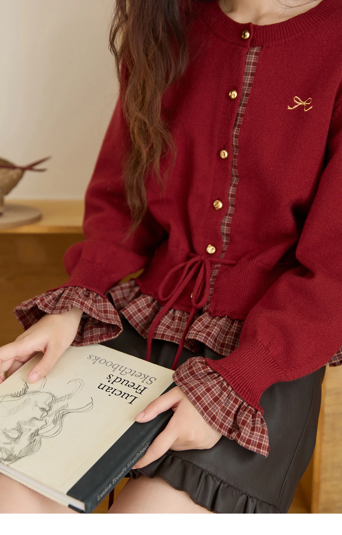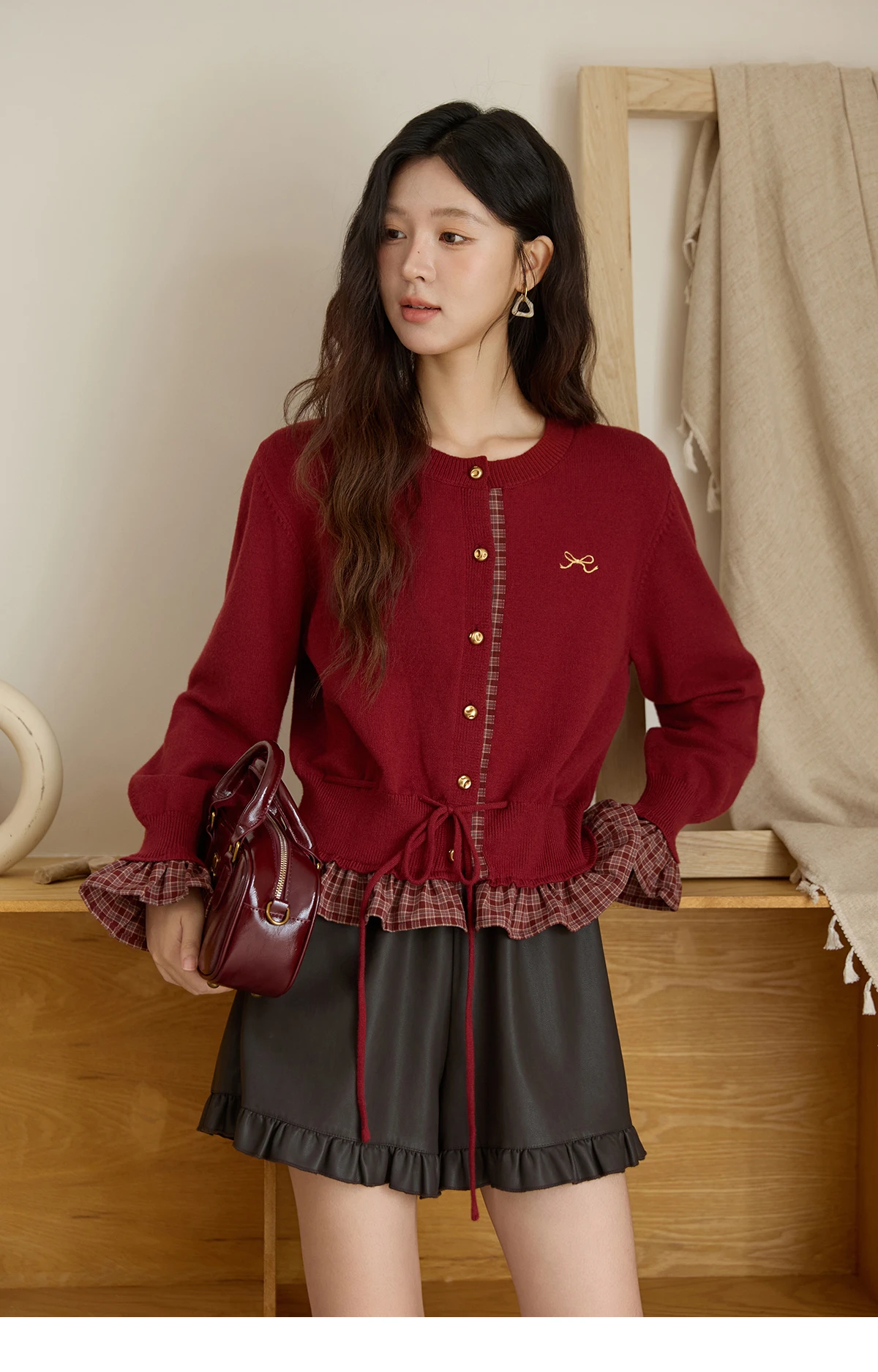 MISHOW Christmas Women's Cardigan 2025 Red Fake Two-Piece Plaid Patchwork Knit Top O-Neck Single-Breasted Outerwear MXE45Z2483